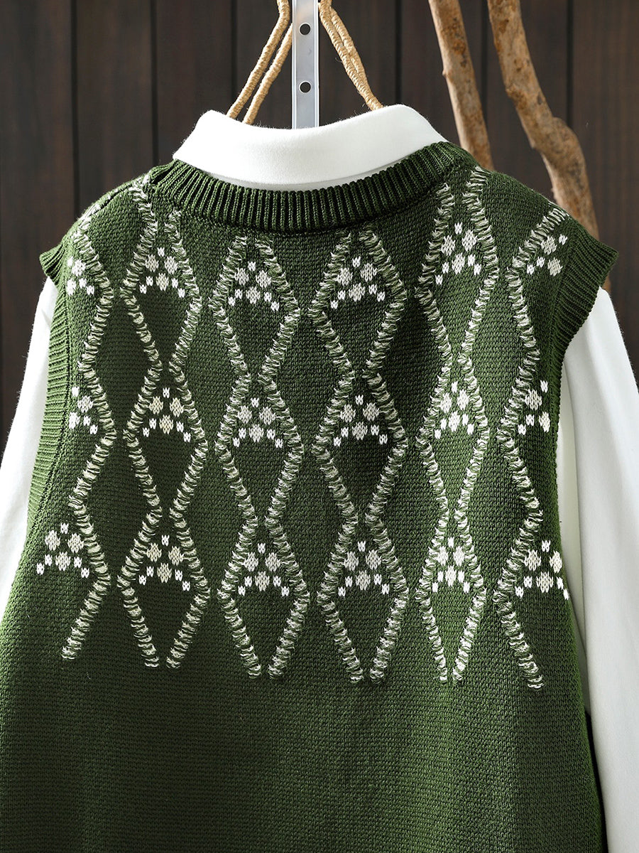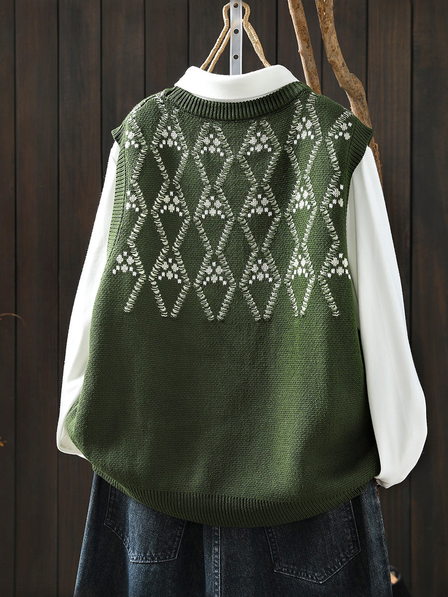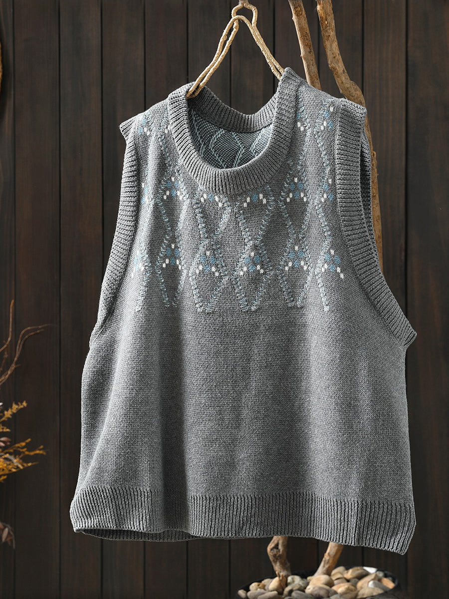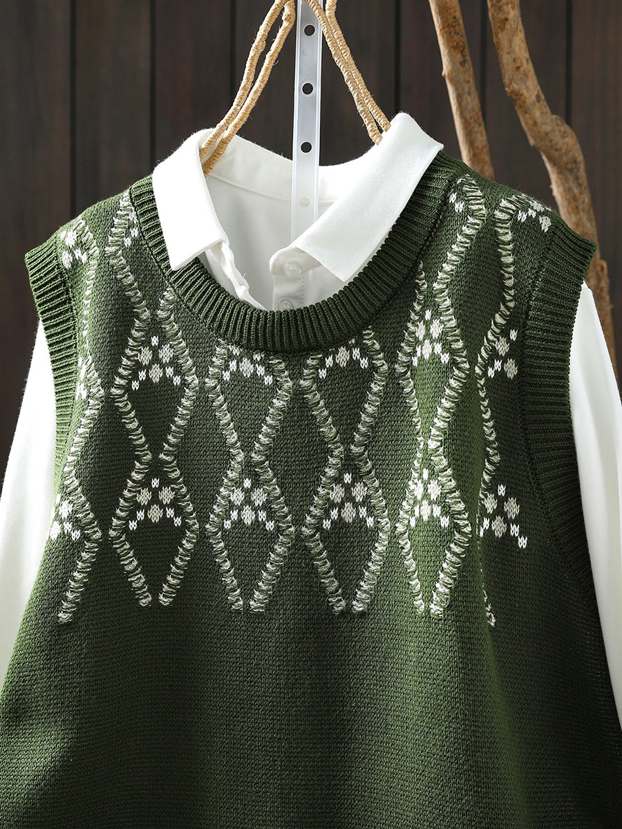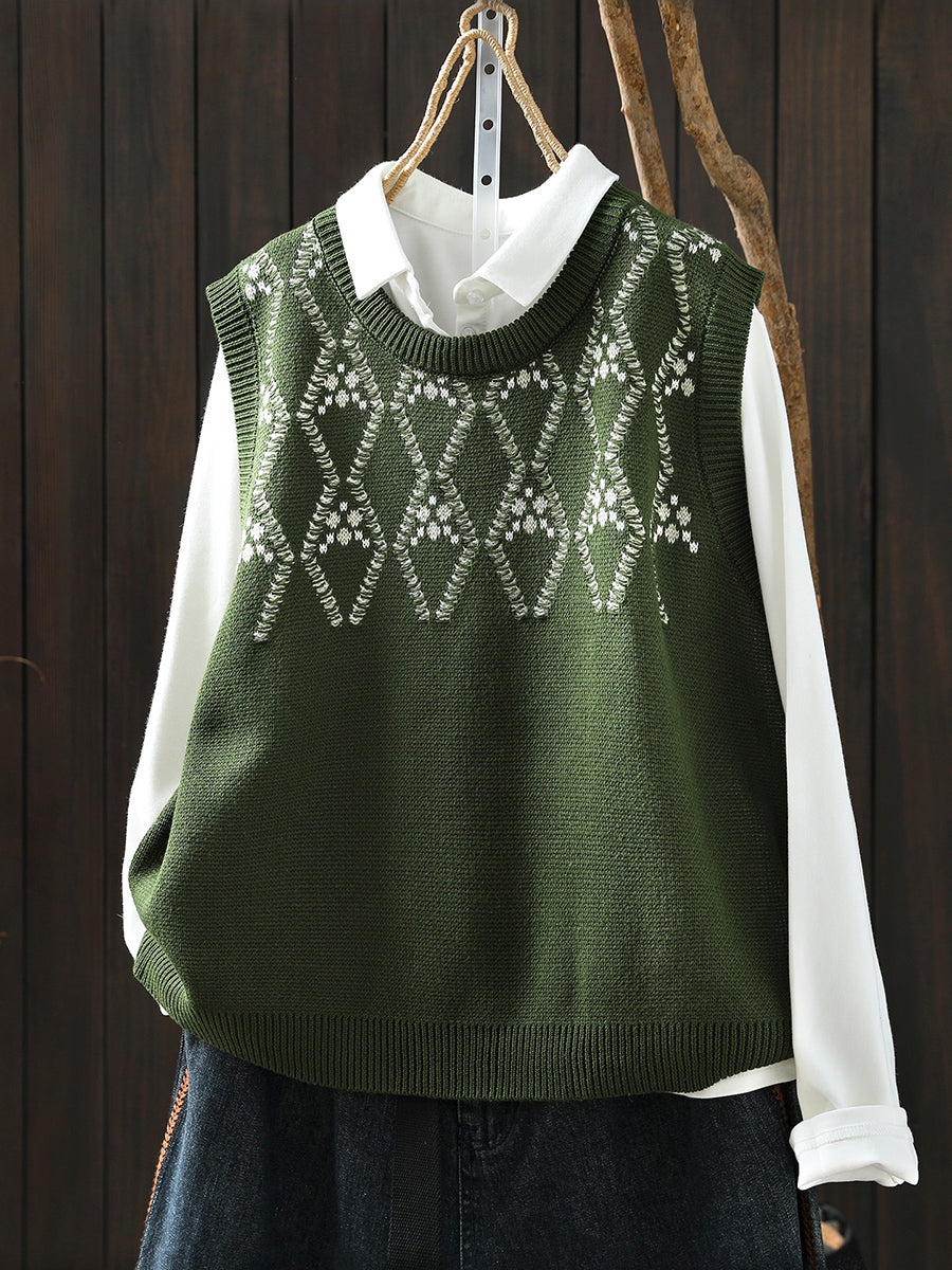 Women Autumn Artsy Rhomboids O-Neck Knitted Vest