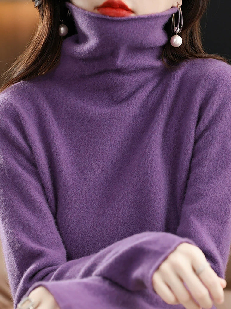 Women Autumn Casual Knitted Wool Turtleneck Sweater