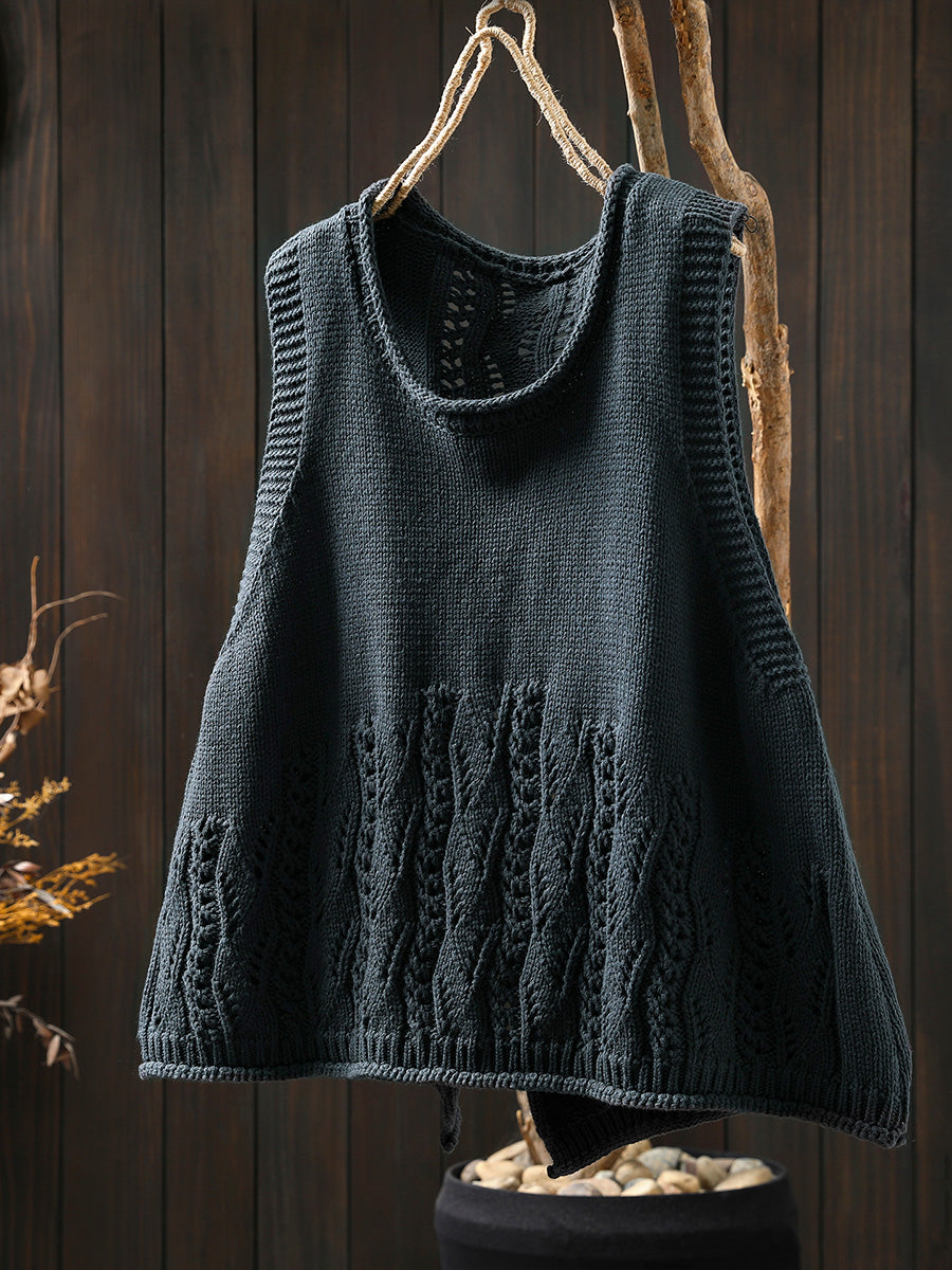 Crafted from a blend of 45% cotton and 55% acrylic, this sleeveless vest features a solid color design and an O-neck collar. Its artistic style makes it an ideal choice for casual summer wear.