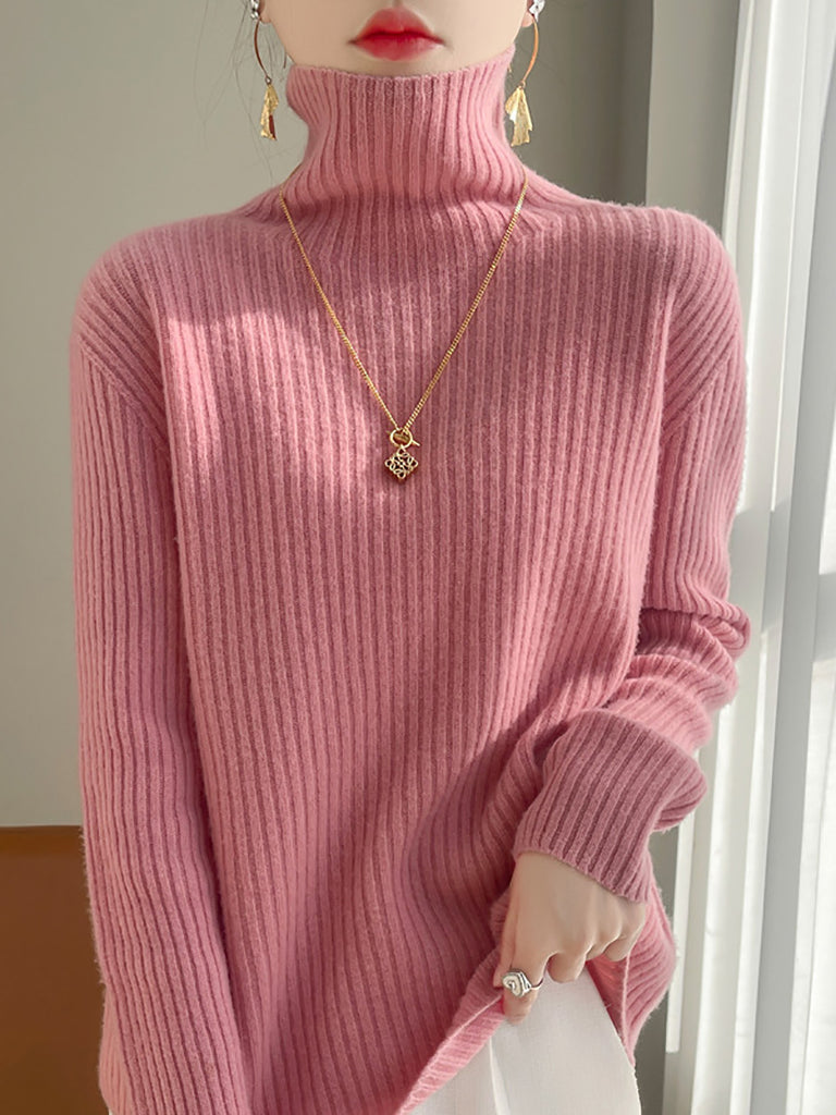 Women Autumn Casual Solid Turtleneck Wool Knit Sweater