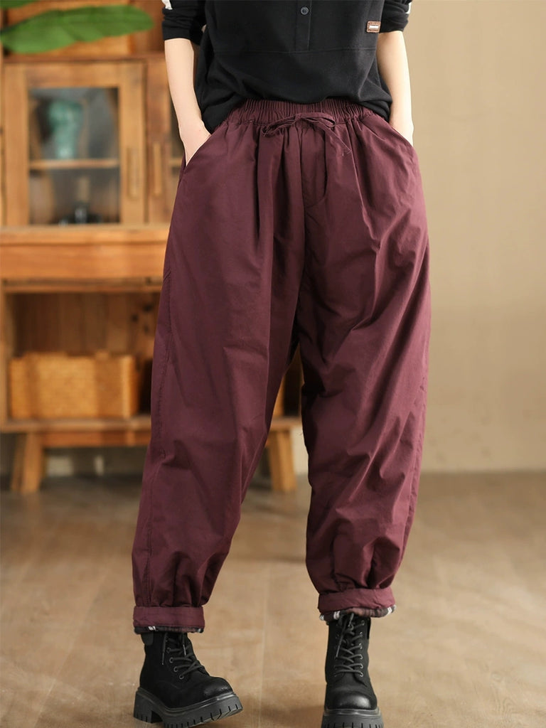 Women Autumn Pure Color Cotton Padded Harem Pants