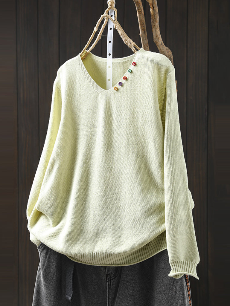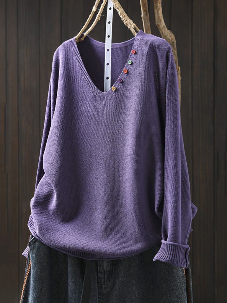 This V-Neck Knit Sweater for Women features a solid pattern, full-length sleeves, and a casual yet stylish design, making it perfect for the autumn and winter seasons.
