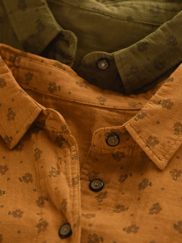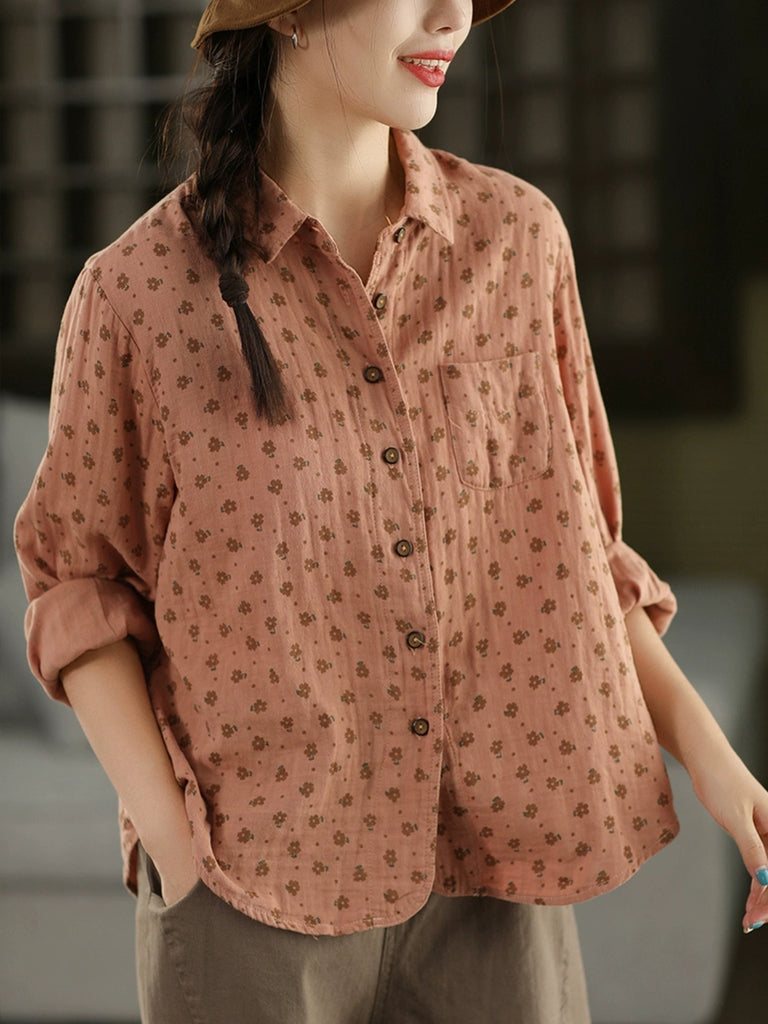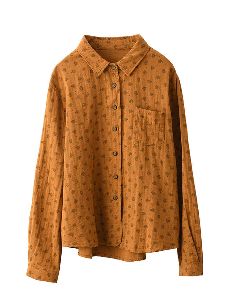 Women Autumn Vintage Floral 100%Cotton Turn-down Collar Shirt