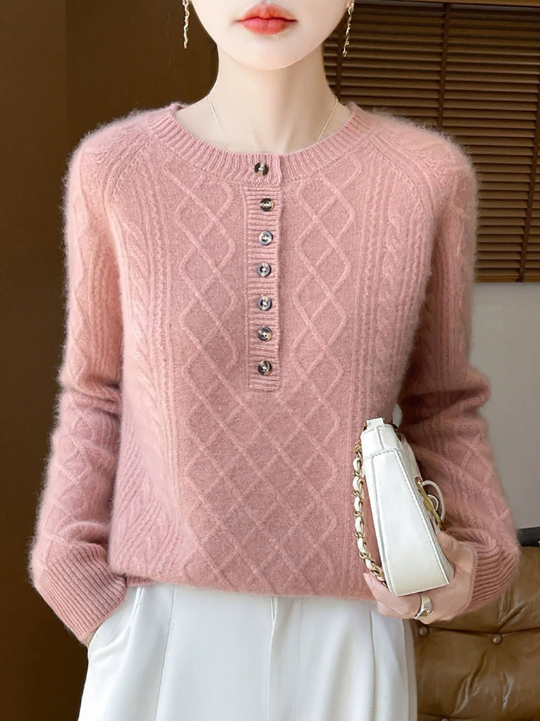 Women Autumn Vintage Rhomboids Wool O-Neck Sweater