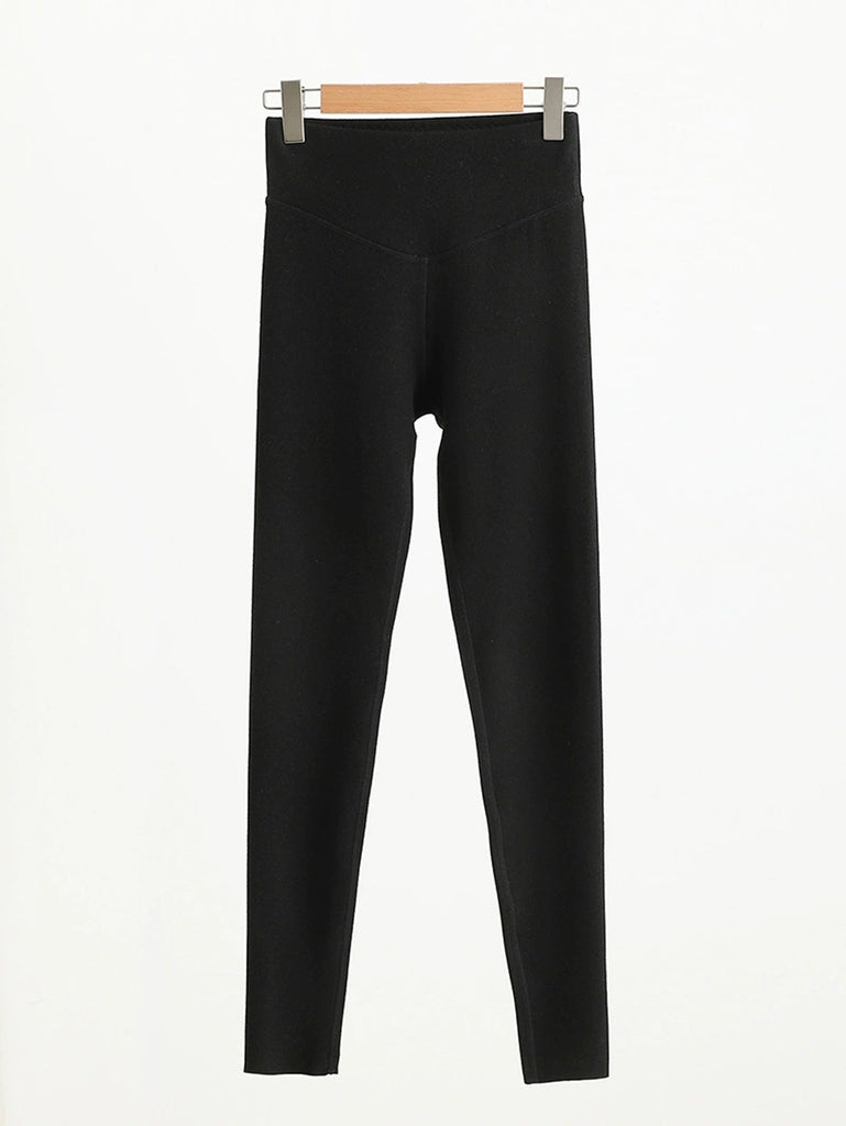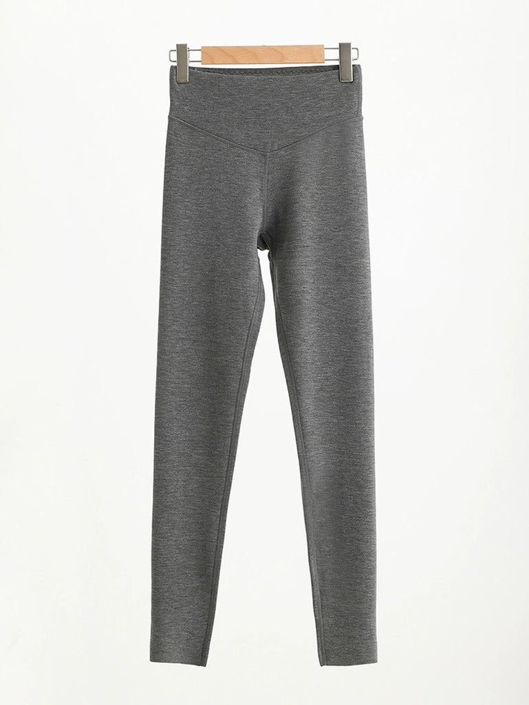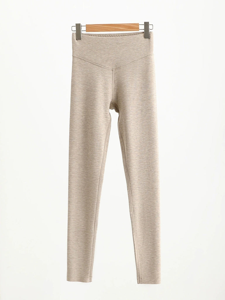 Women Autumn Warm Pure Color High Waist Leggings