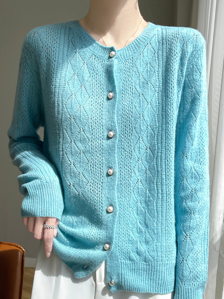 Women Autumn Wool O-Neck Cardigan Knit Sweater
