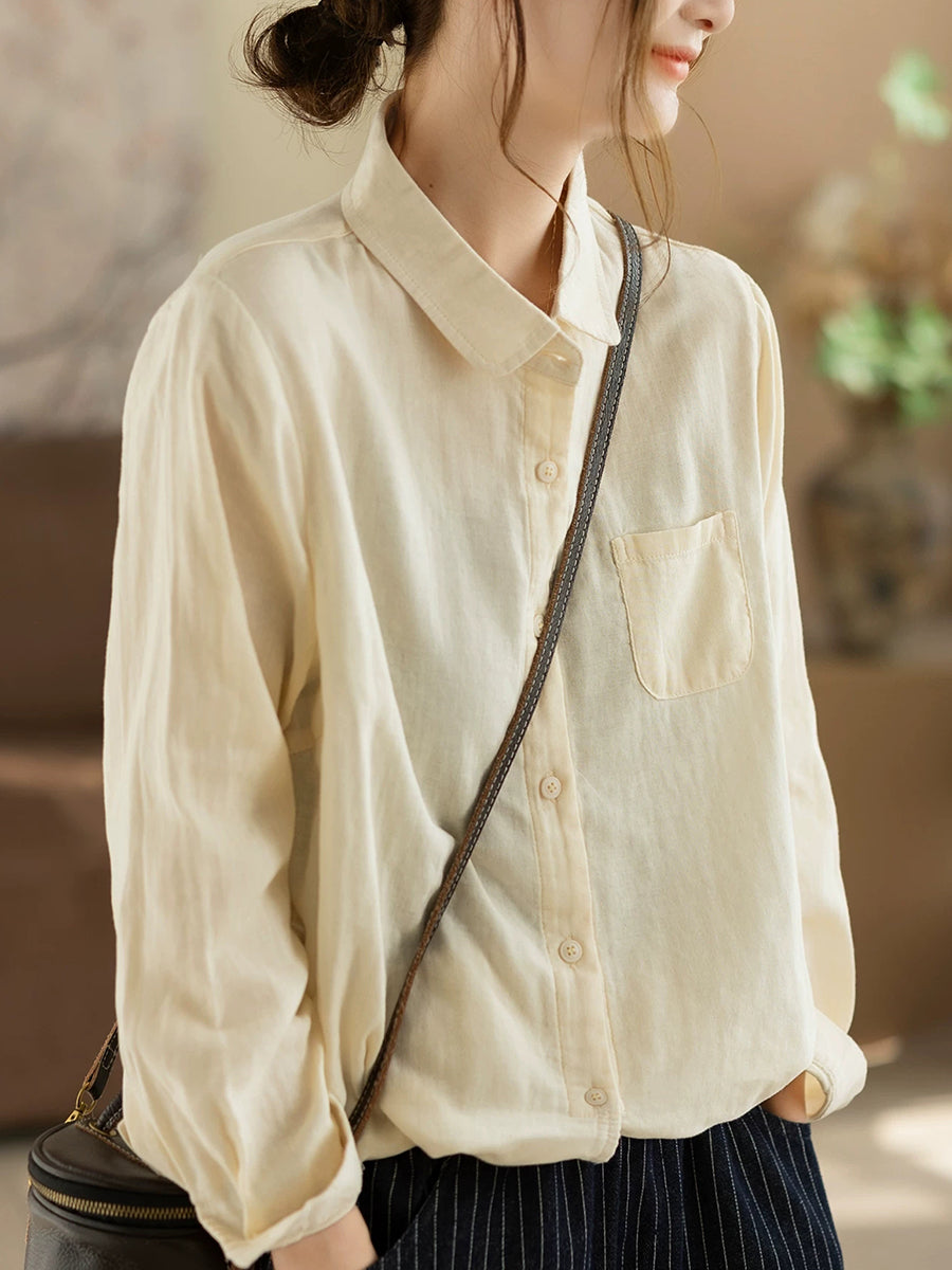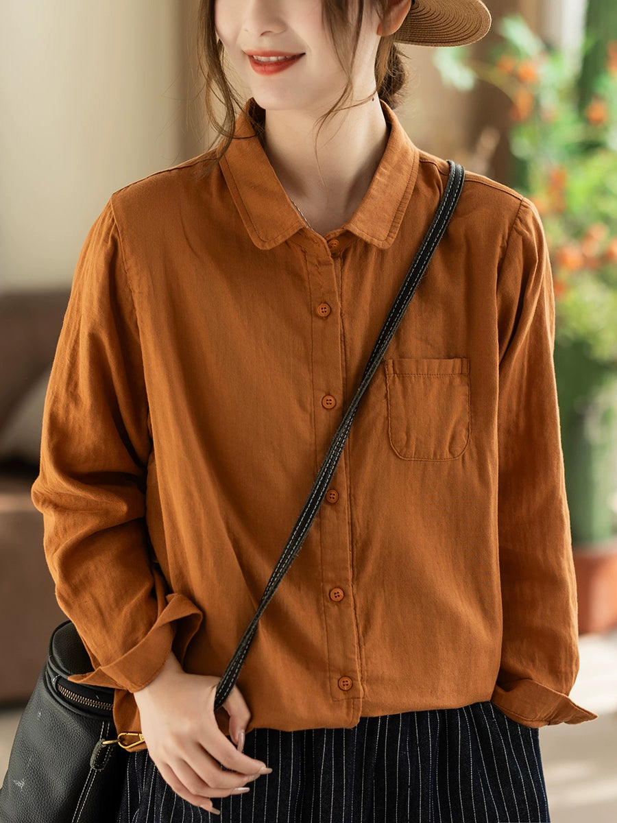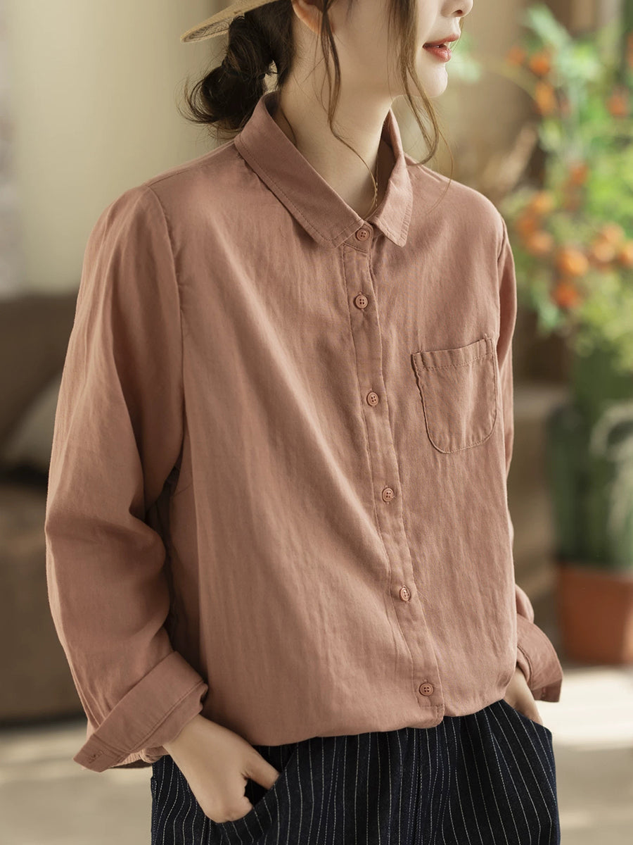 Women Casual Spring Pure Color 100%Cotton Shirt