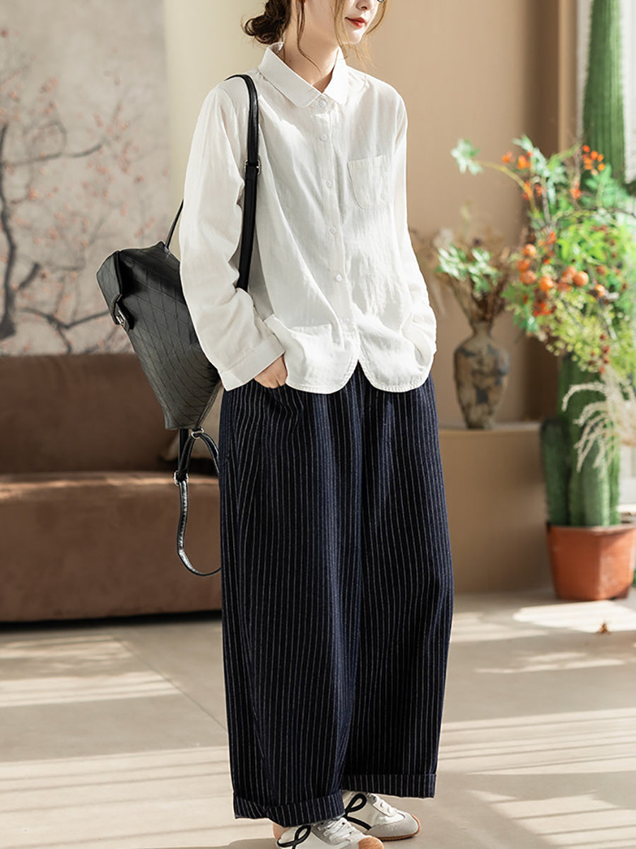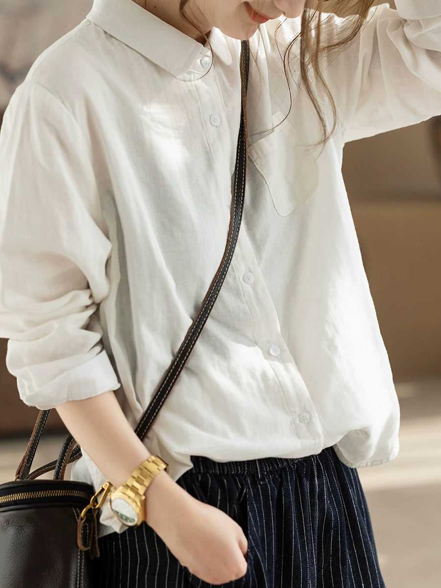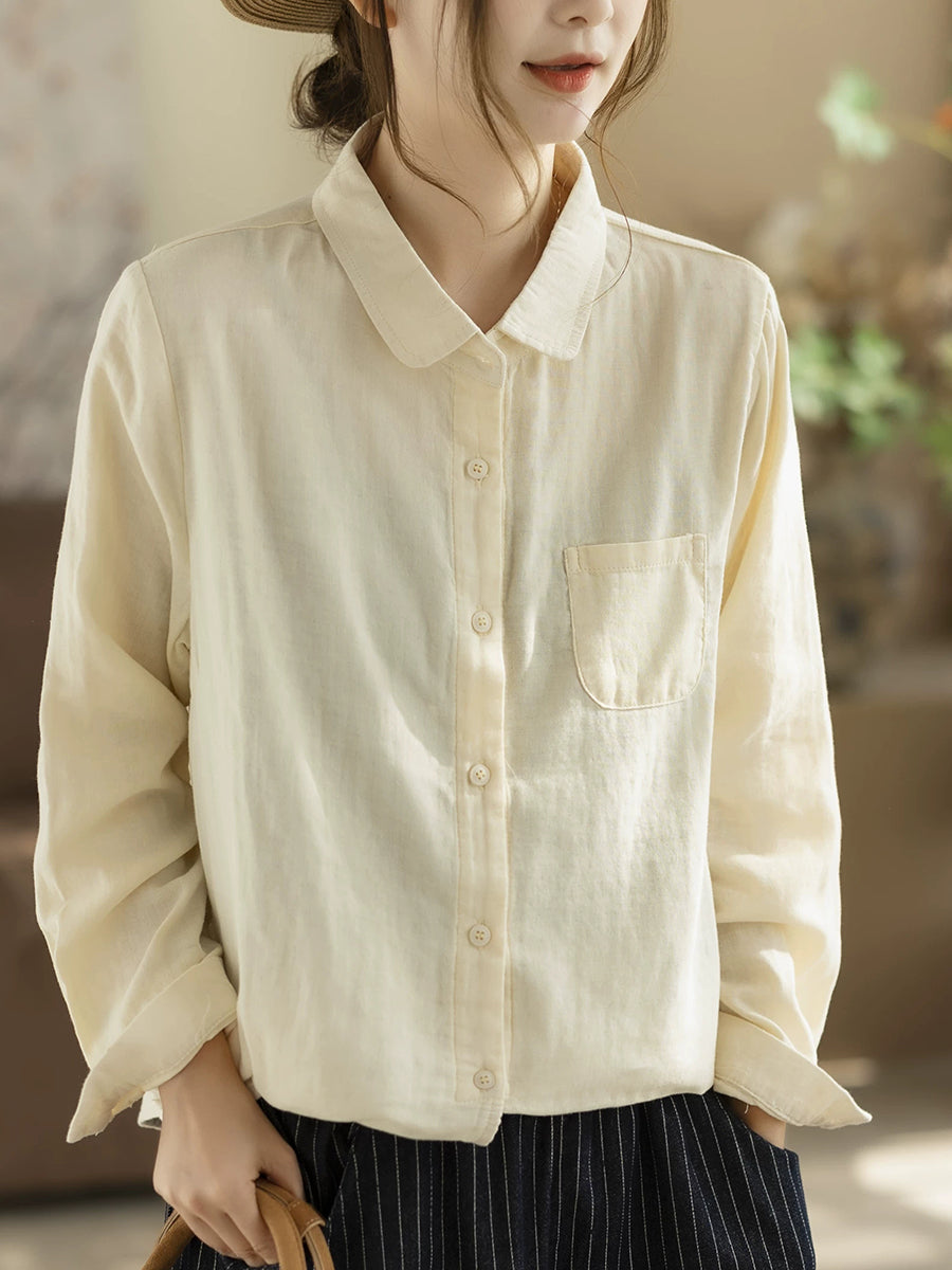 Women Casual Spring Pure Color 100%Cotton Shirt