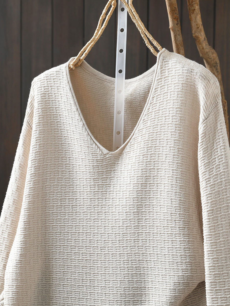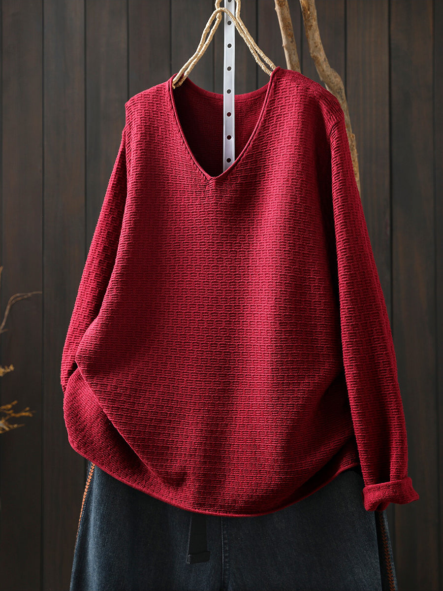 Women Casual Spring Pure Color V-Neck Sweater