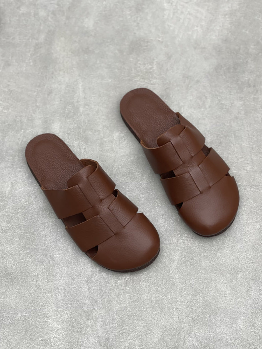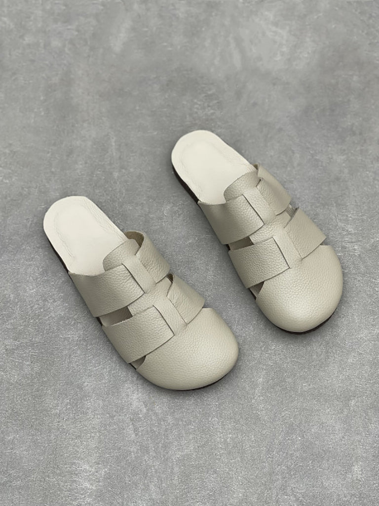 Women Casual Summer Soft Leather Flar Slippers