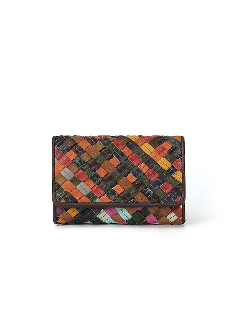 Women Colorful Leather Weave Multifunction Wallet