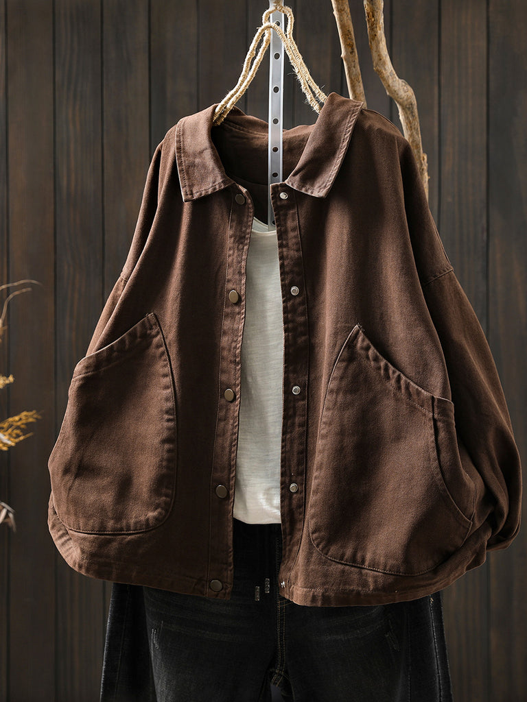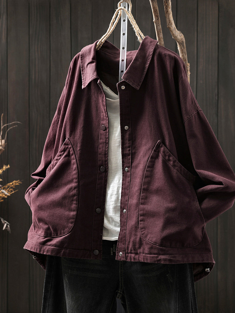 Women Pure Color Turn-down Collar 100%Cotton Shirt Coat
