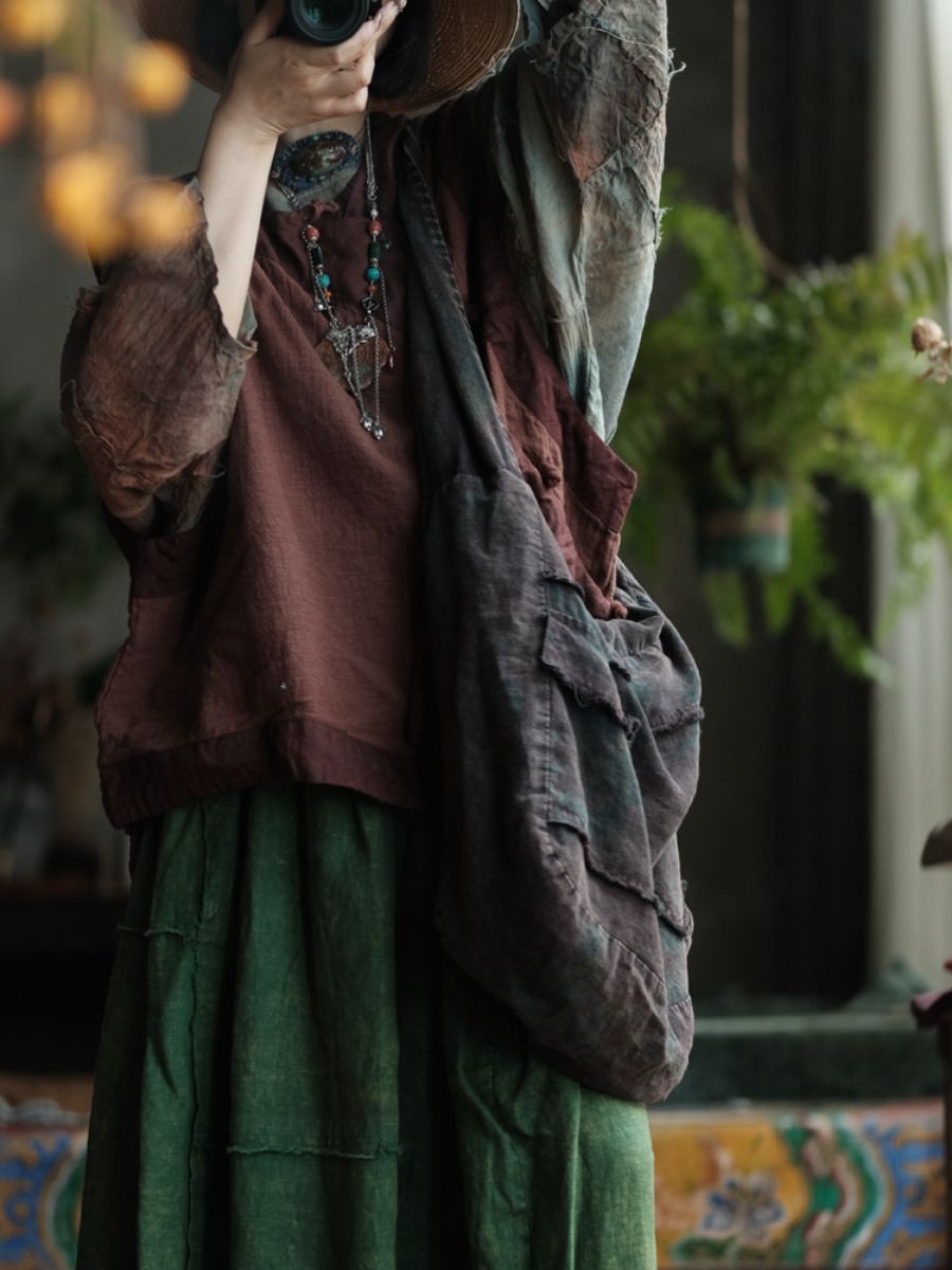 Women Rero Linen Faded Washed Color Crossbody Bag