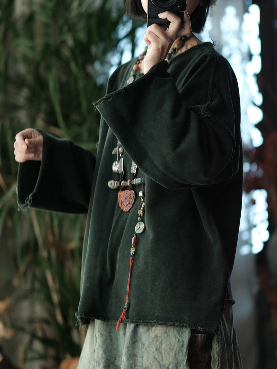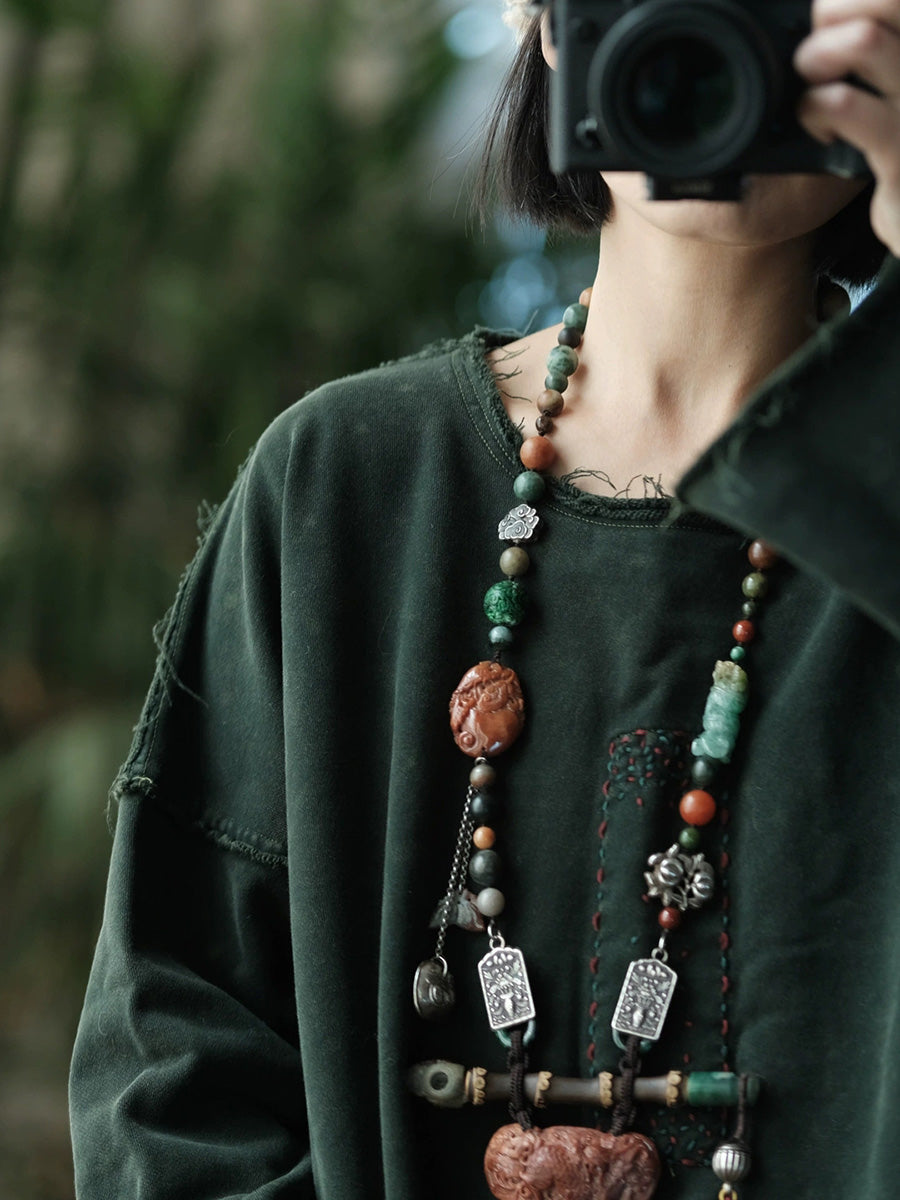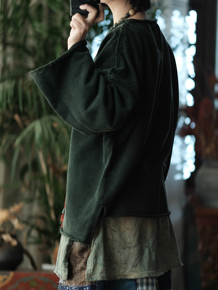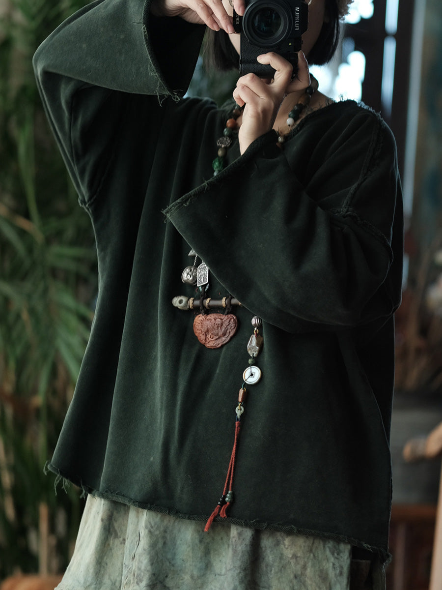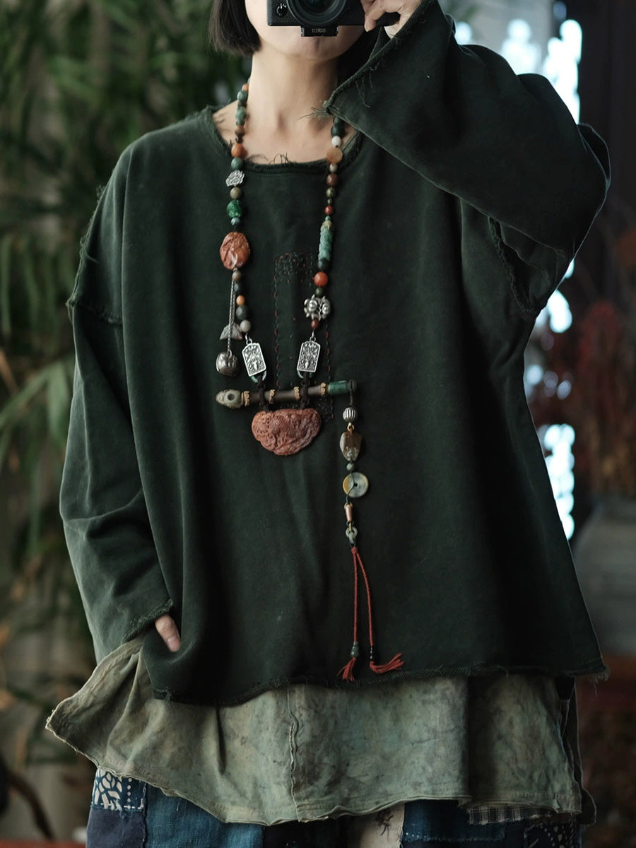 Women Retro Spring Pure Color Cotton O-Neck Blouse