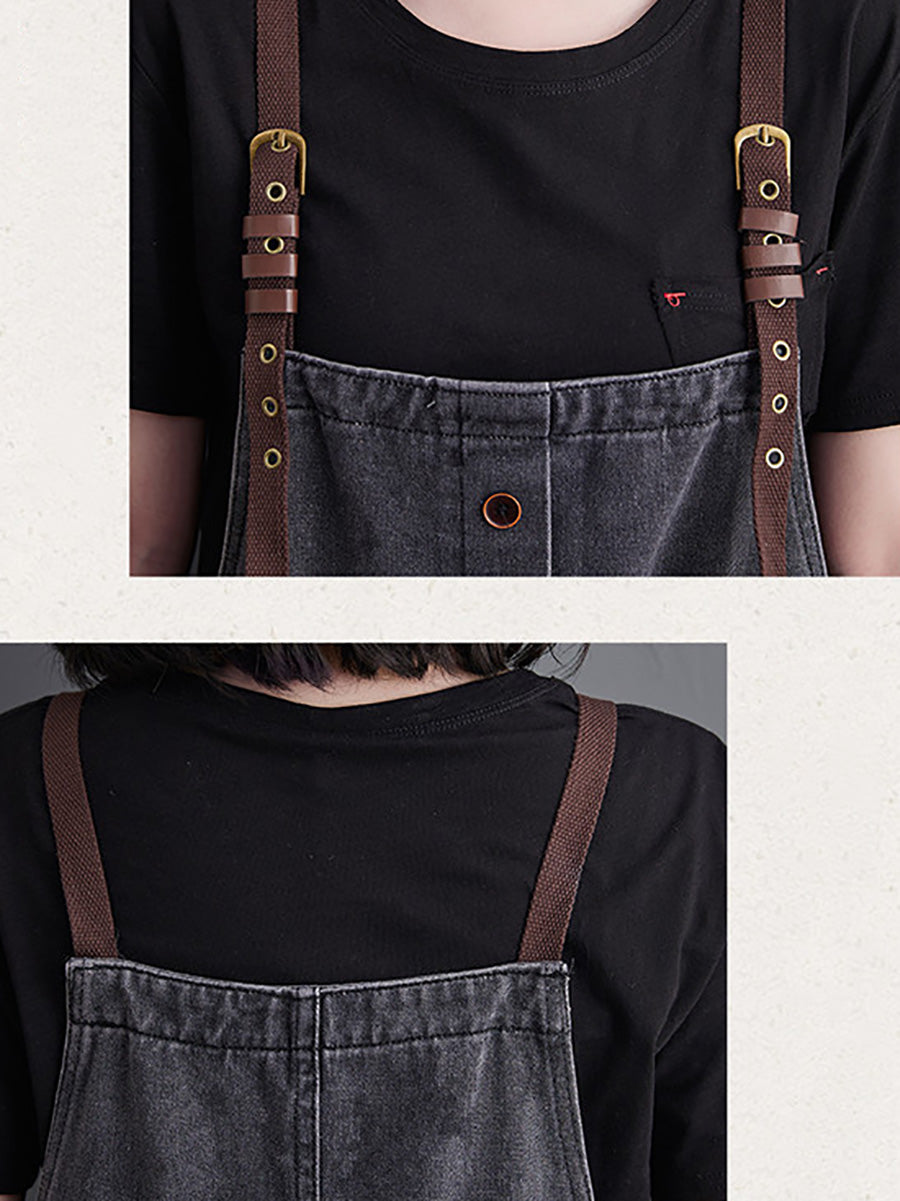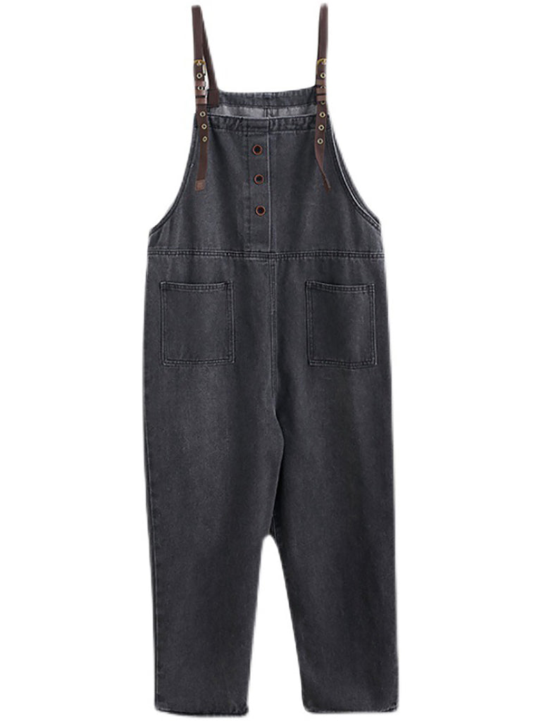 Women Retro Spring Solid Loose Denim Jumpsuits