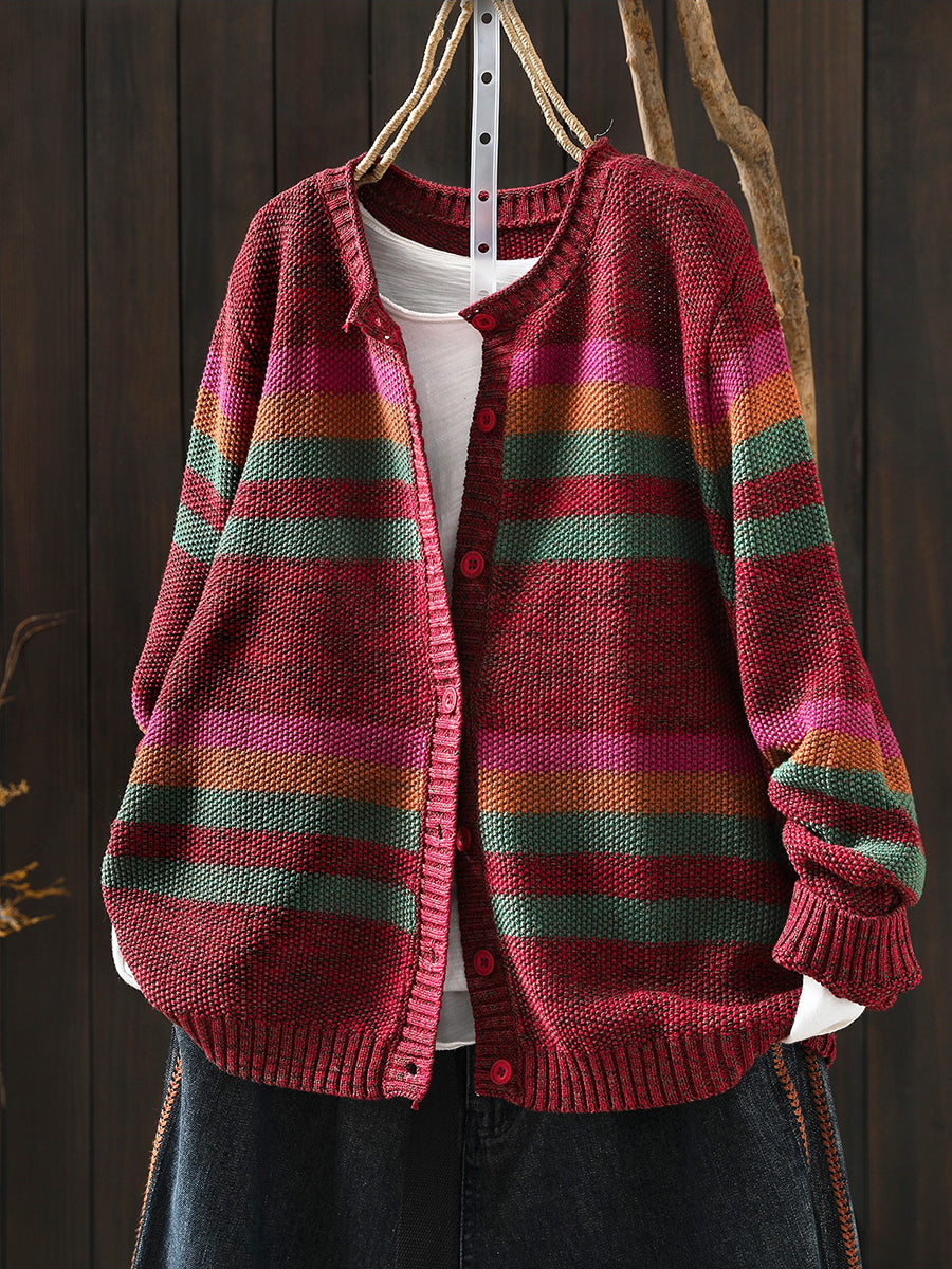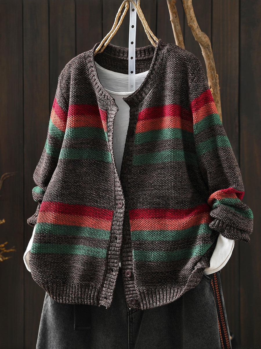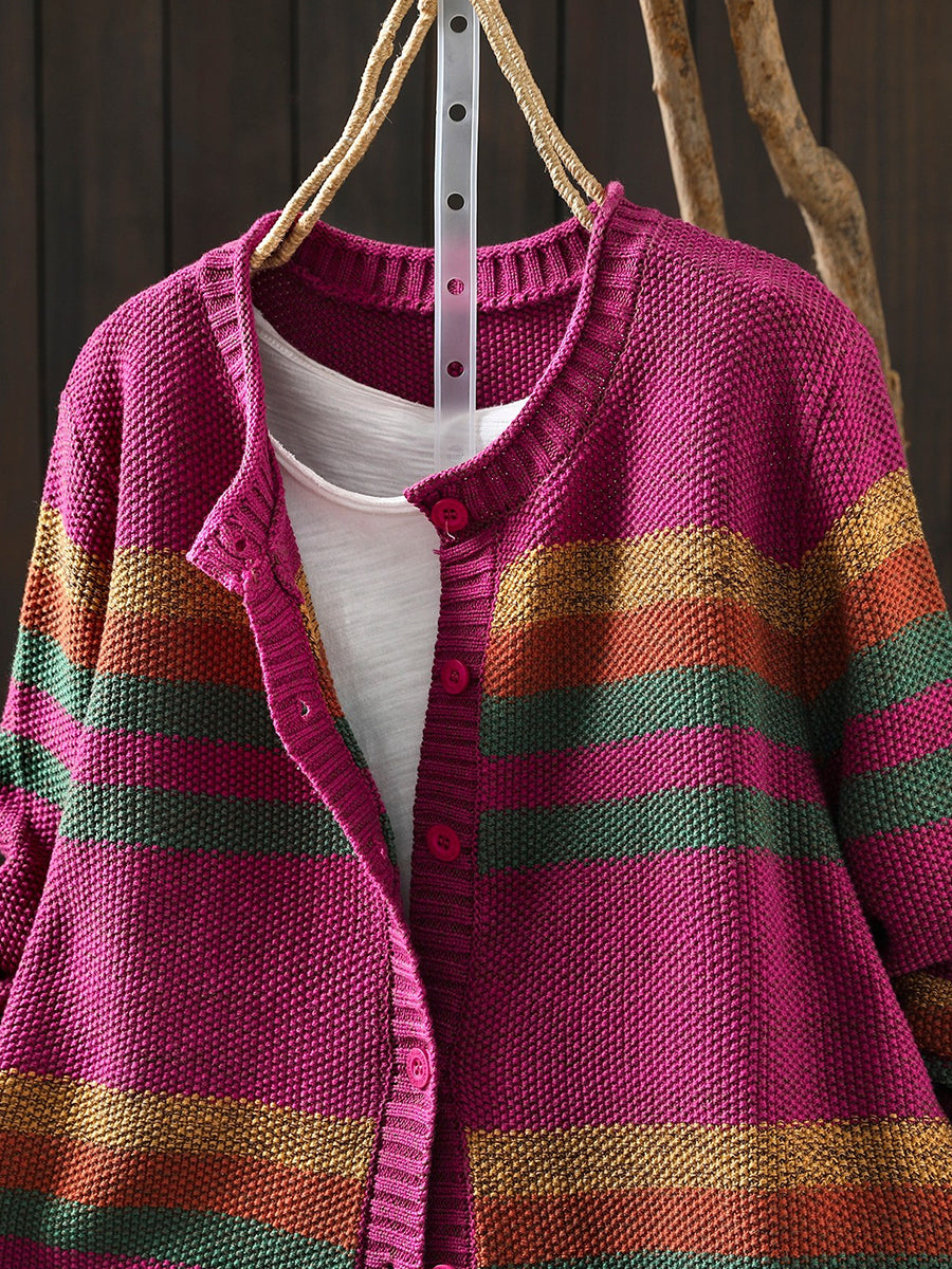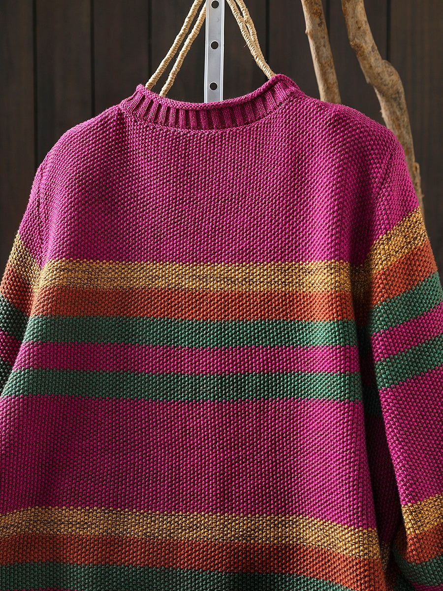 Women Spring Artsy Colorblock Stripe O-Neck Sweater