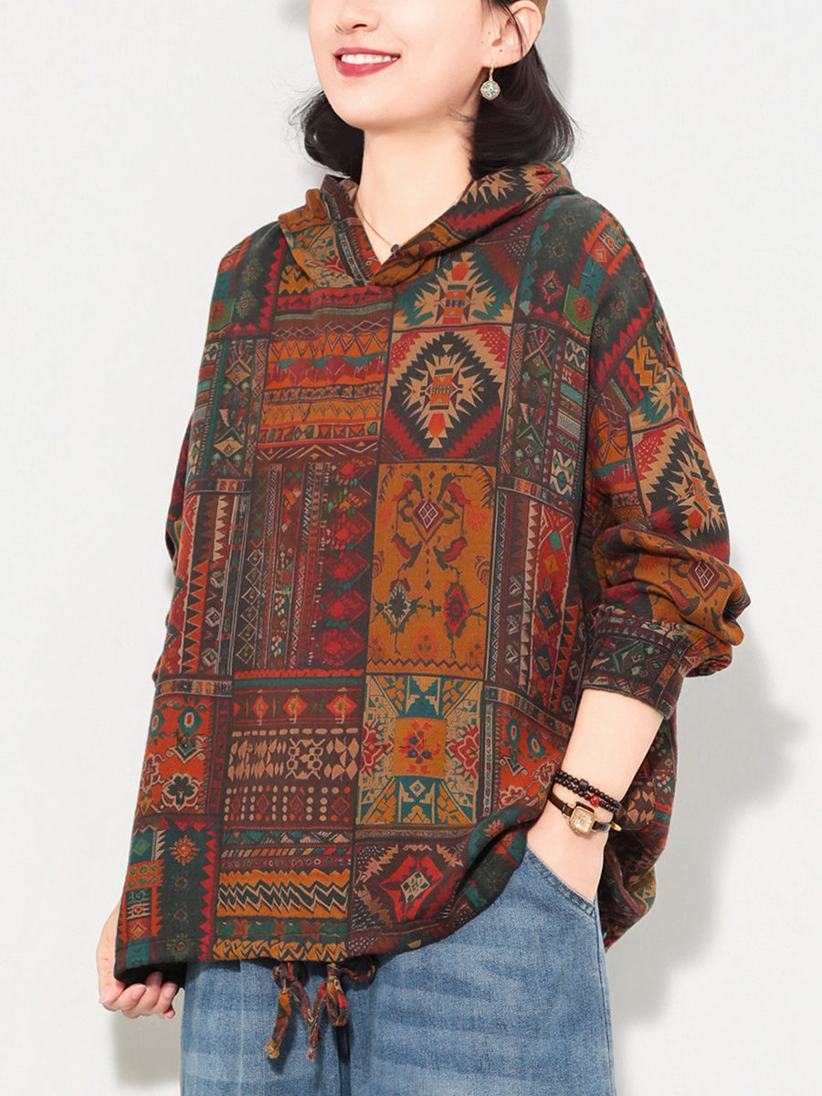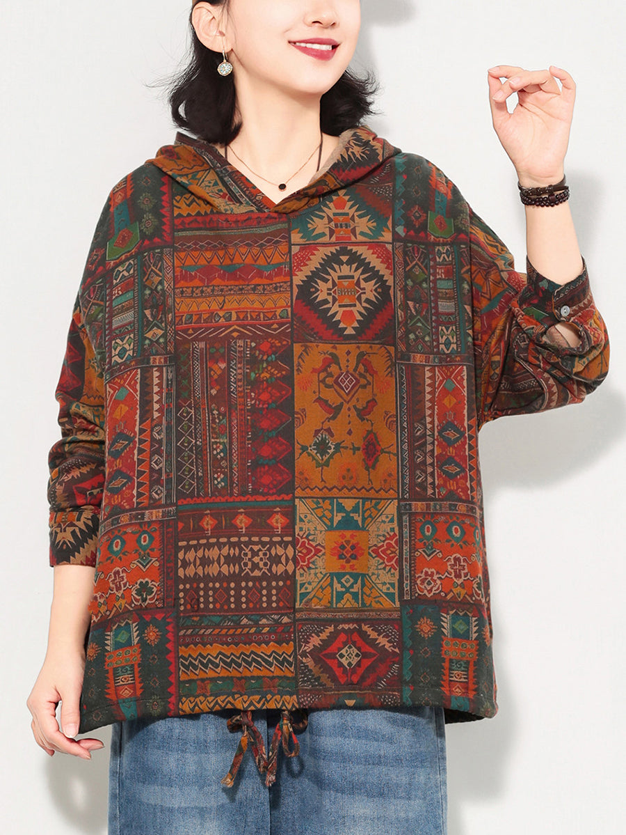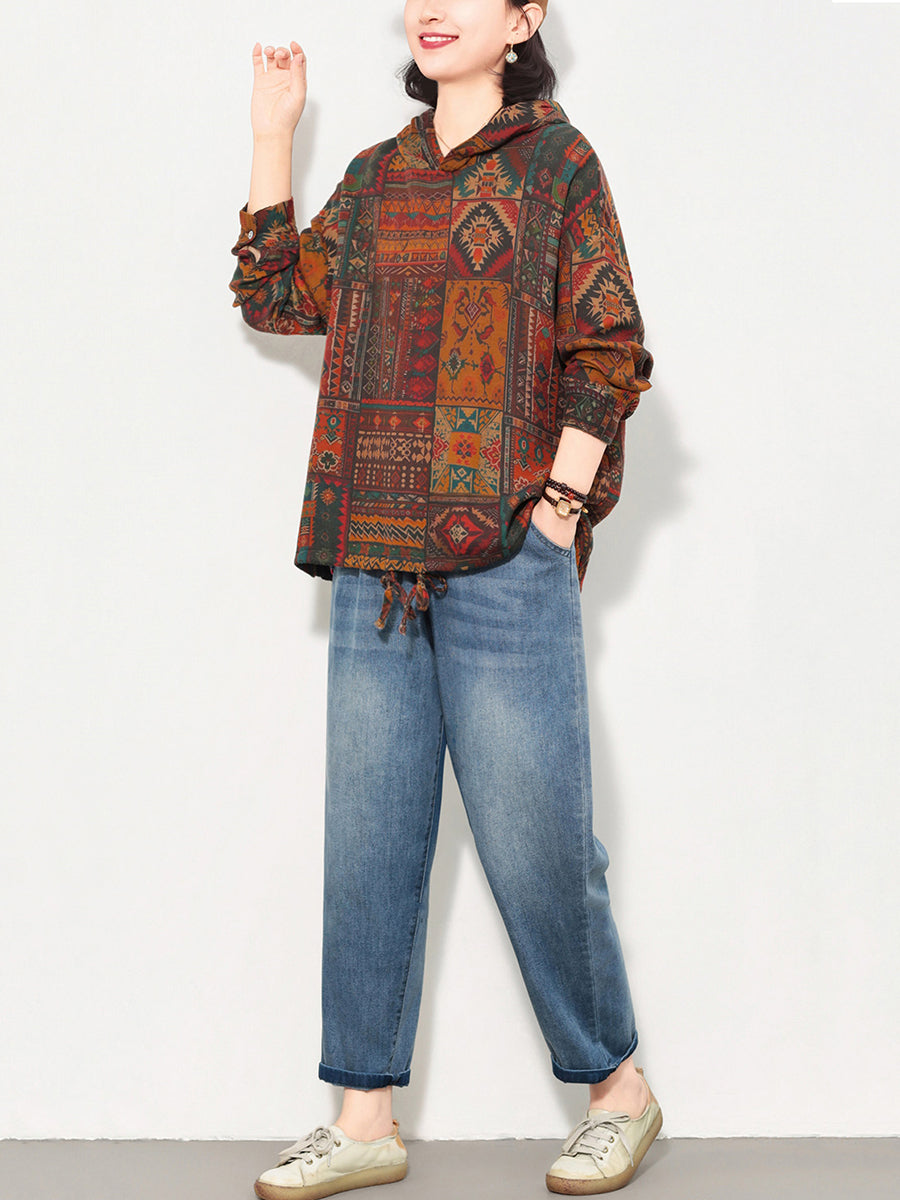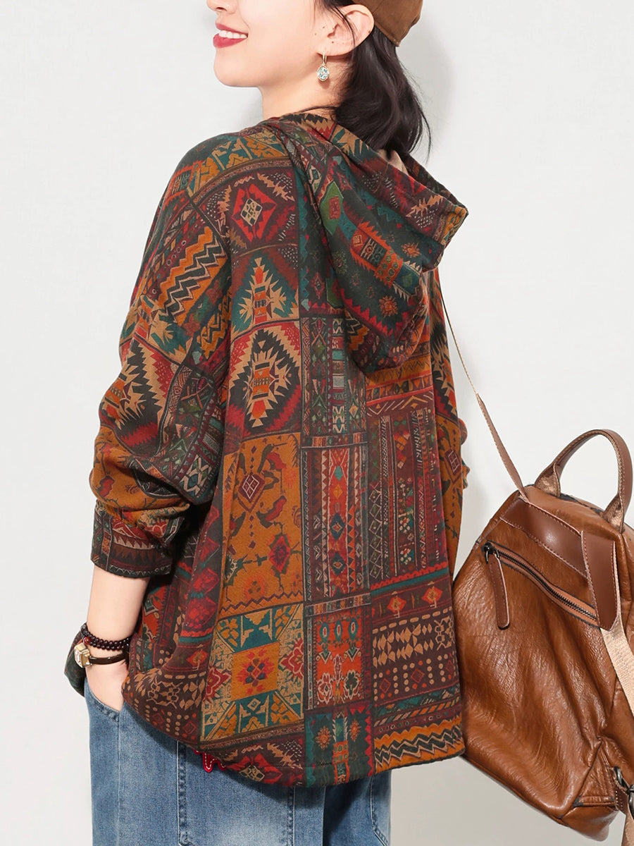 Women Spring Artsy Flower Cotton Hoodie