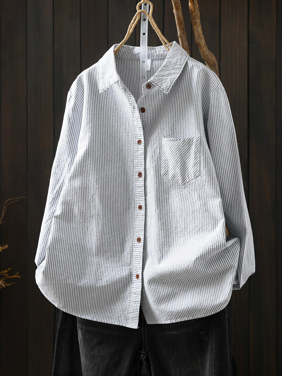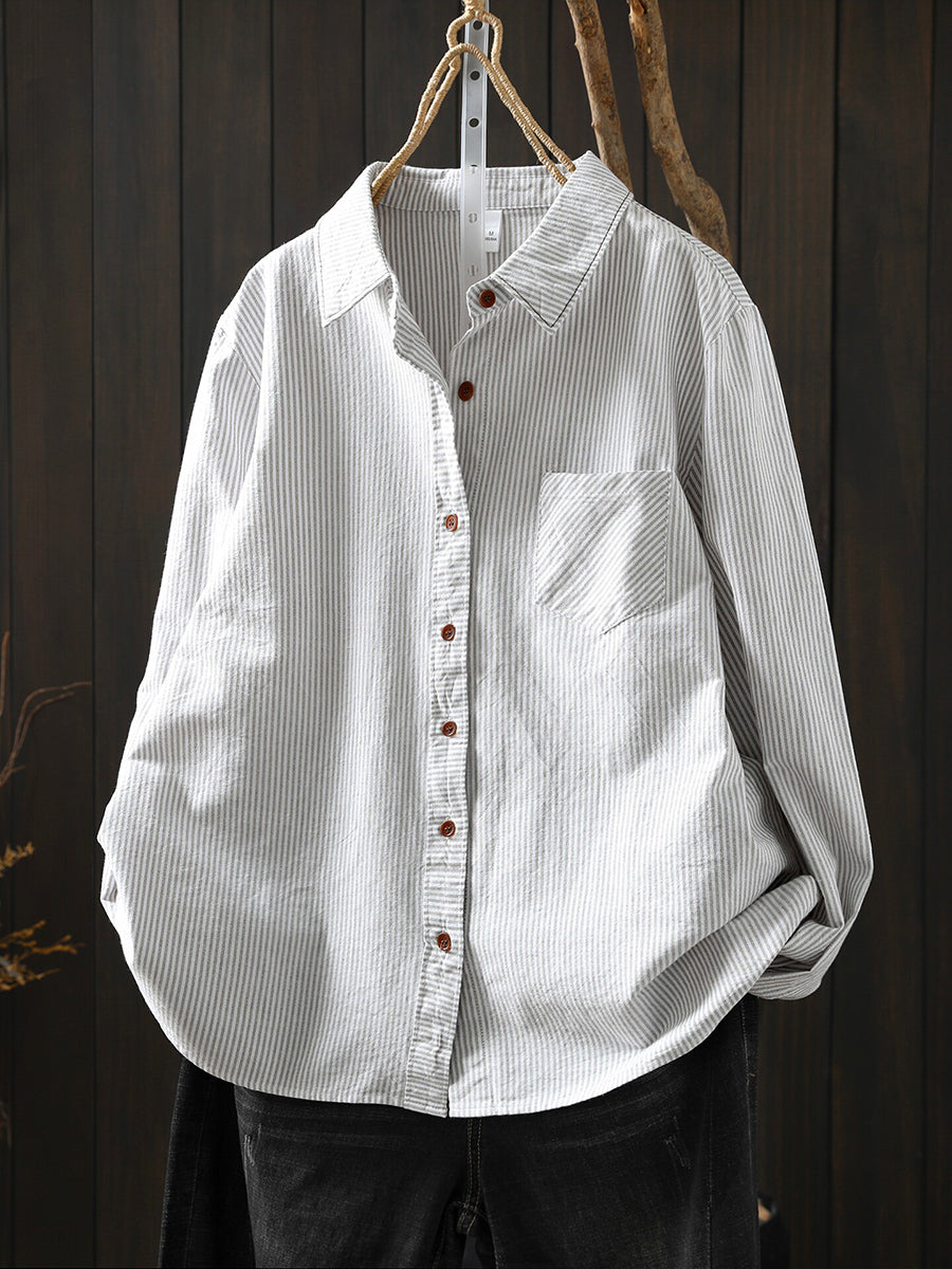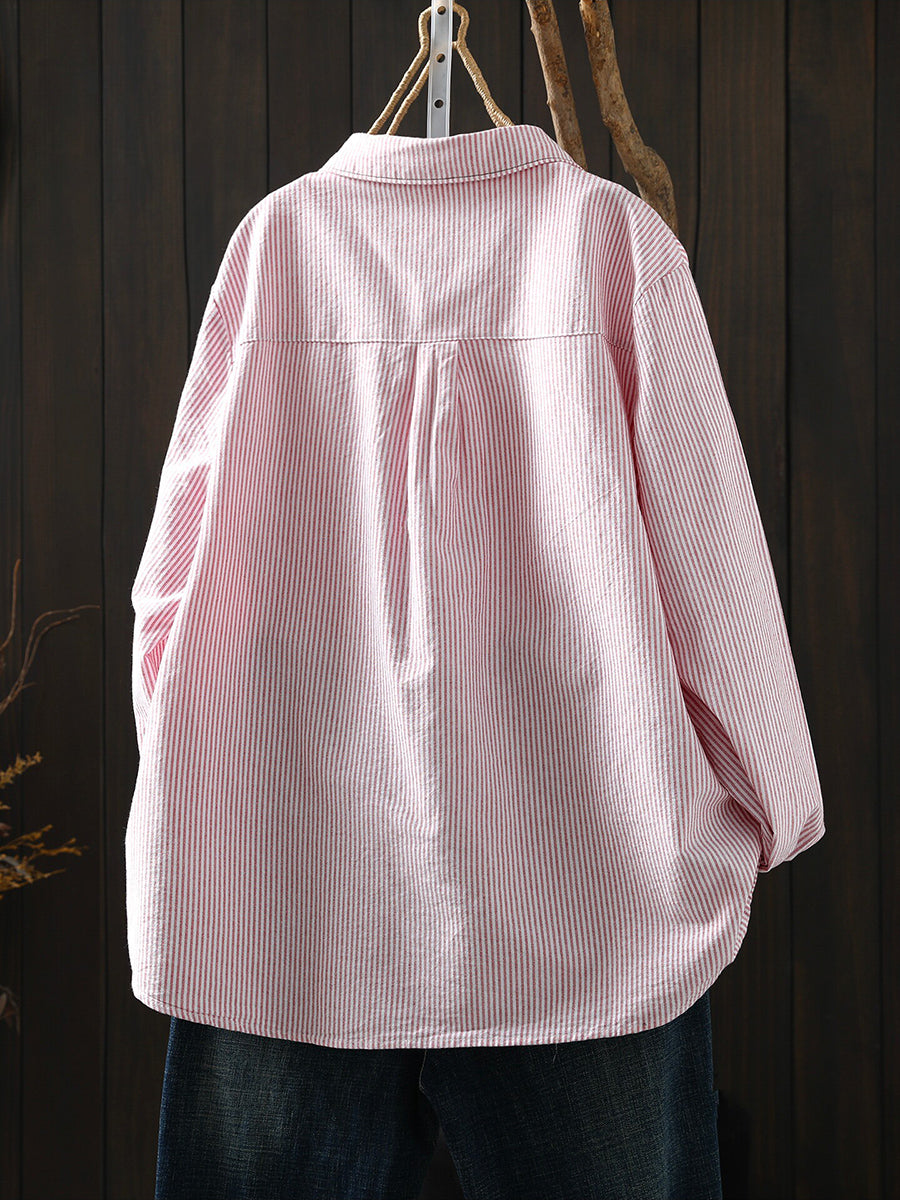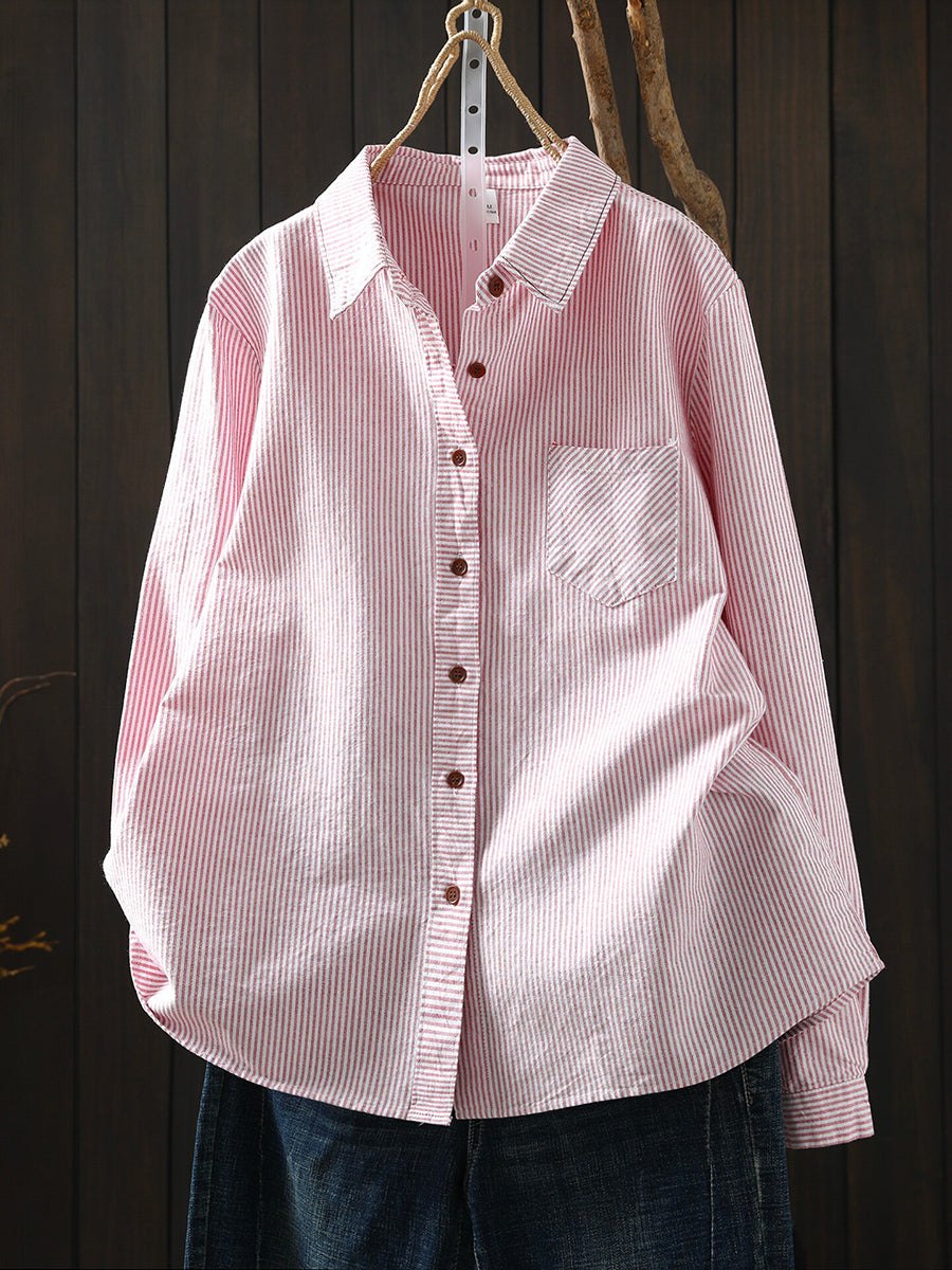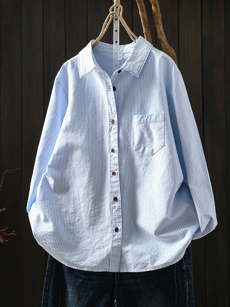 Women Spring Artsy Stripe 100%Cotton Shirt
