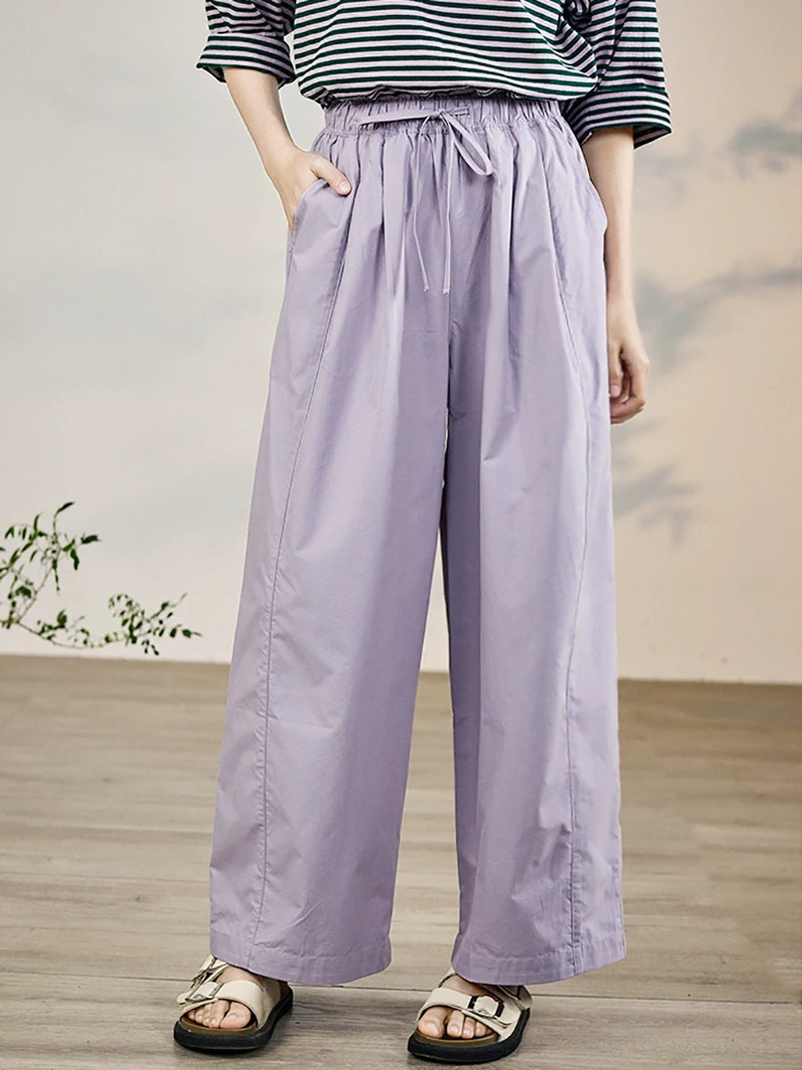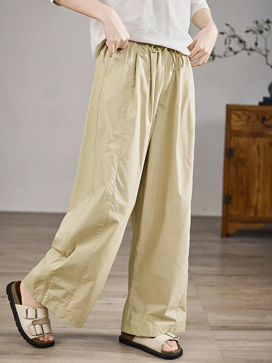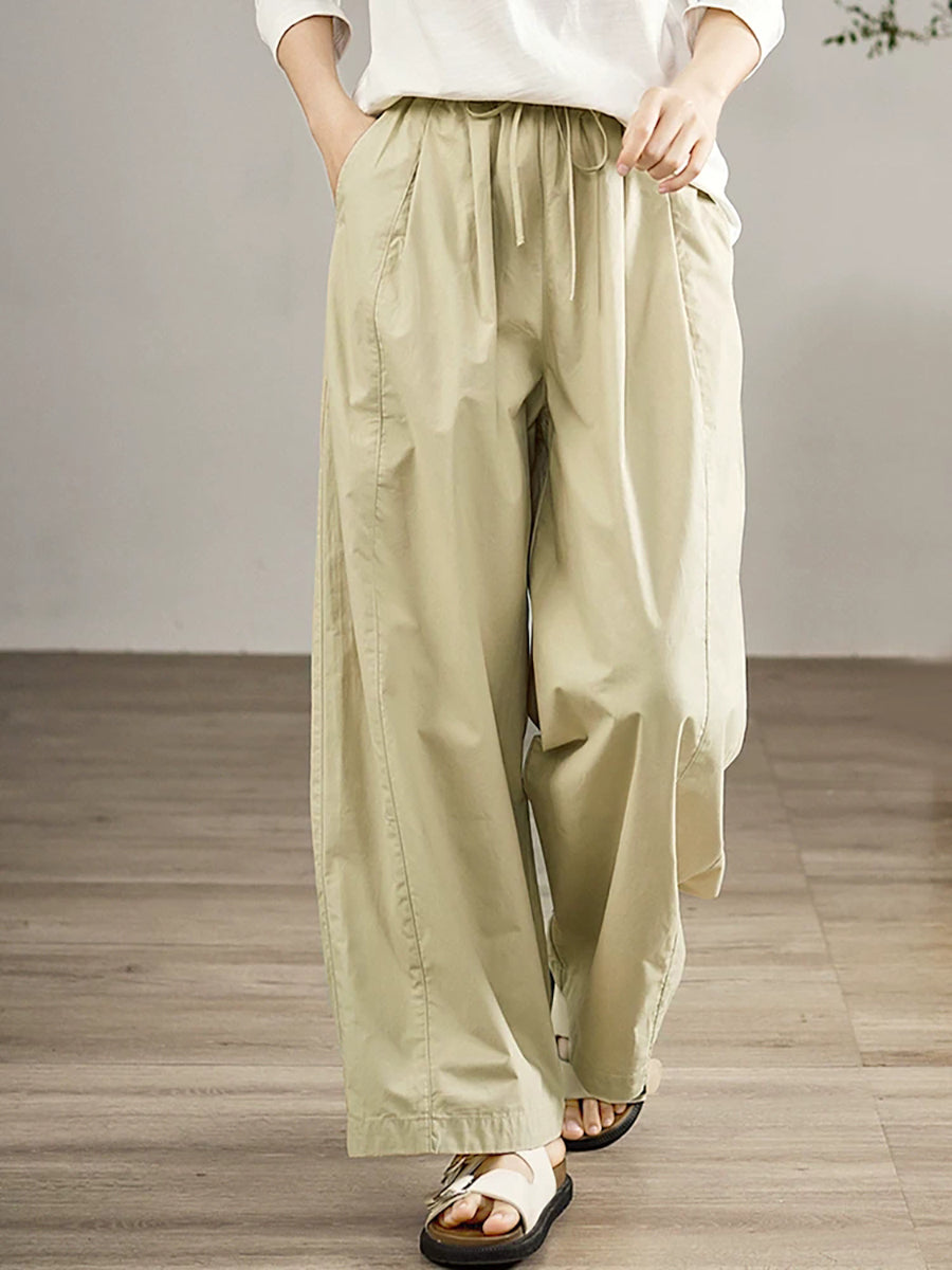 Women Spring Casual Pure Color 100%Cotton Wide-leg Pants