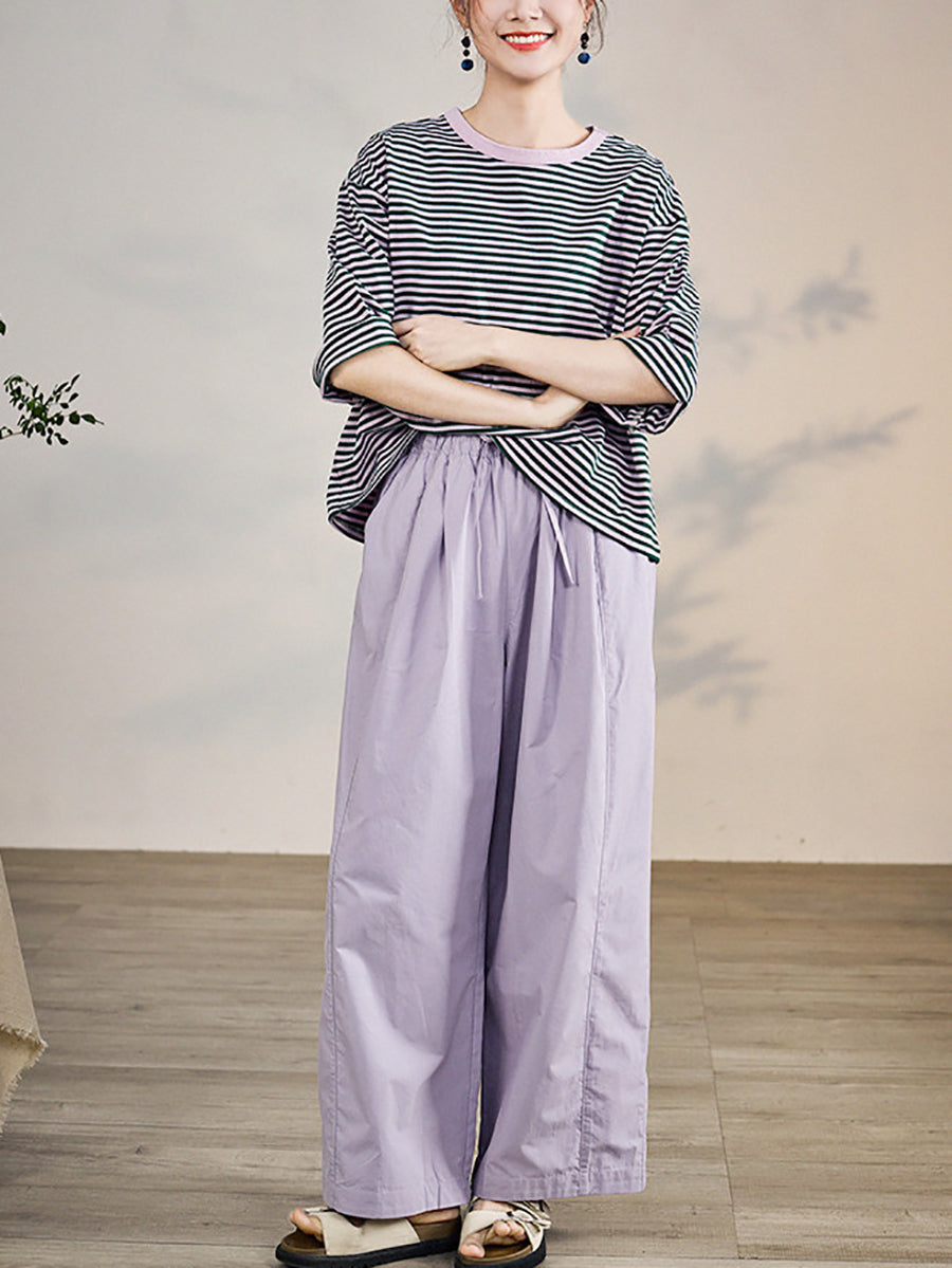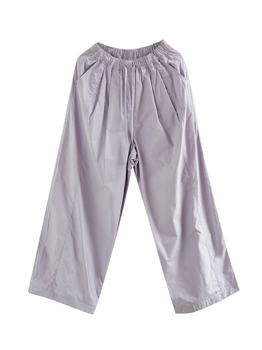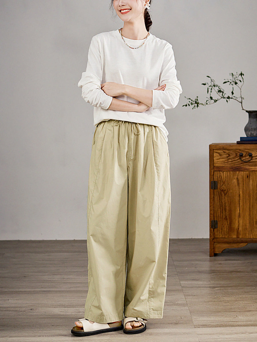 Women Spring Casual Pure Color 100%Cotton Wide-leg Pants