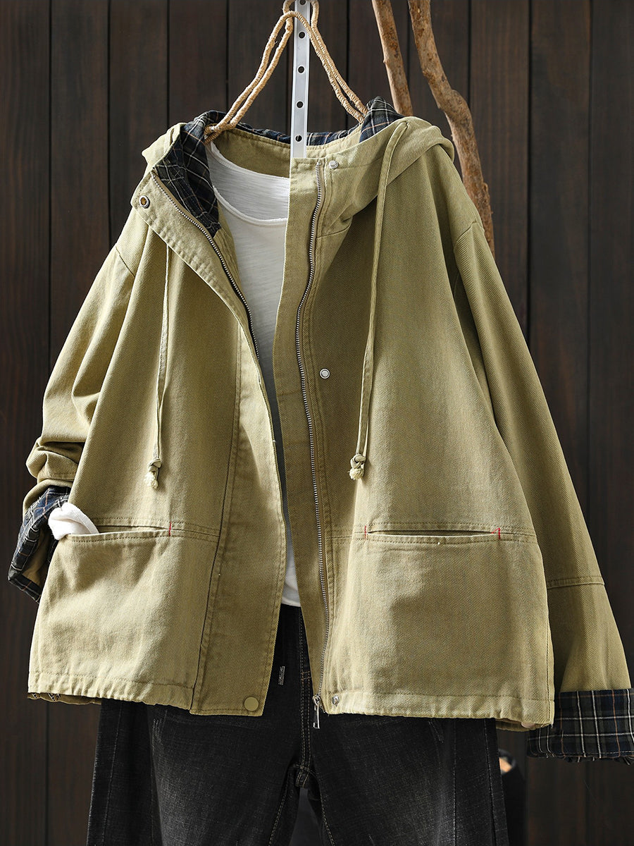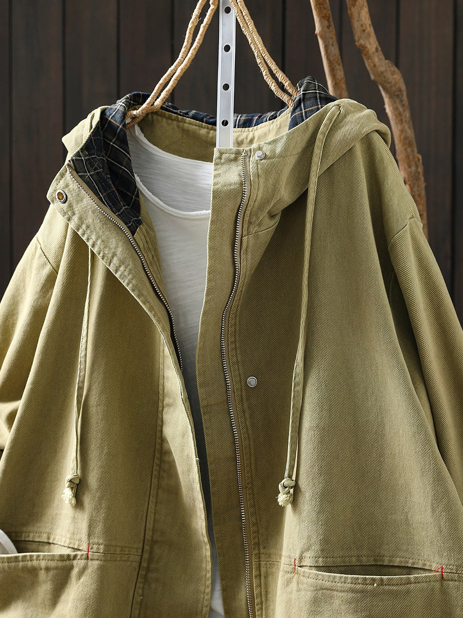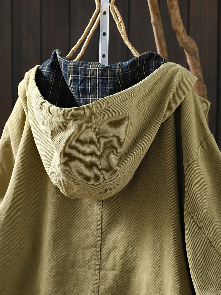 Women Spring Casual Pure Color Hooded Coat