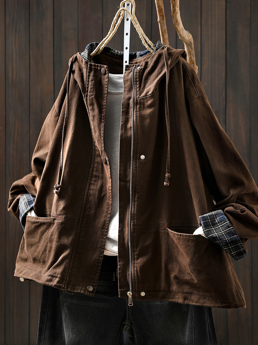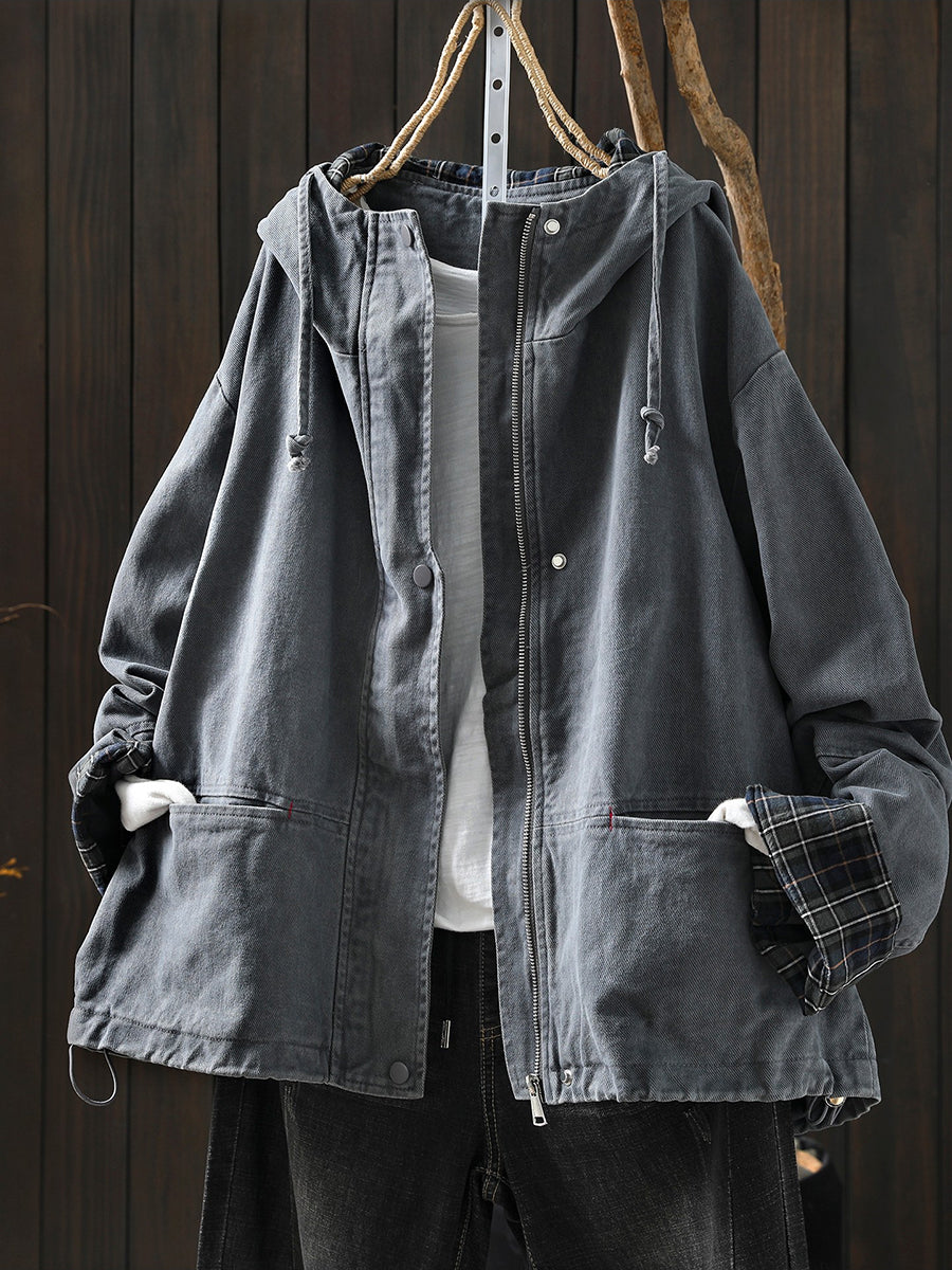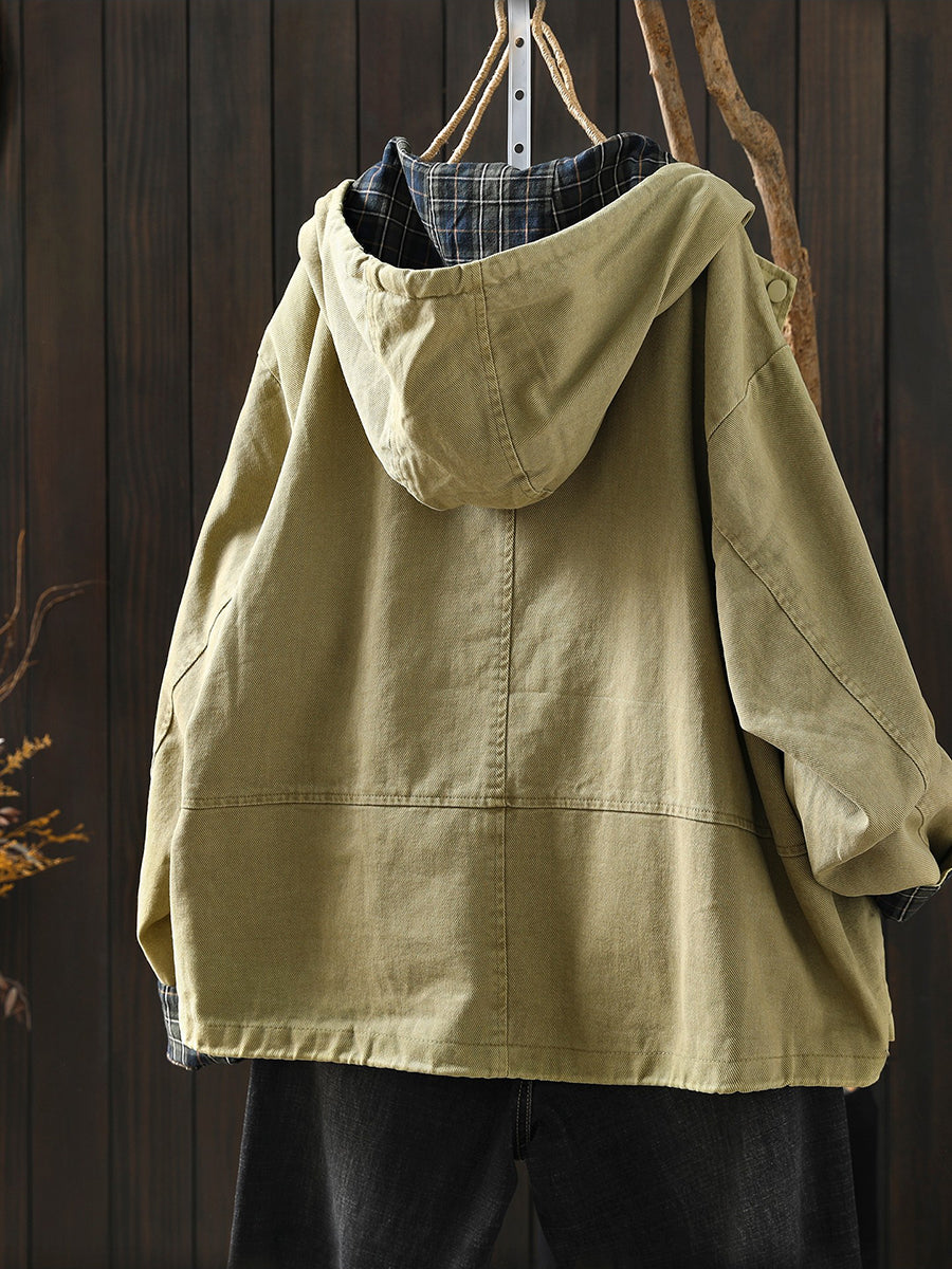 Women Spring Casual Pure Color Hooded Coat