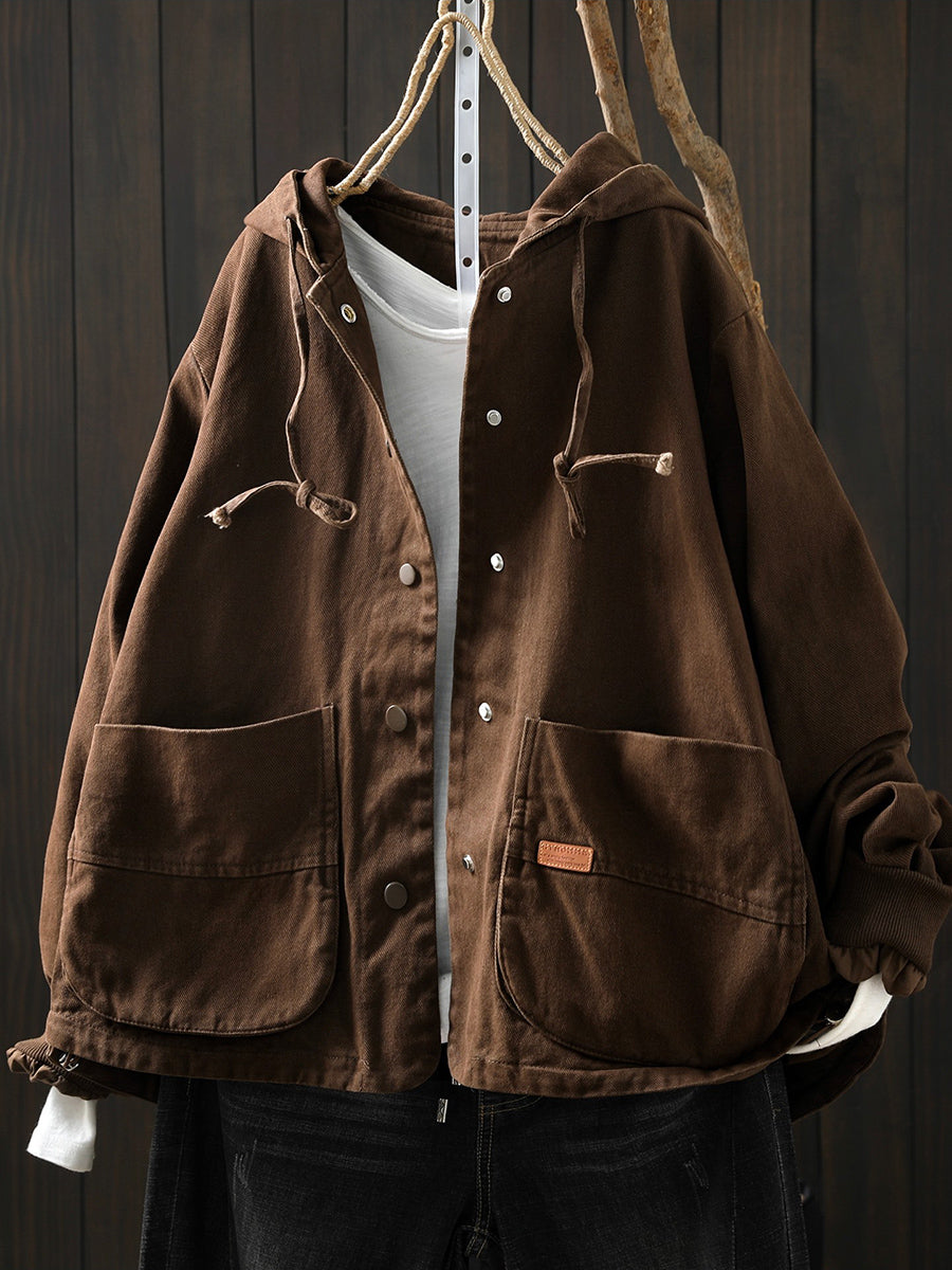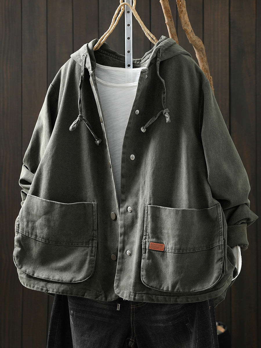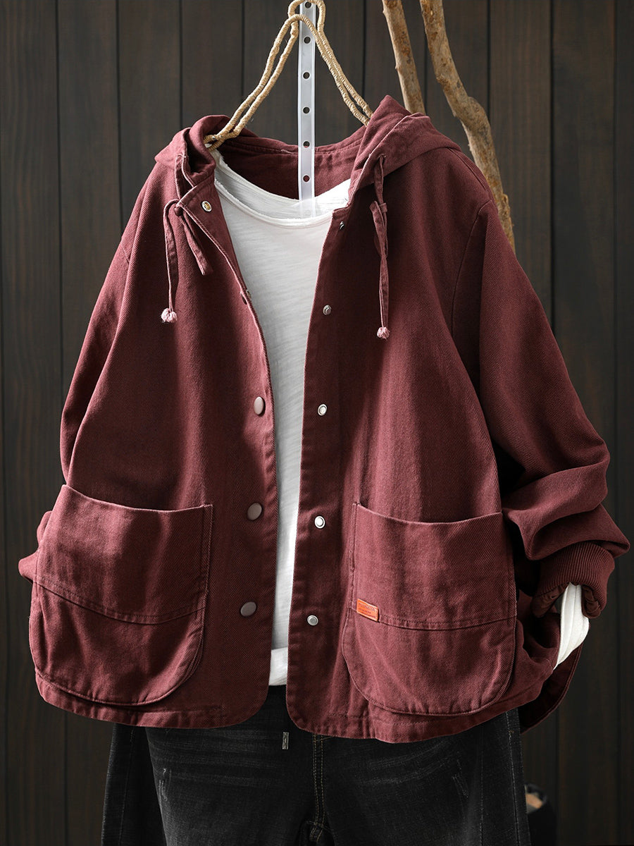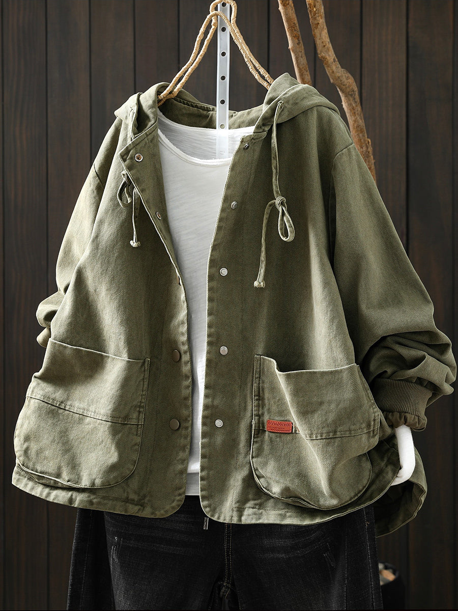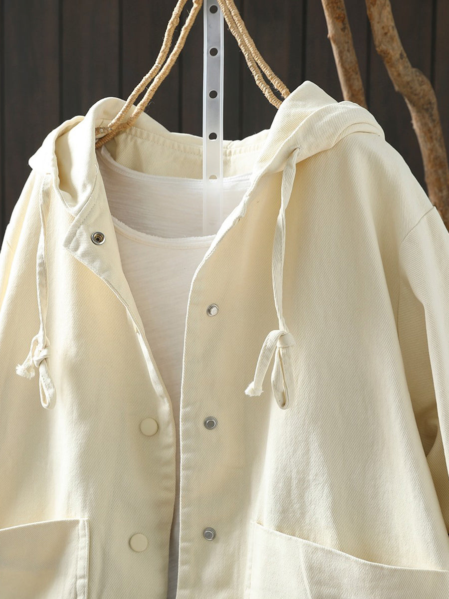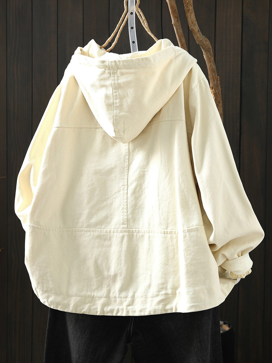Women Spring Casual Pure Color Hooded Cotton Coat