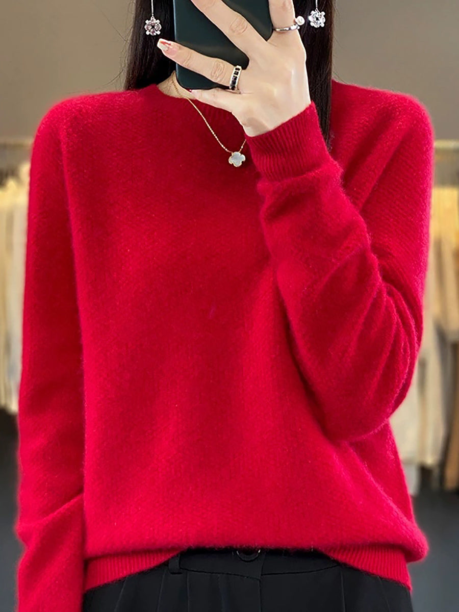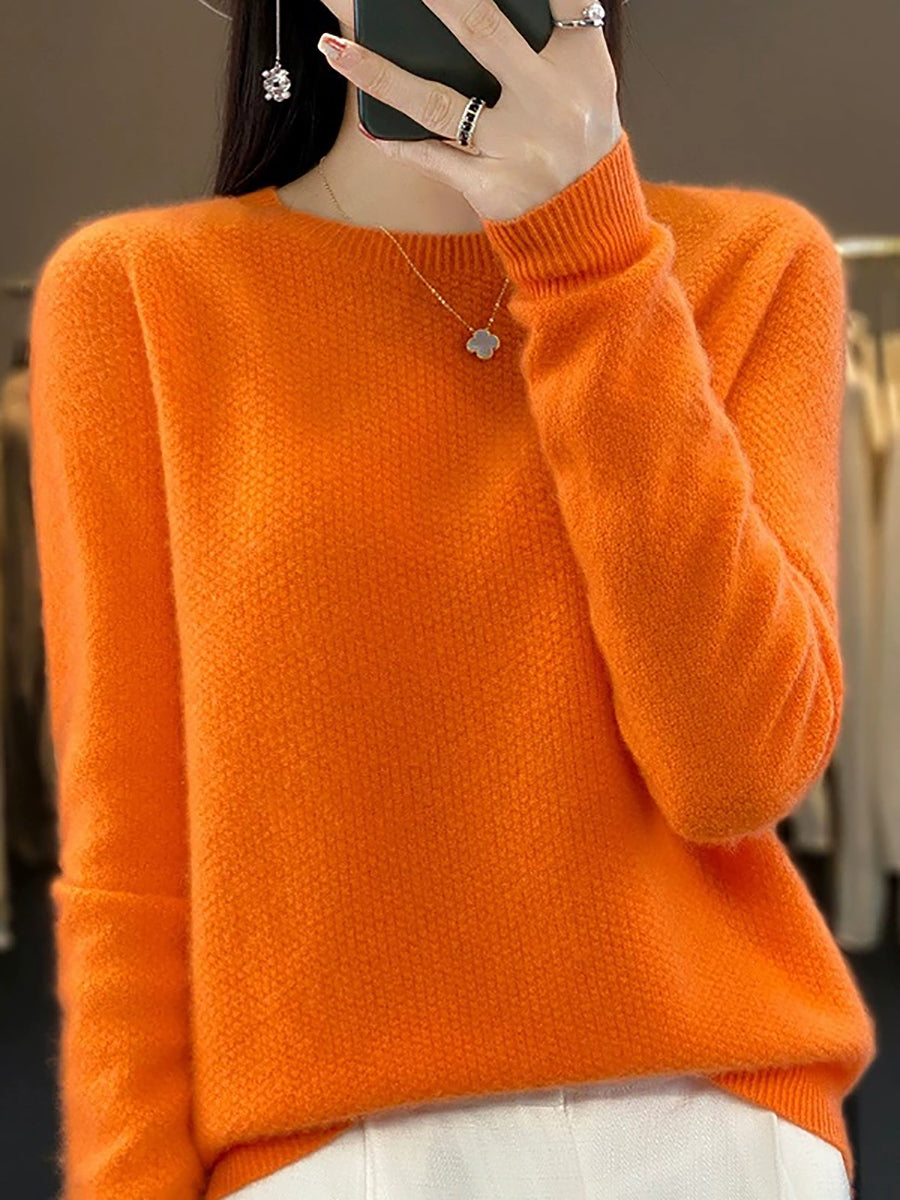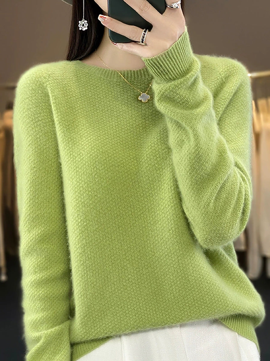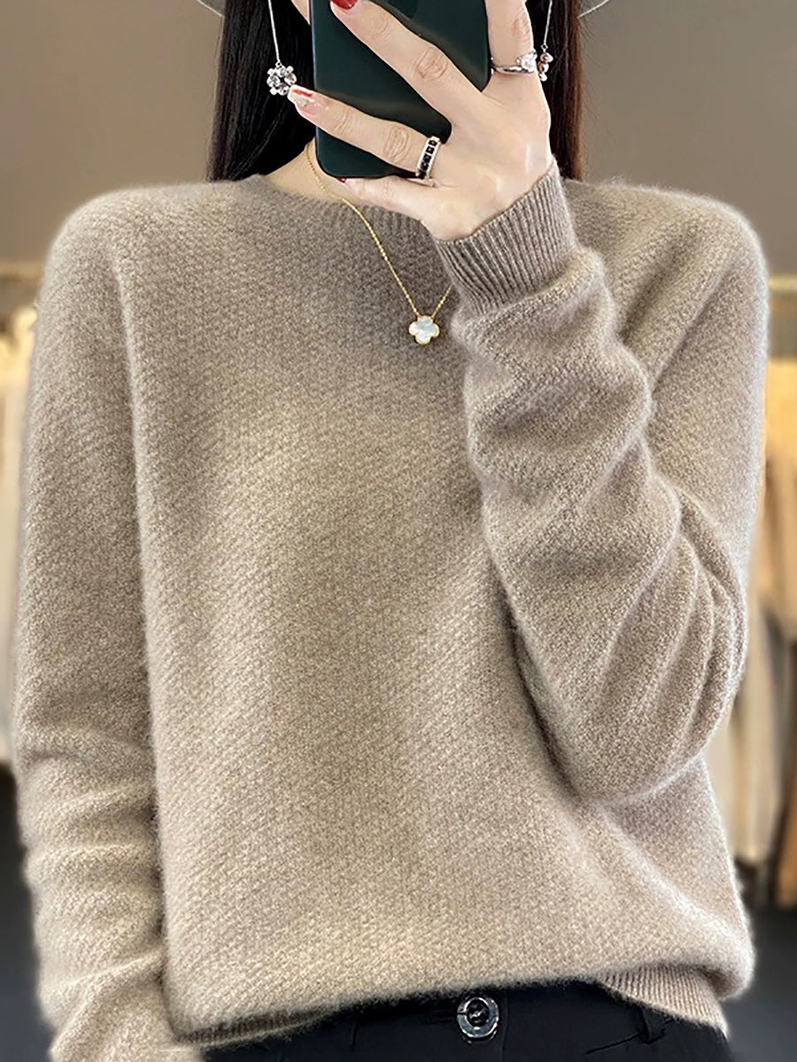 Women Spring Casual Pure Color O-Neck Sweater