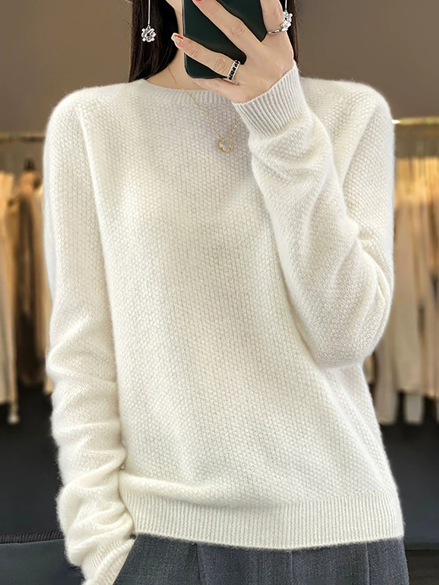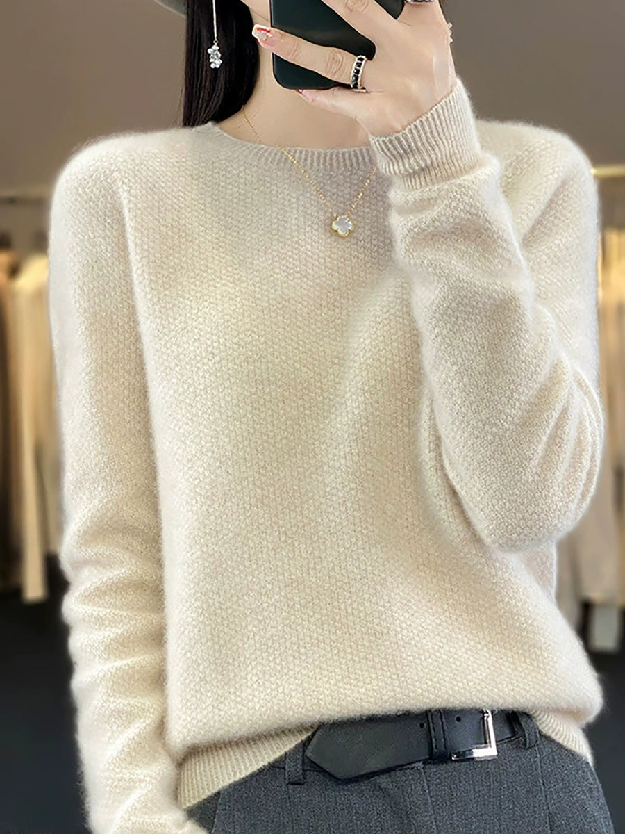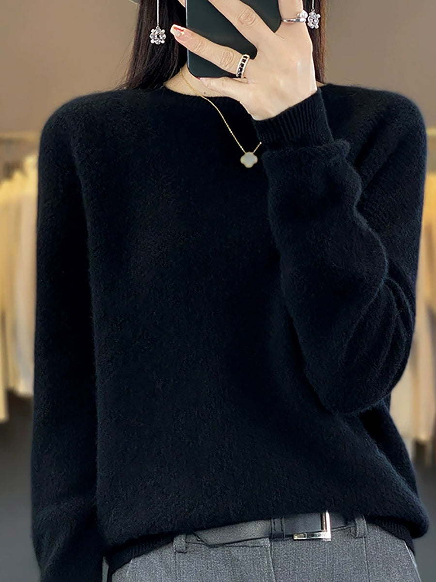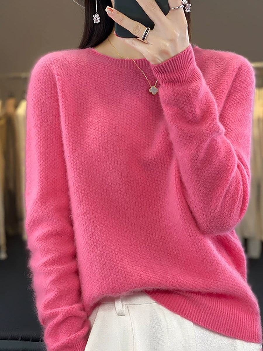 Women Spring Casual Pure Color O-Neck Sweater