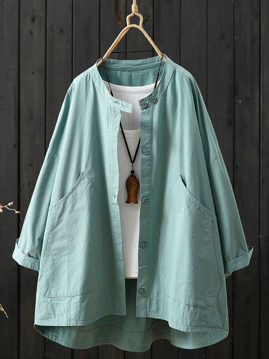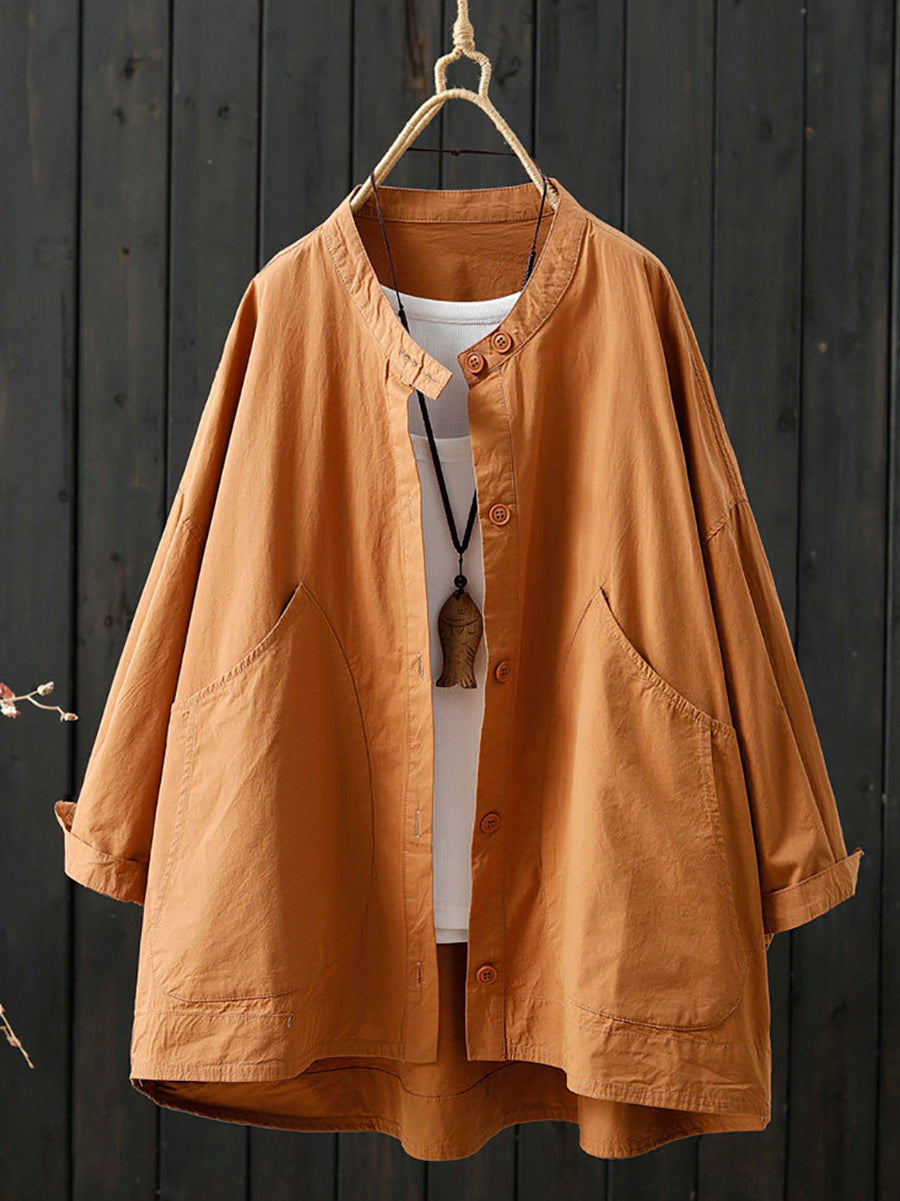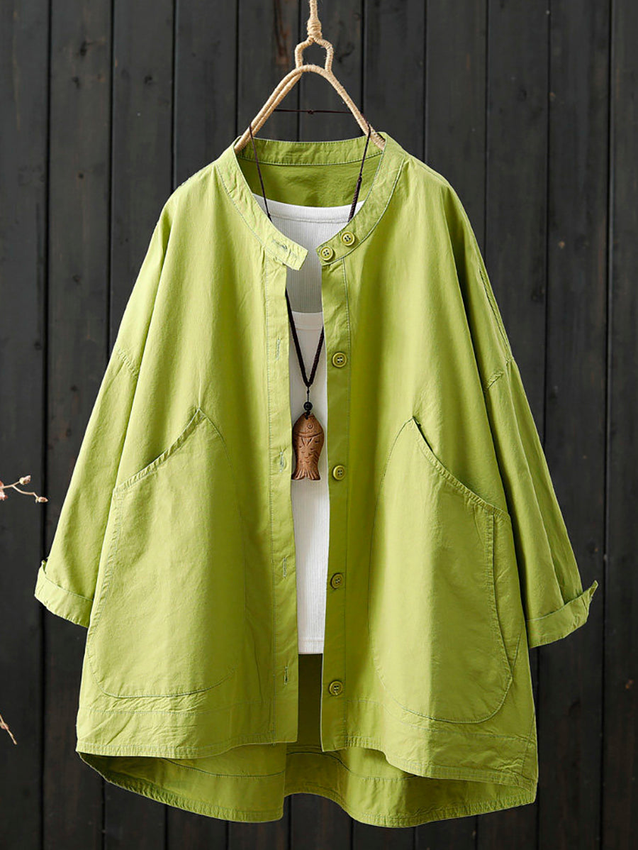 Women Spring Casual Pure Color Stand Collar Coat