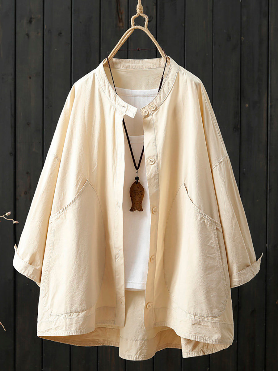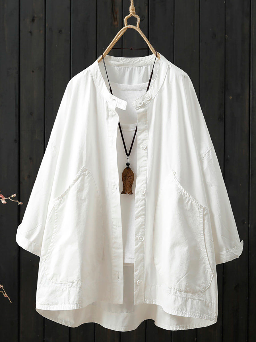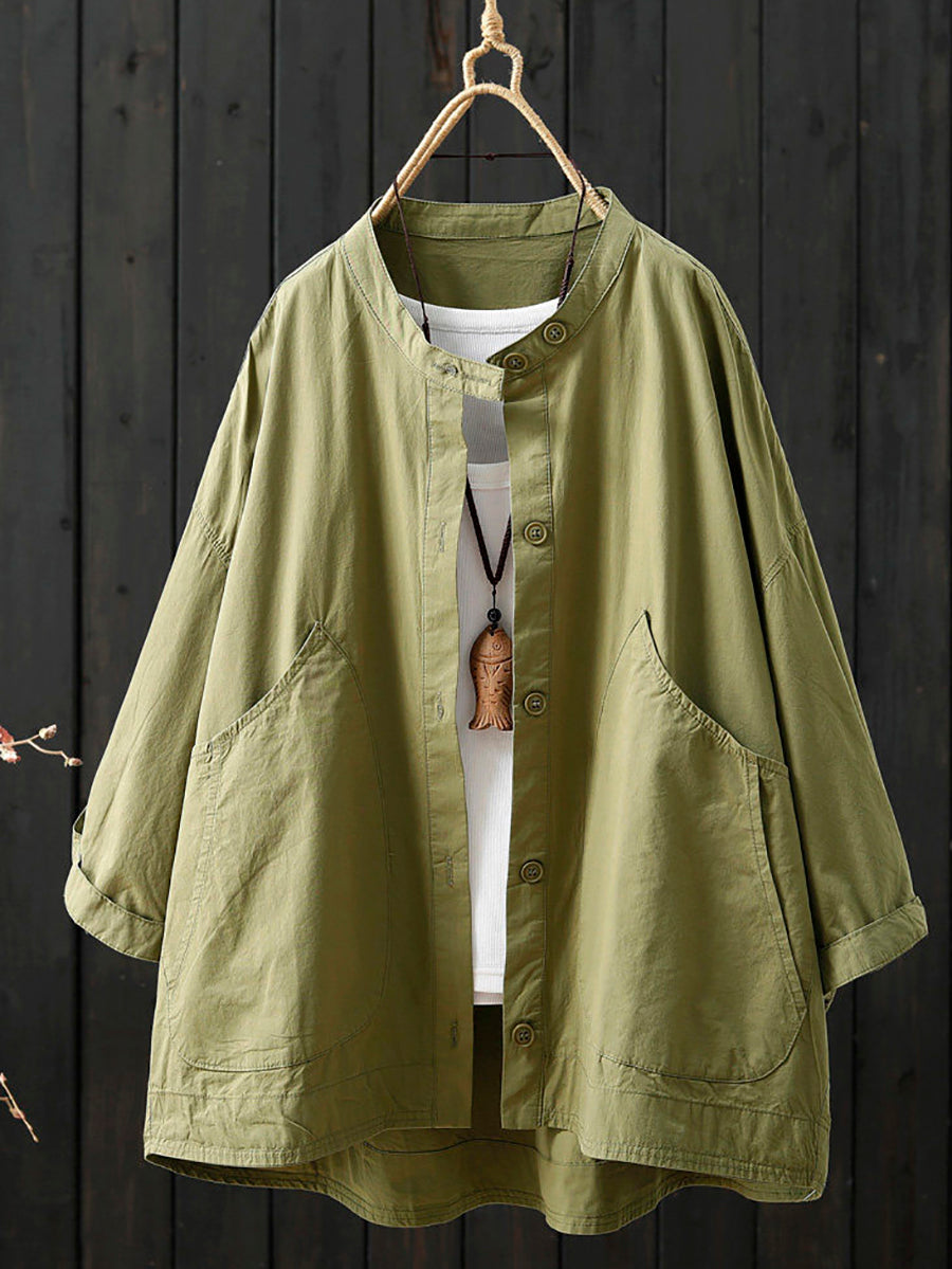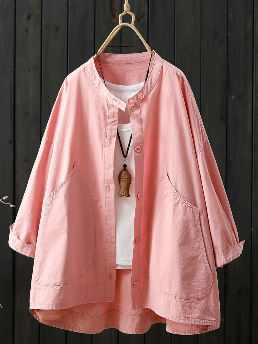 Women Spring Casual Pure Color Stand Collar Coat