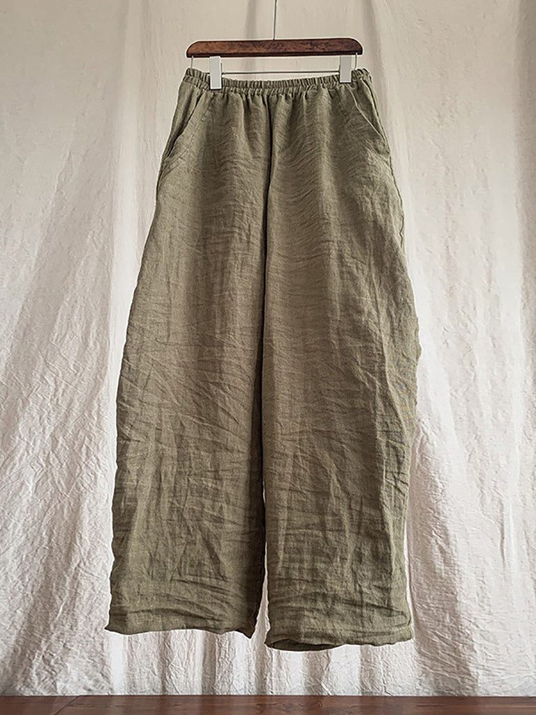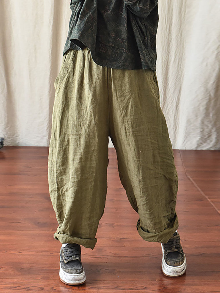 Plus Size Women Casual Solid Loose Elastic Waist Linen Pants