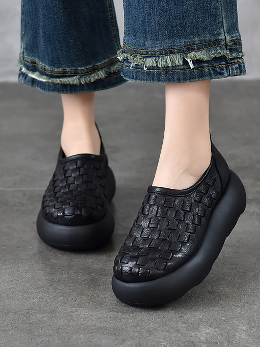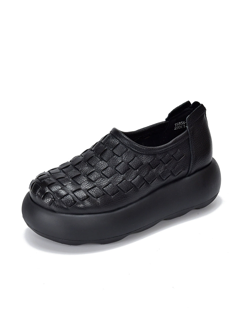 Women Spring Genuine Leather Weave Platform Shoes