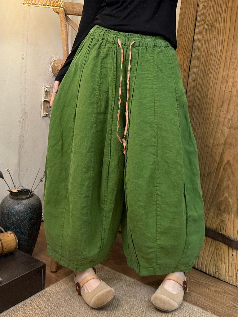 Plus Size Women Spring Pure Color Linen Harem Pants