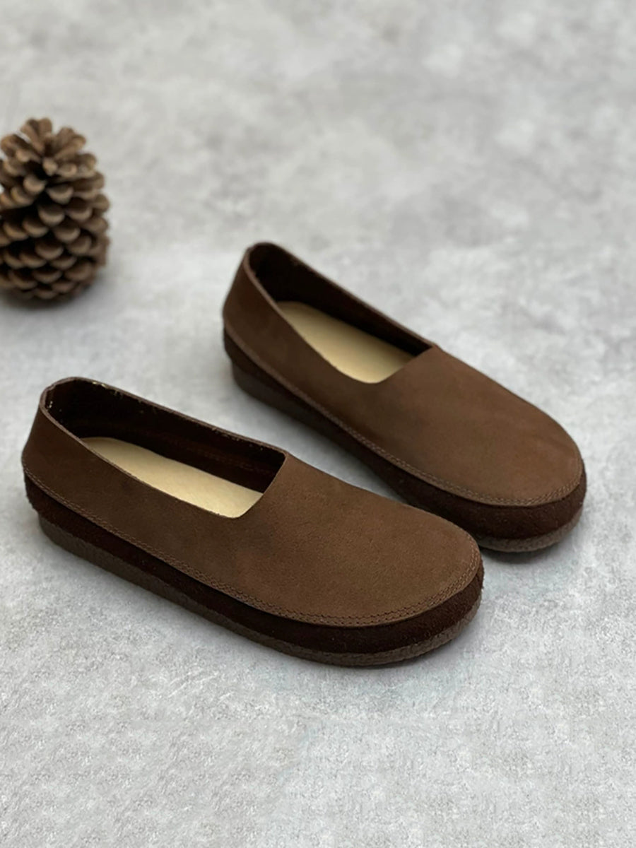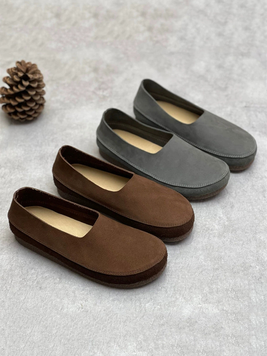 Women Spring Retro Genuine Leather Low Heel Shoes