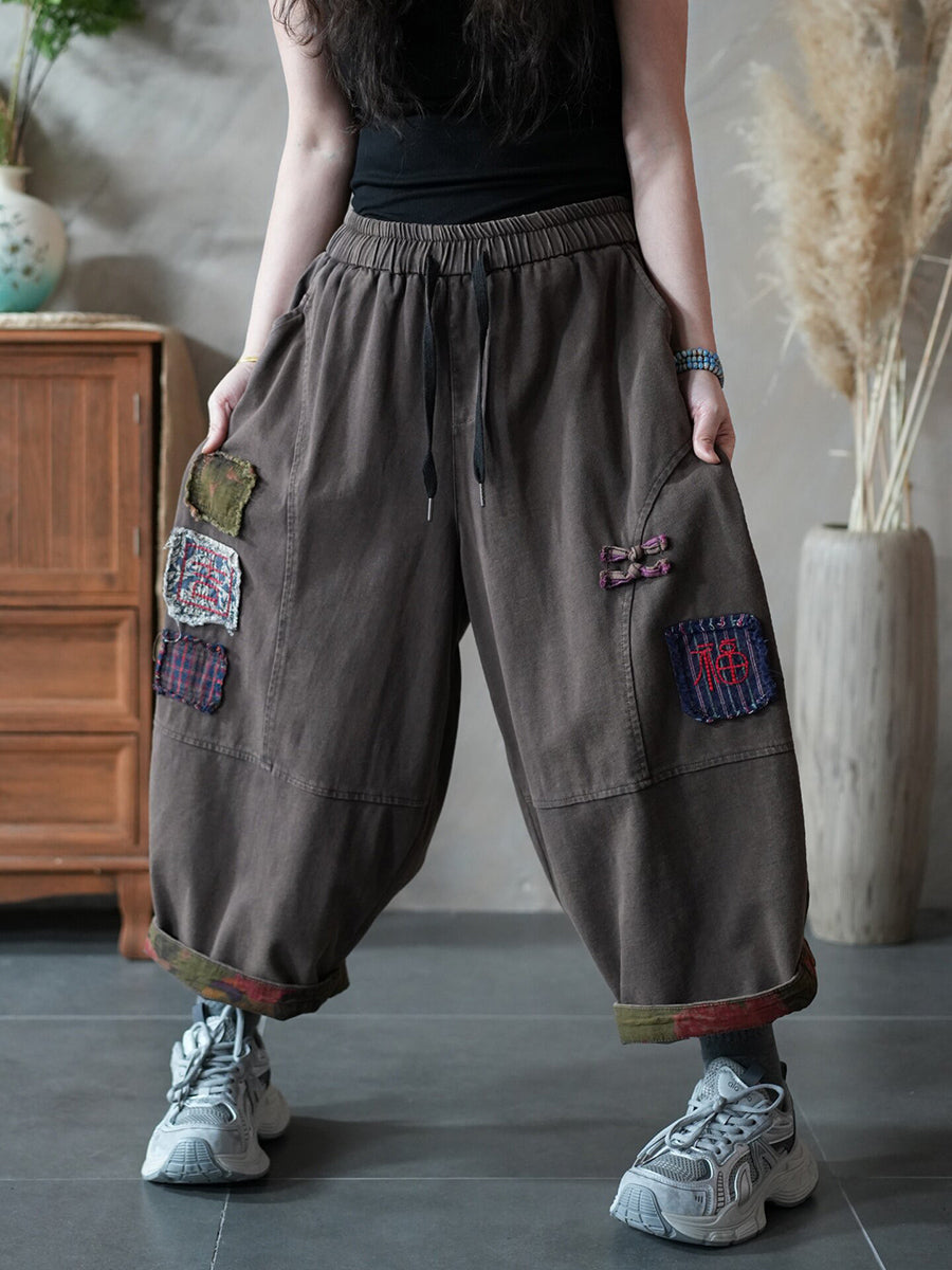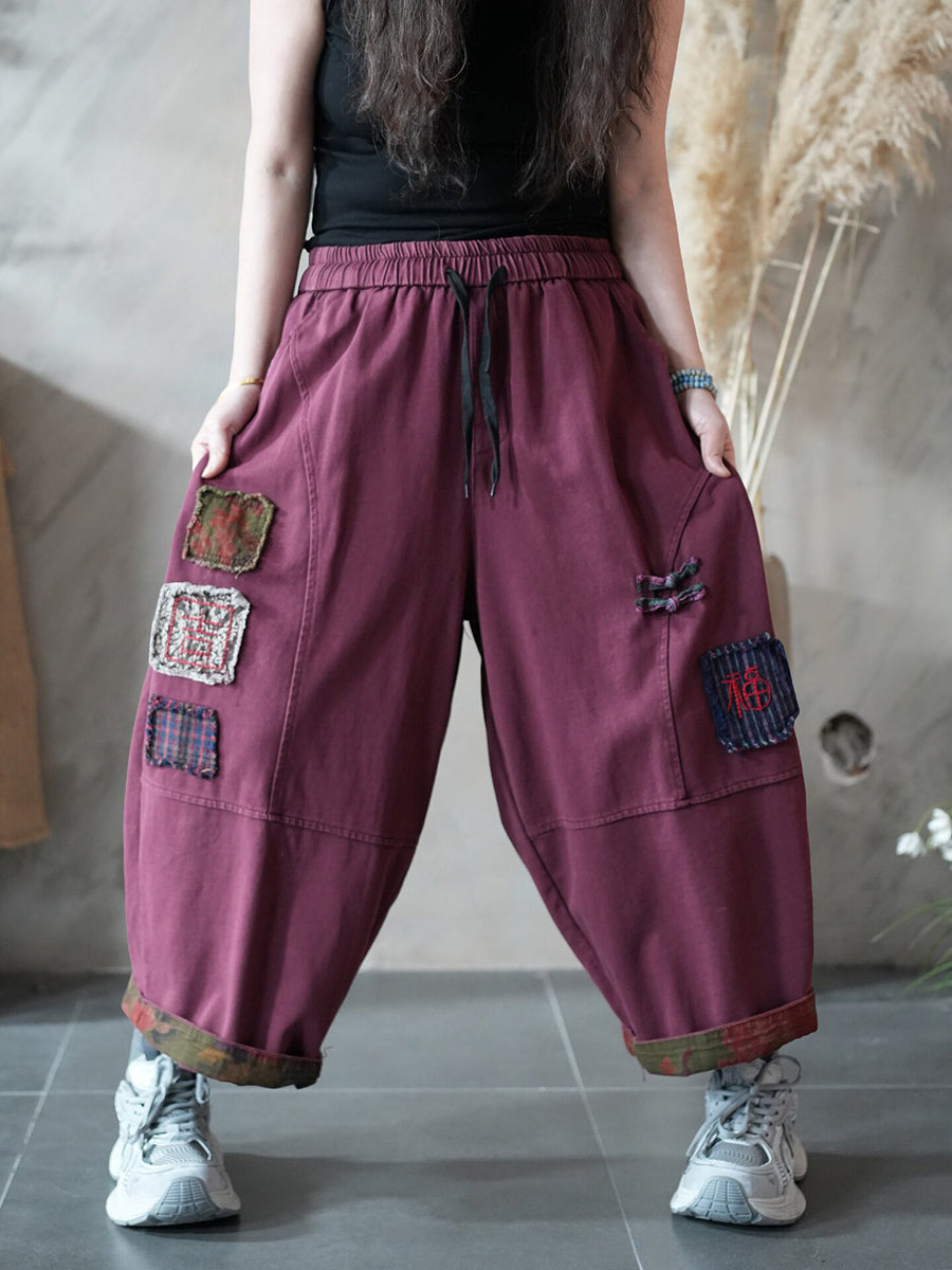 Women Spring Retro Patchwork Harem Pants