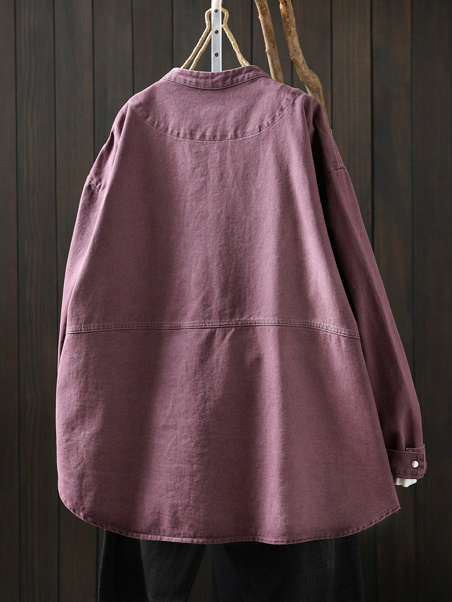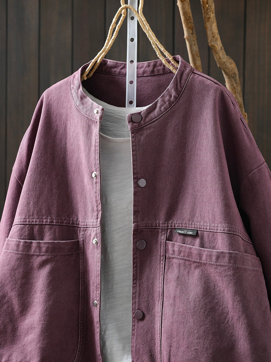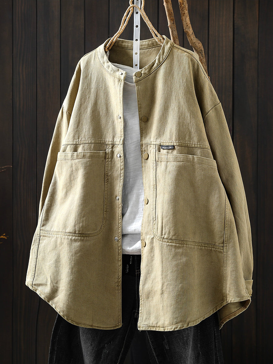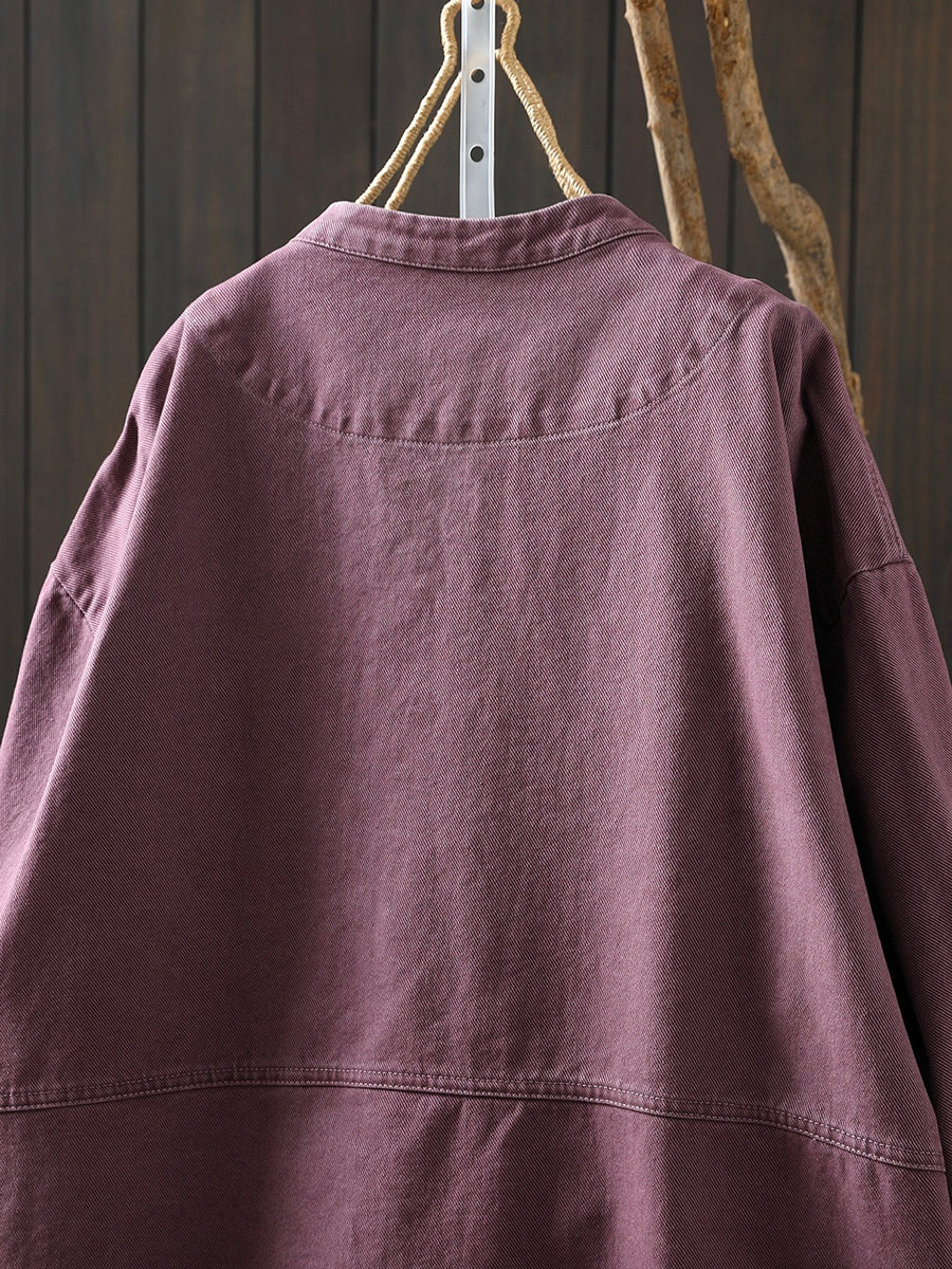 Women Spring Retro Pure Color Cotton Jacket