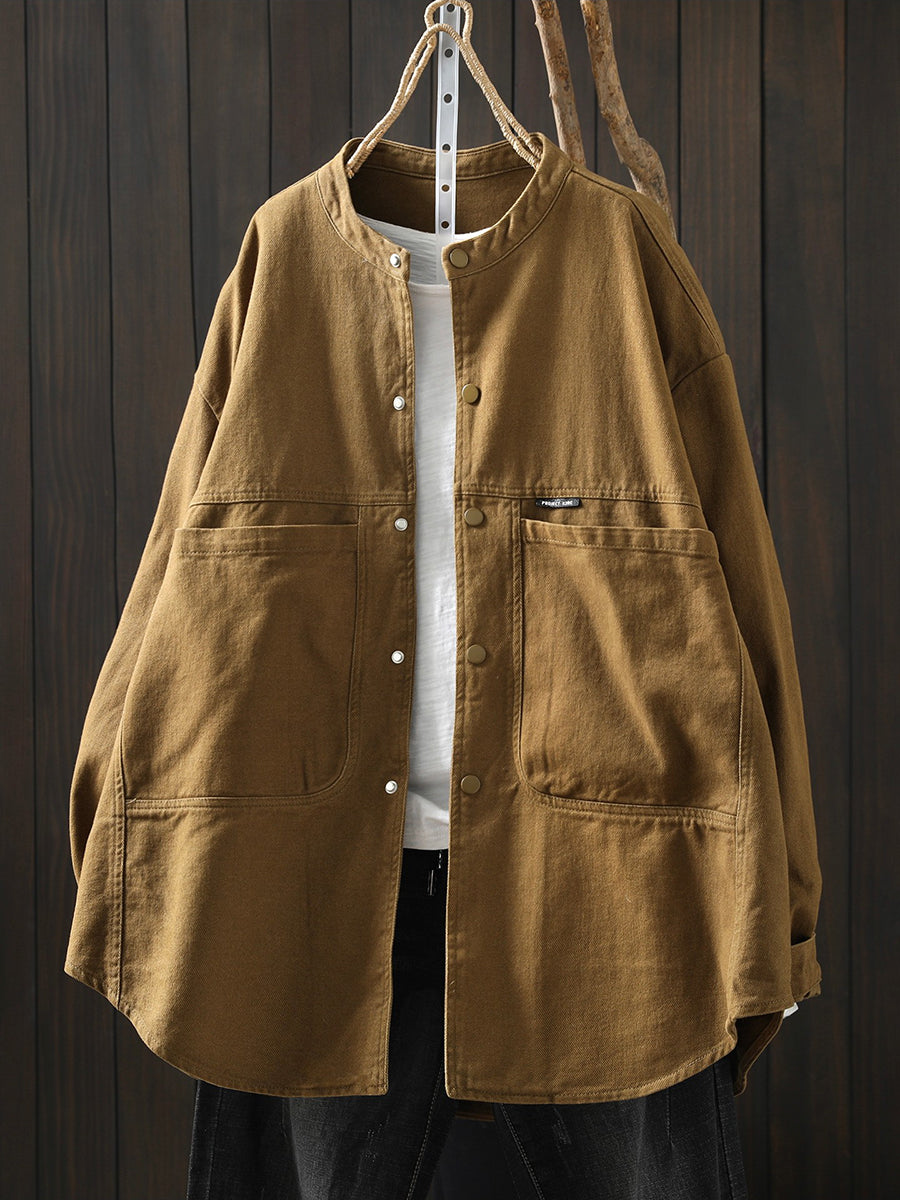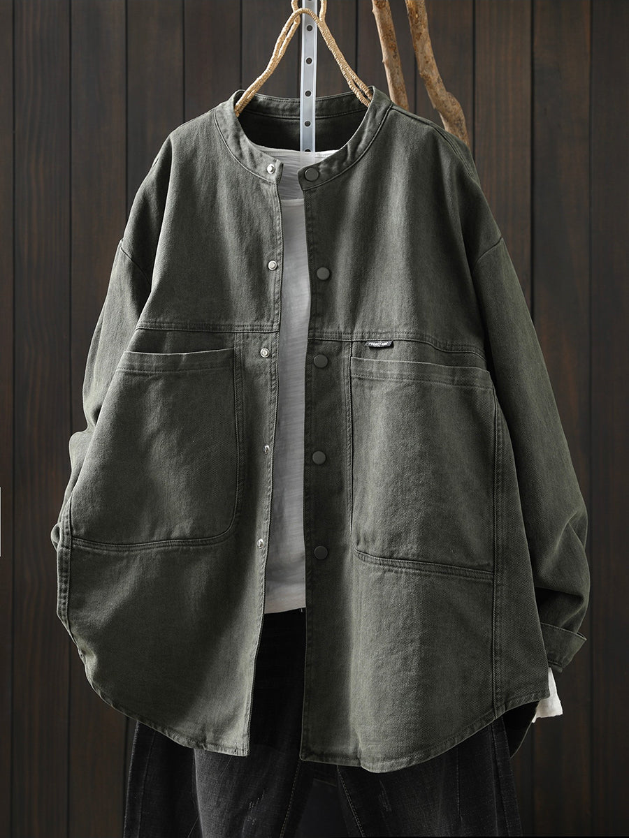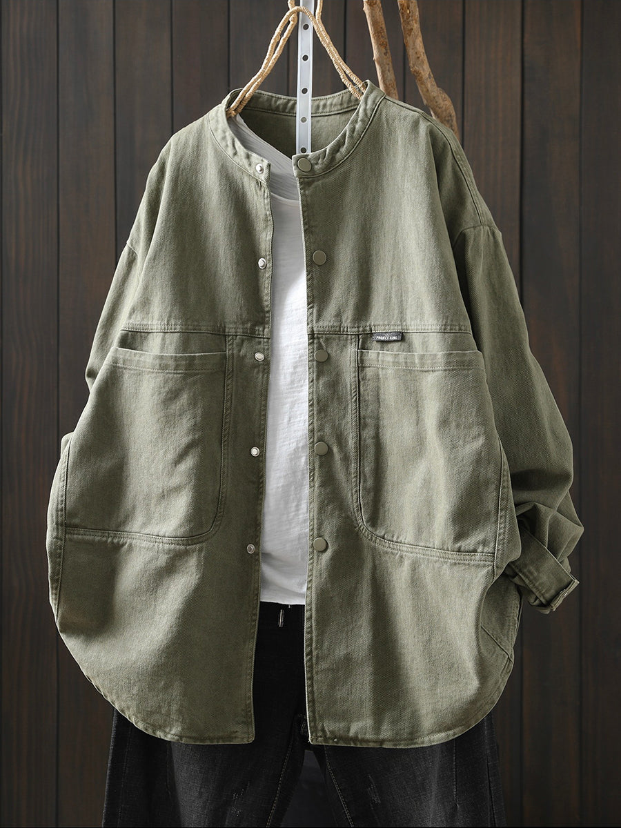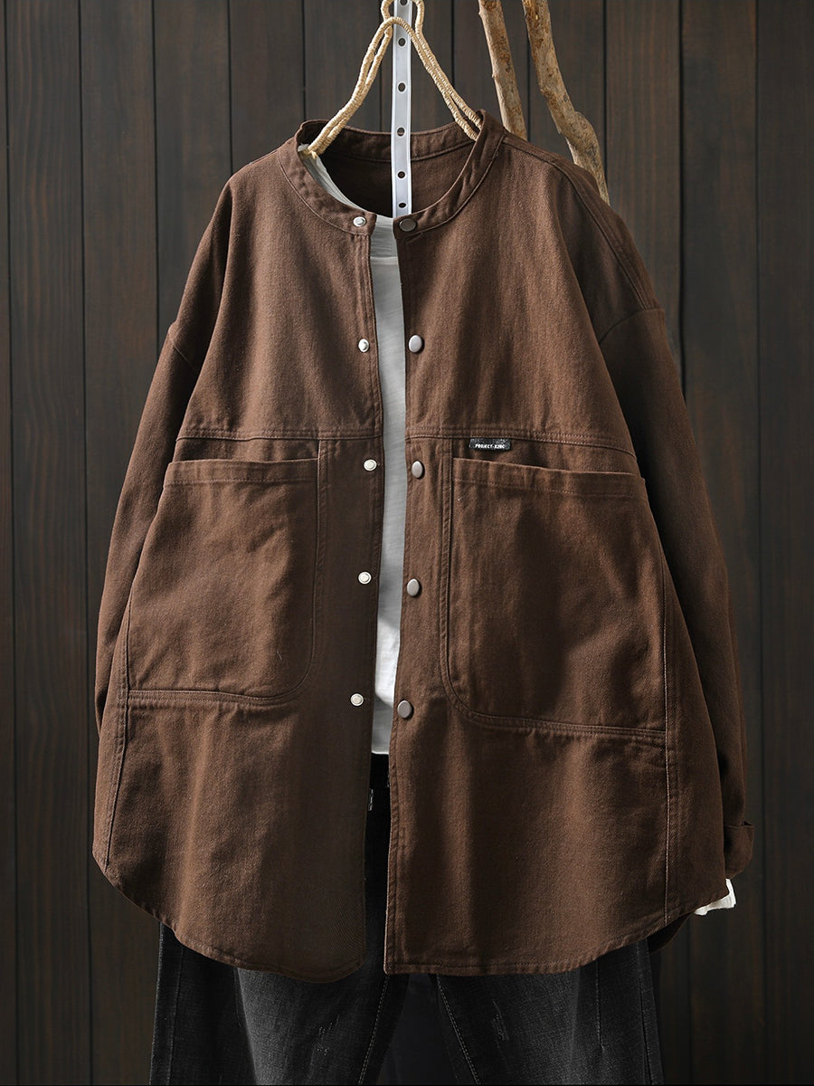 Women Spring Retro Pure Color Cotton Jacket