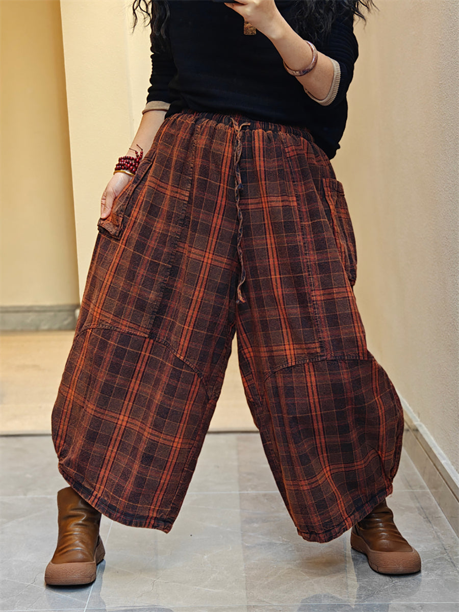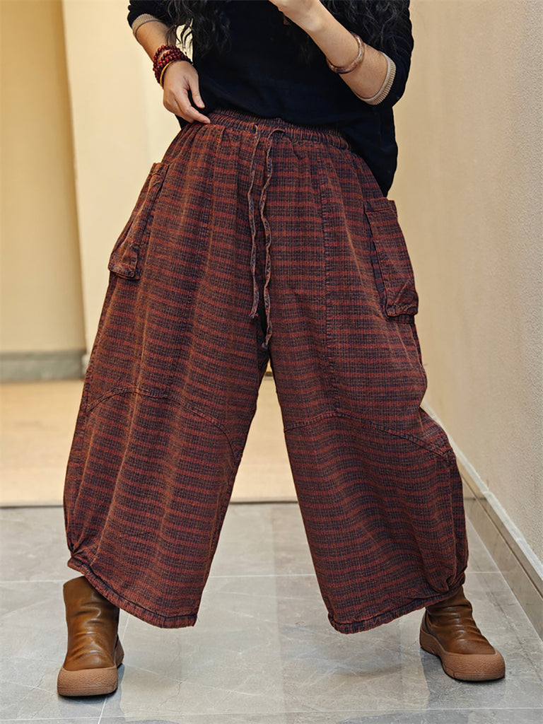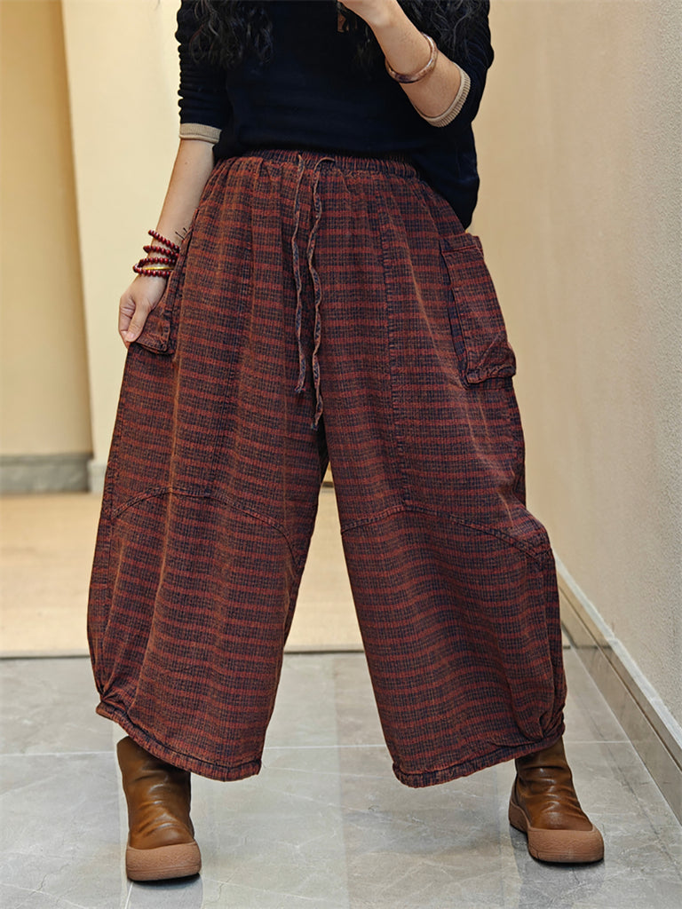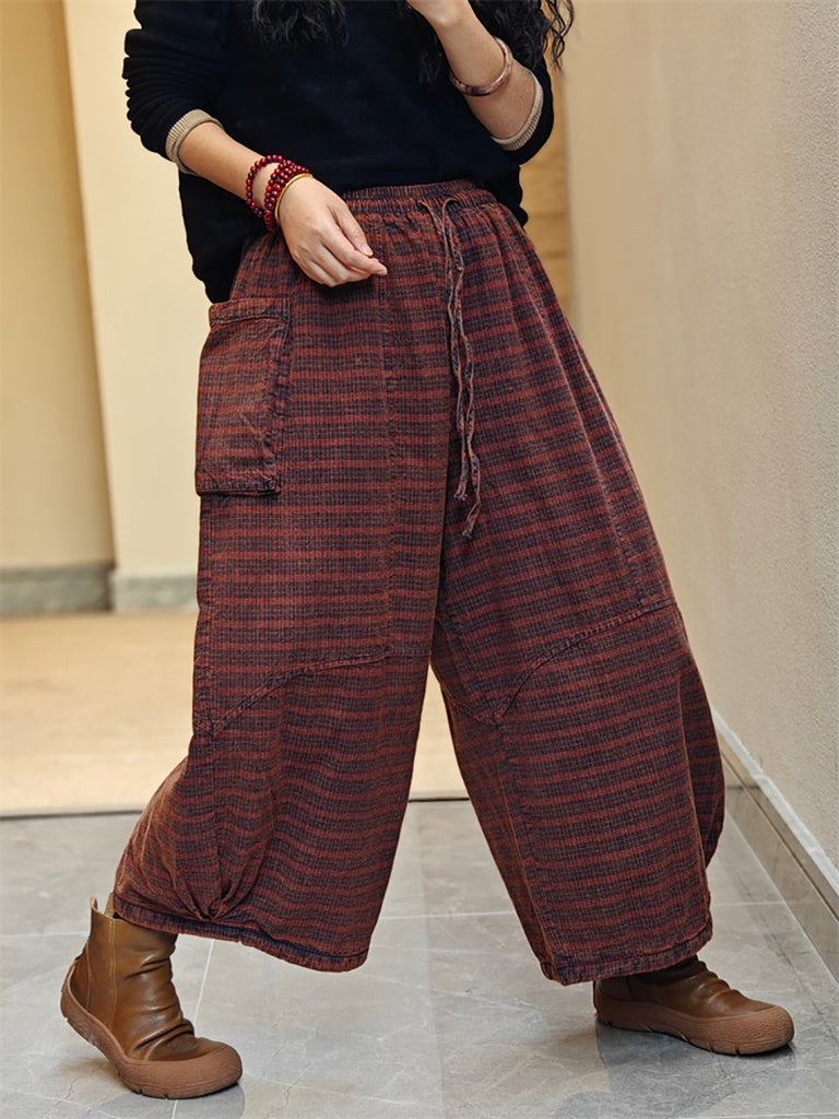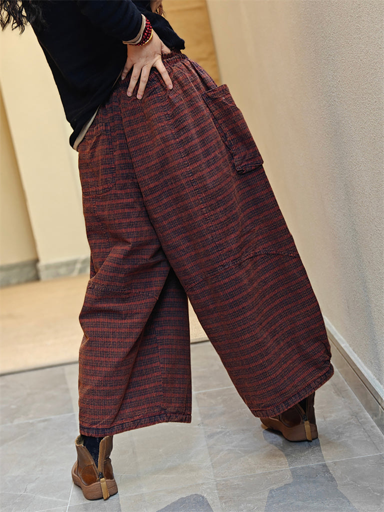 Women Spring Stripe Wide-leg Cotton Pants
