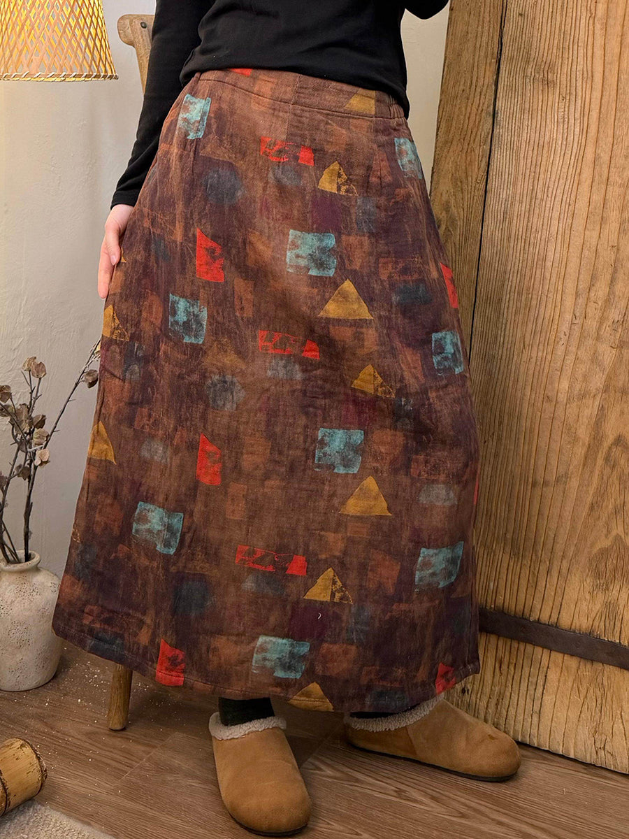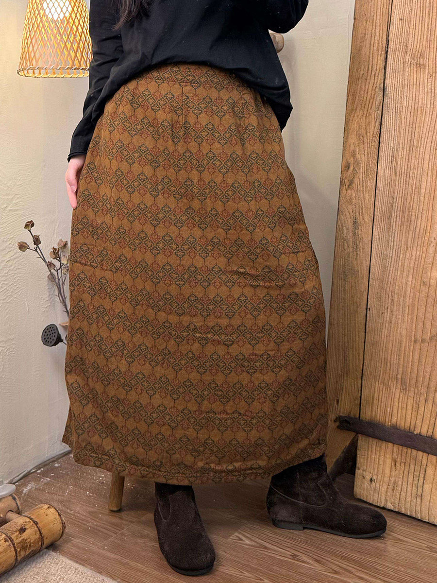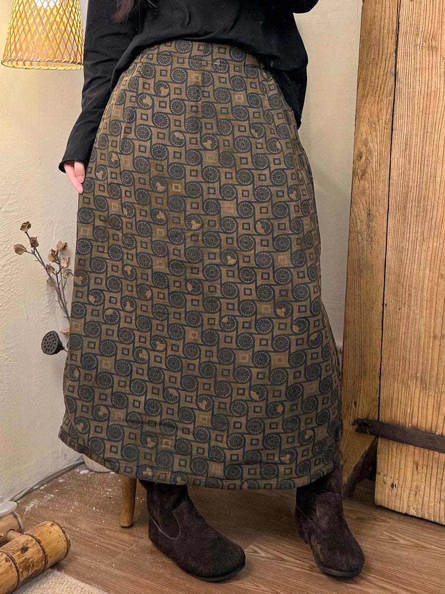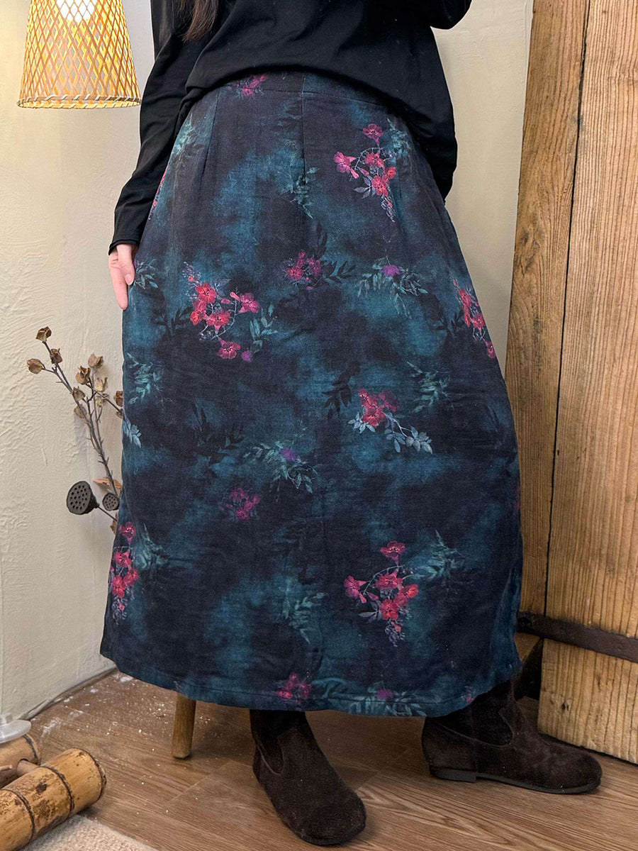 Women Spring Vintage Flower Cotton A-Shape Skirt