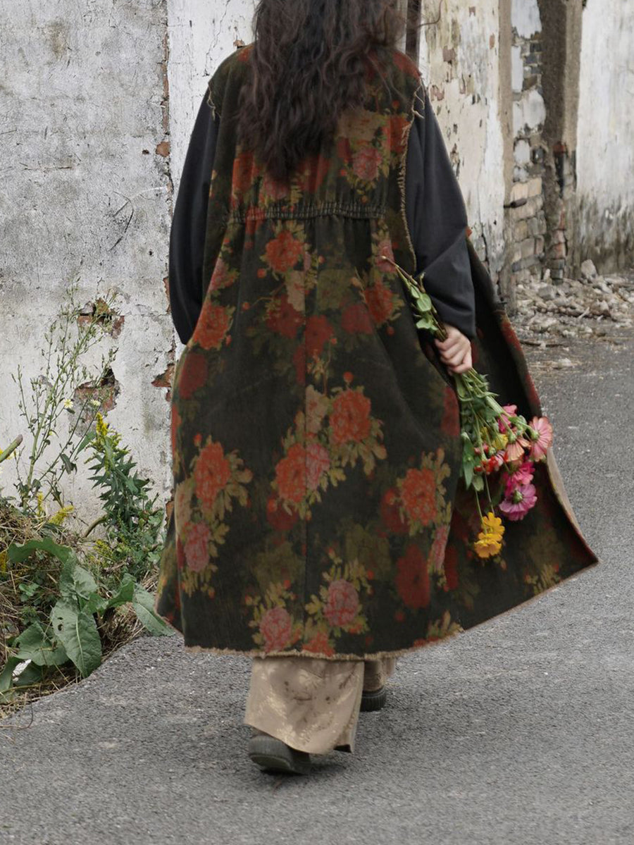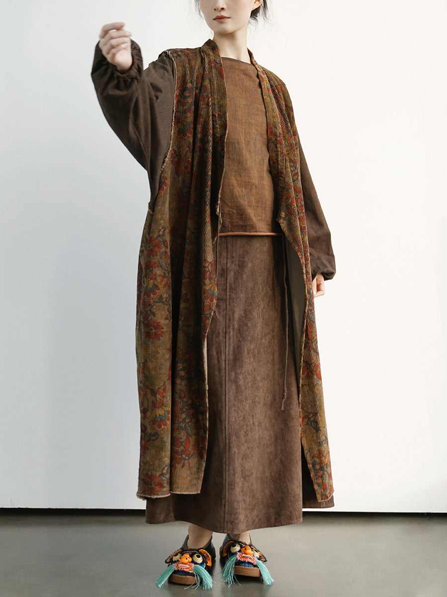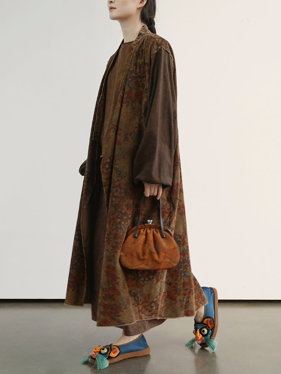 Women Spring Vintage Flower Spliced Cotton Long Coat