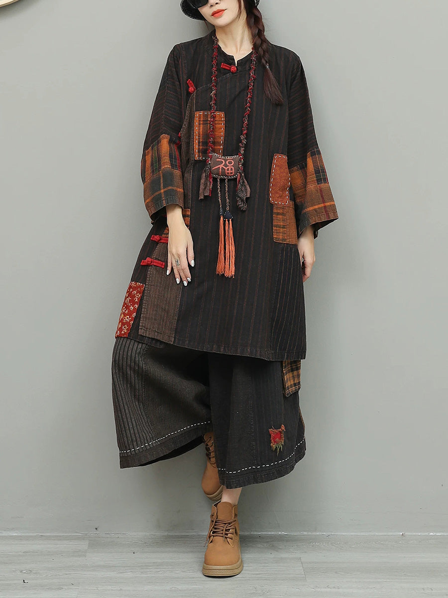 Women Spring Vintage Patchwork O-Neck Suits