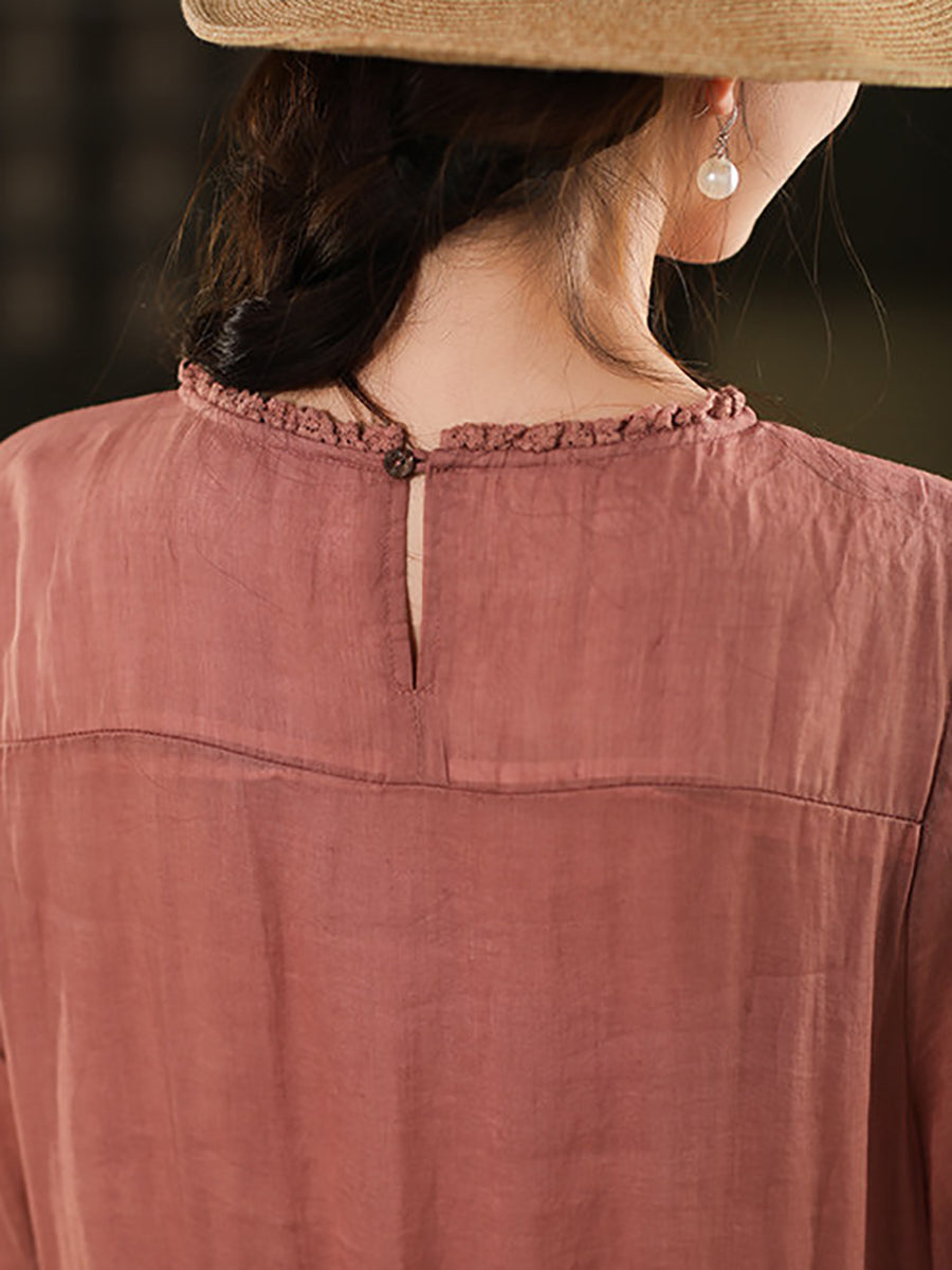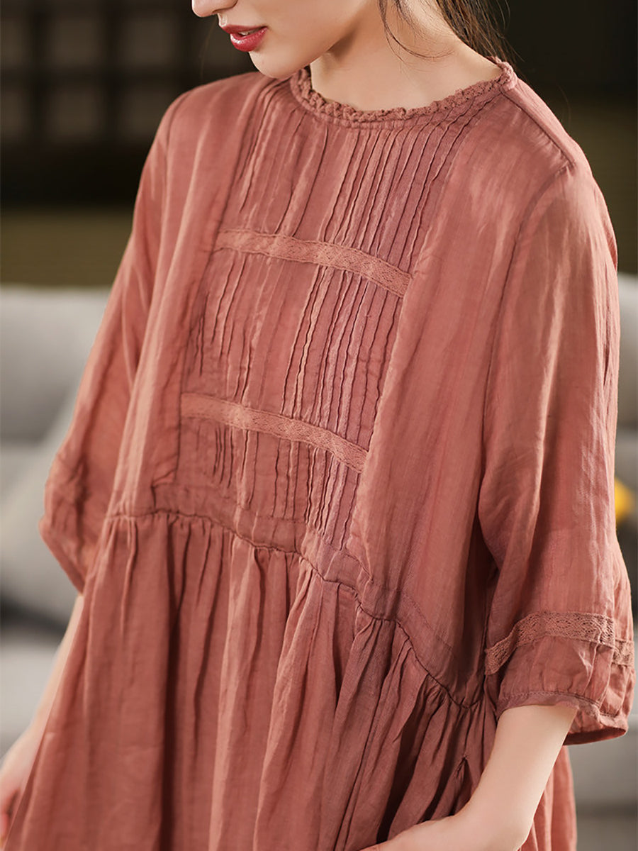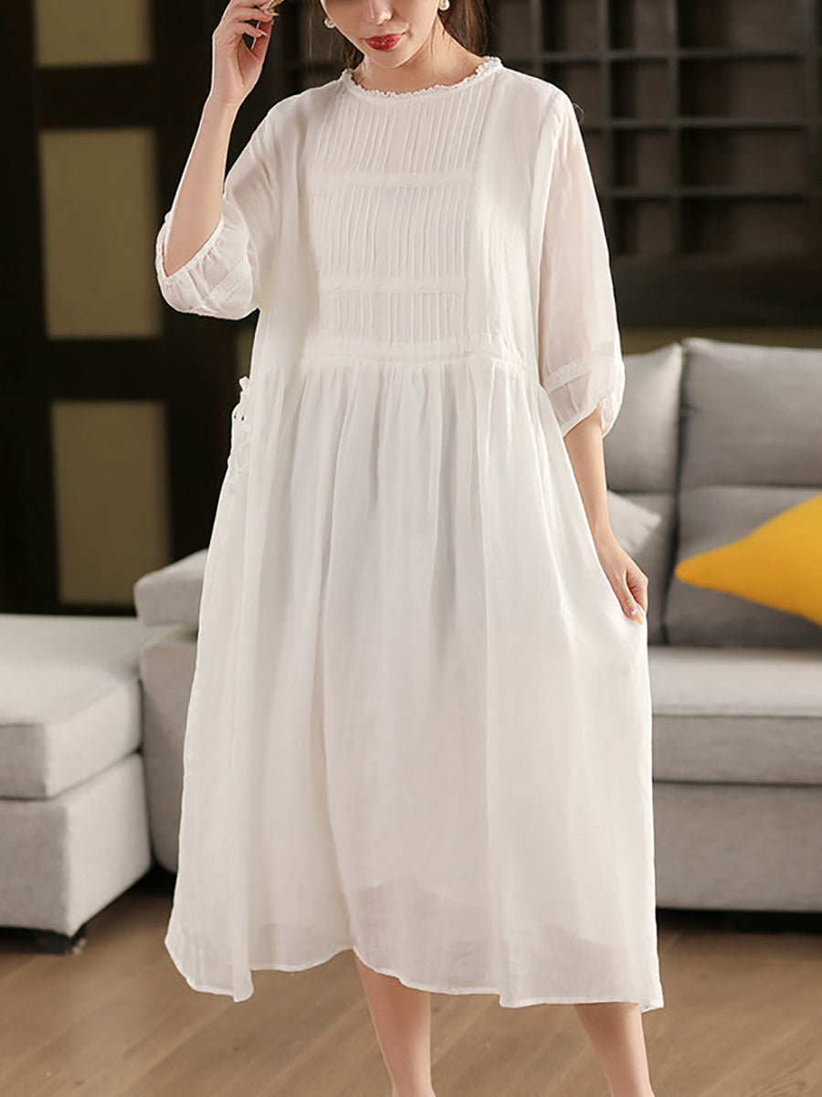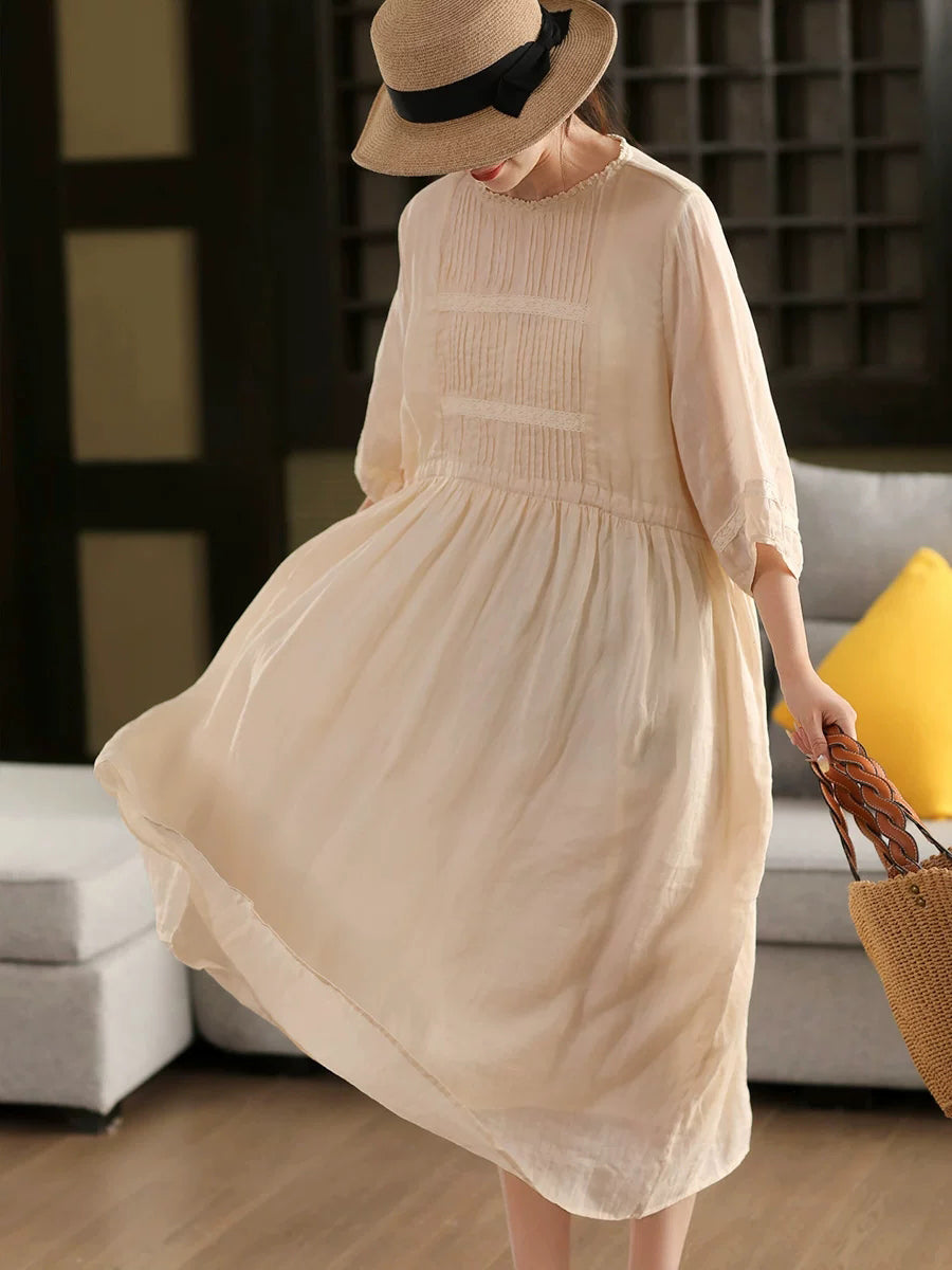 Women Summer Artsy 100%Ramie O-Neck Dress