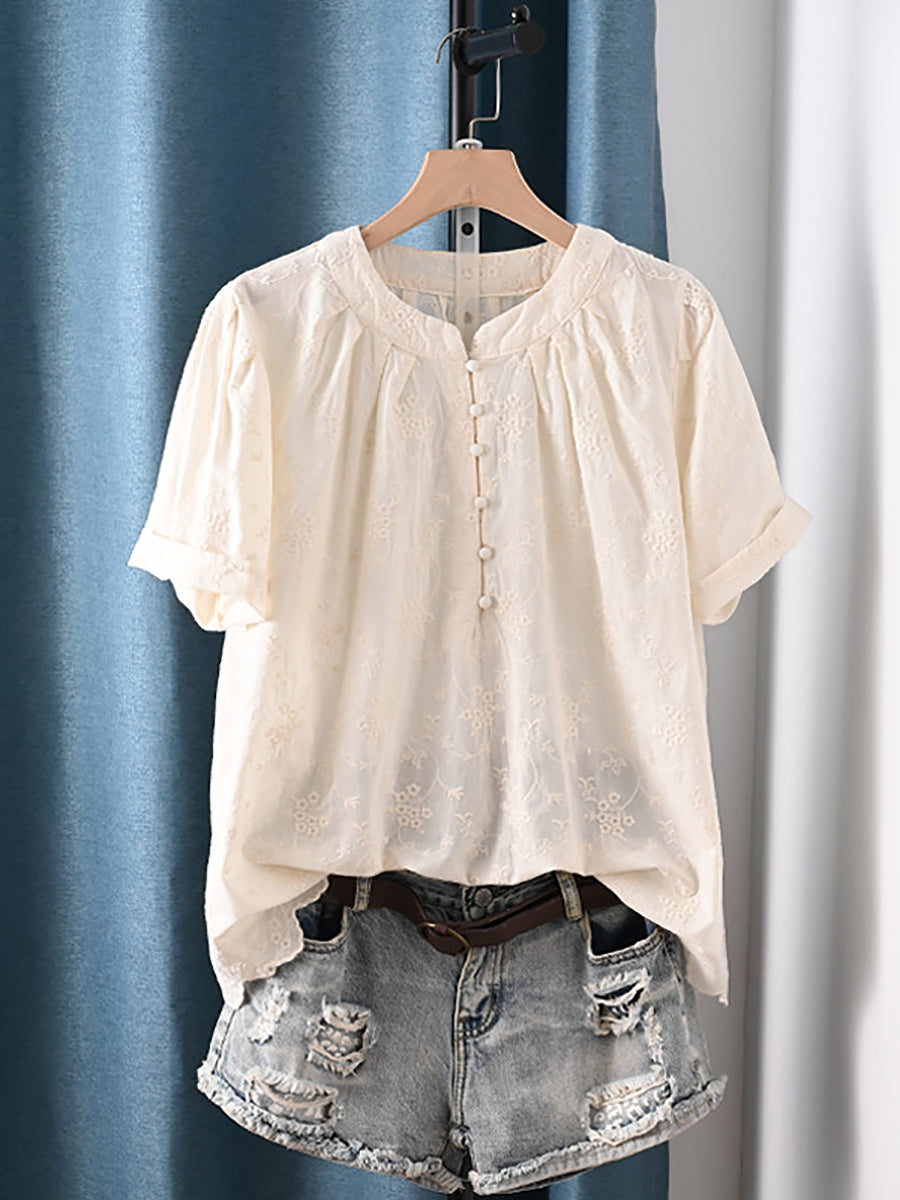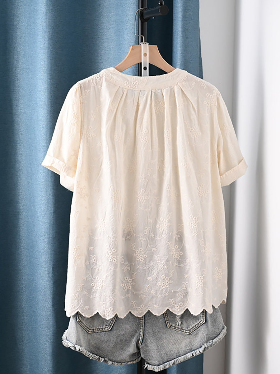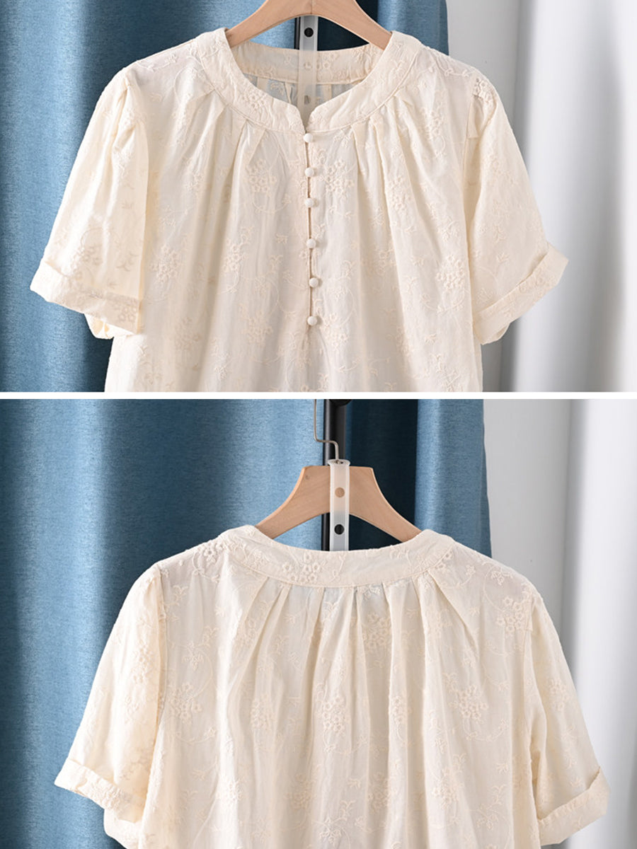 Women Summer Artsy Embroidery 100%Cotton Blouse
