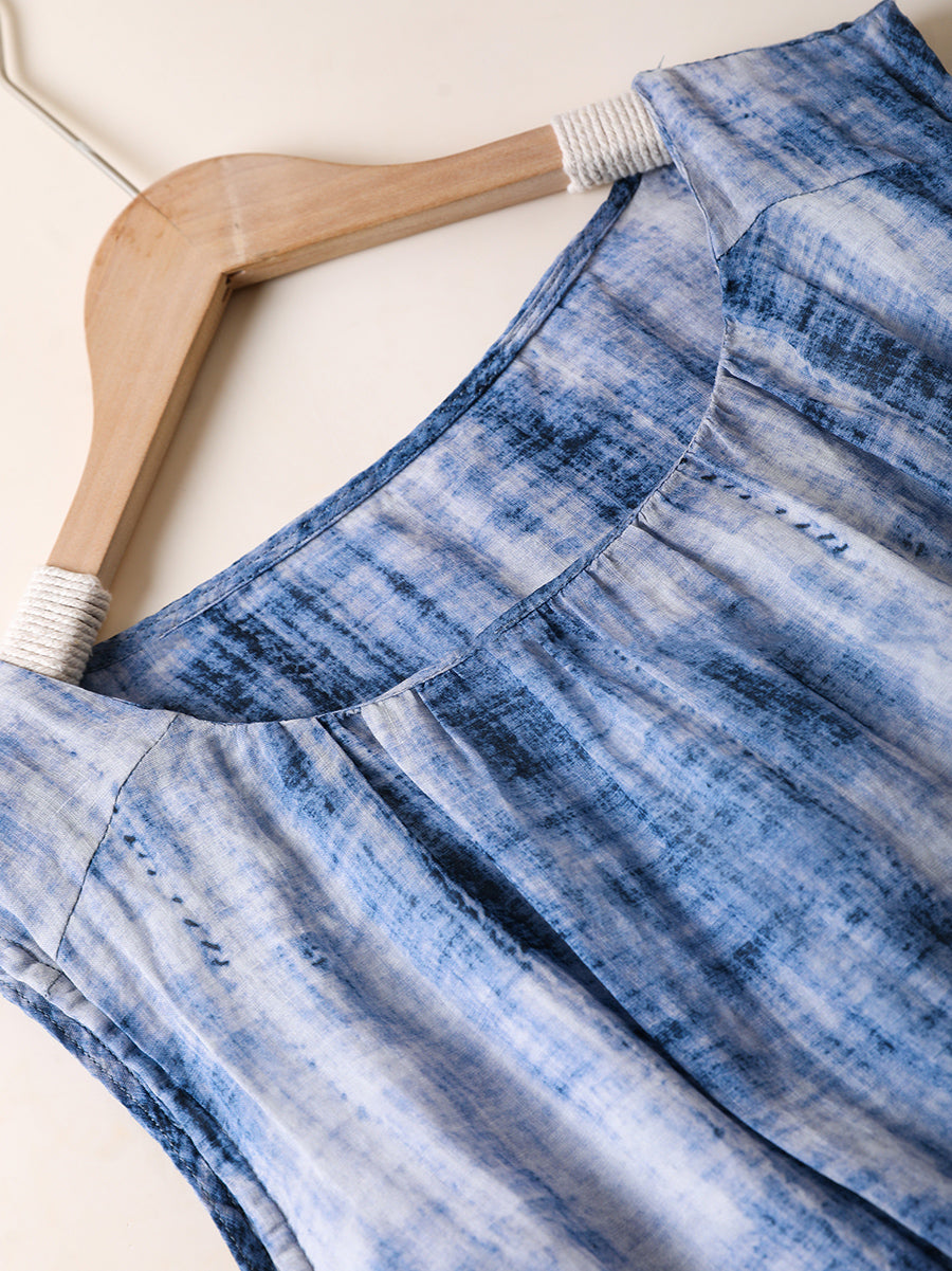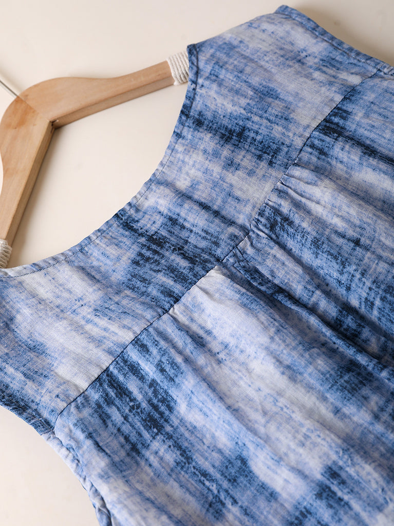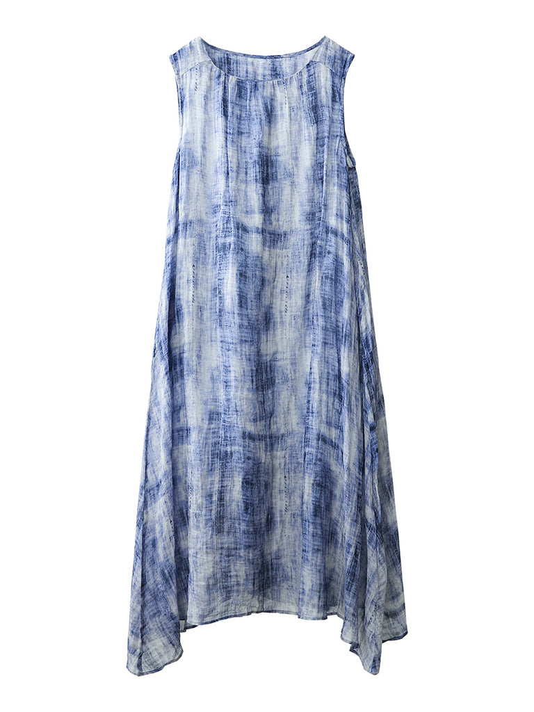 Women Summer Artsy Floral O-Neck 100%Ramie Vest Dress