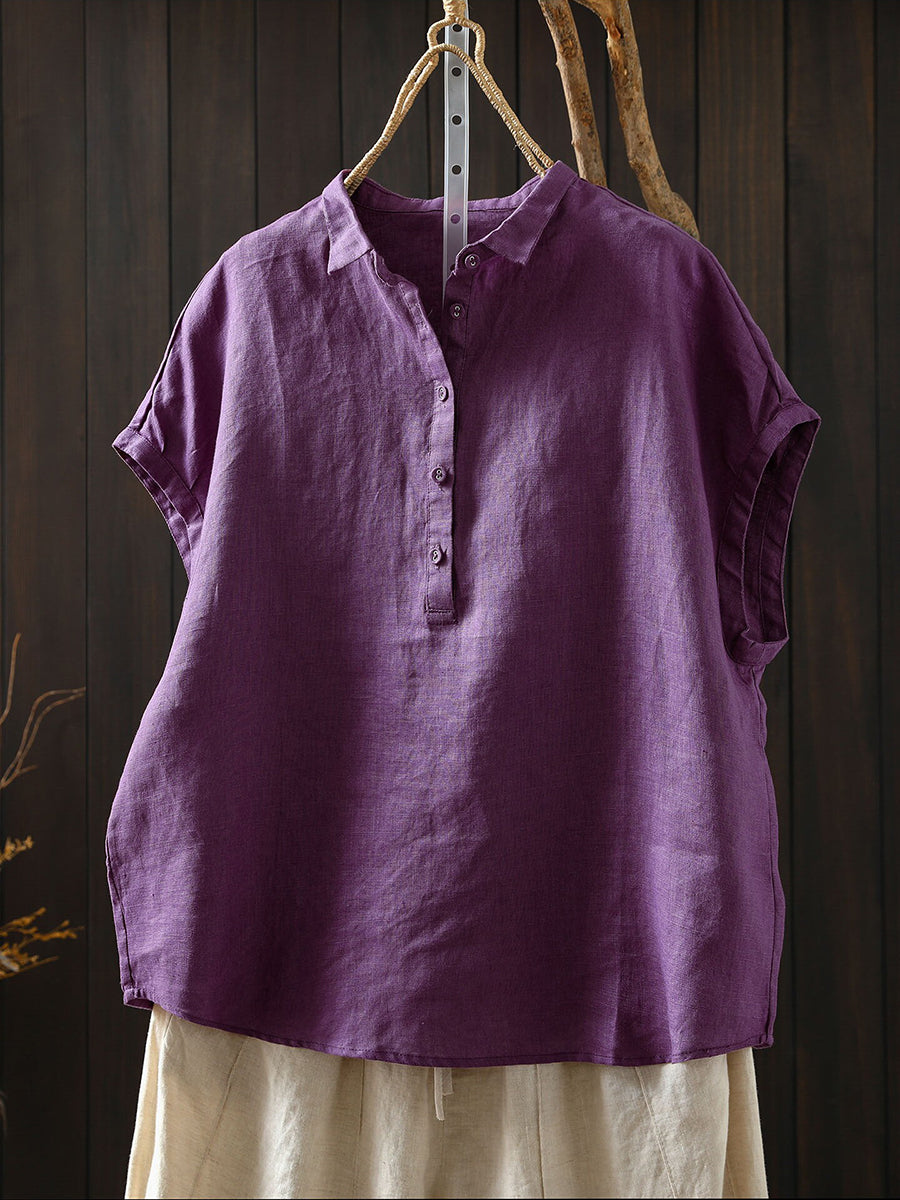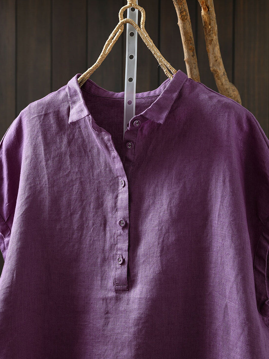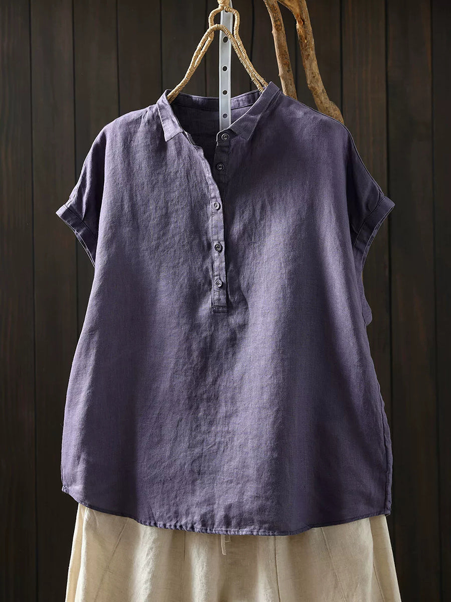 Women Summer Artsy Pure Color 100%Linen Blouse