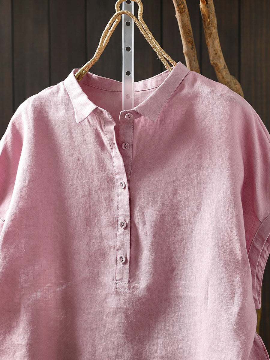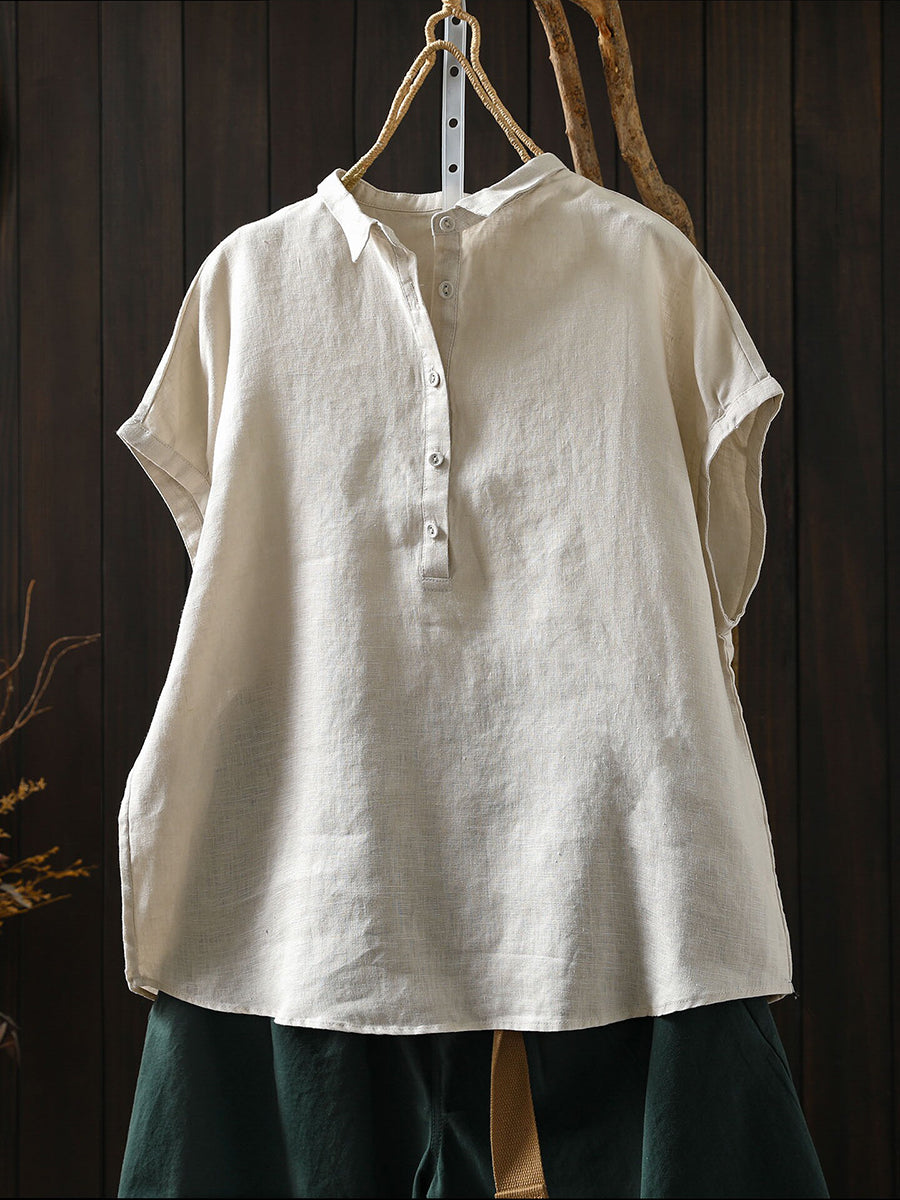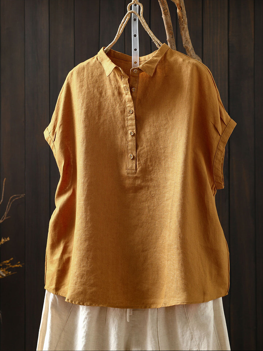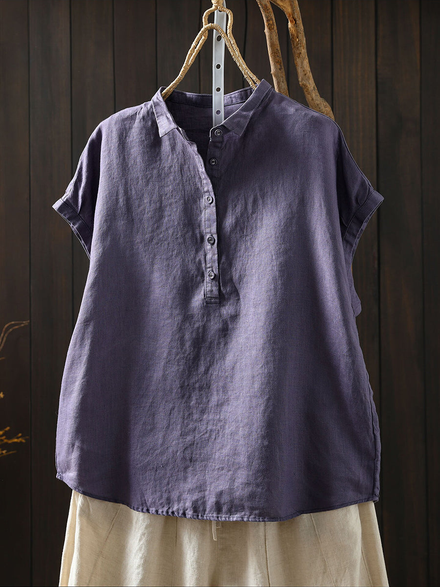 Women Summer Artsy Pure Color 100%Linen Blouse