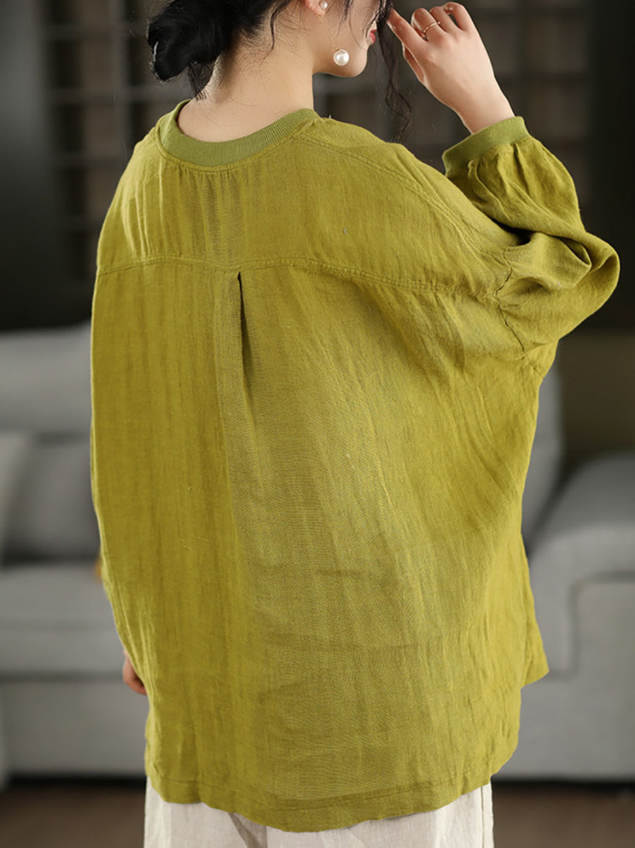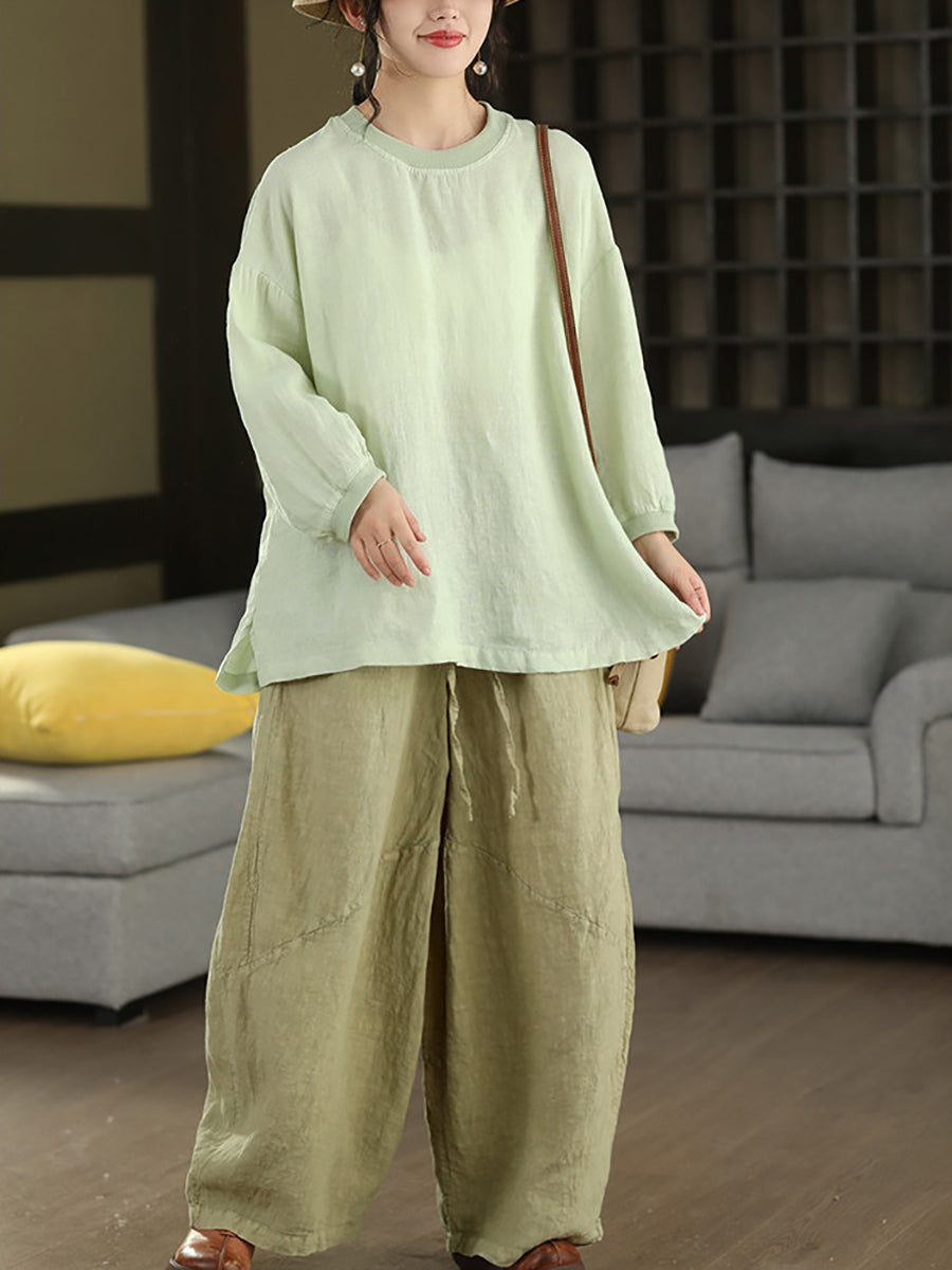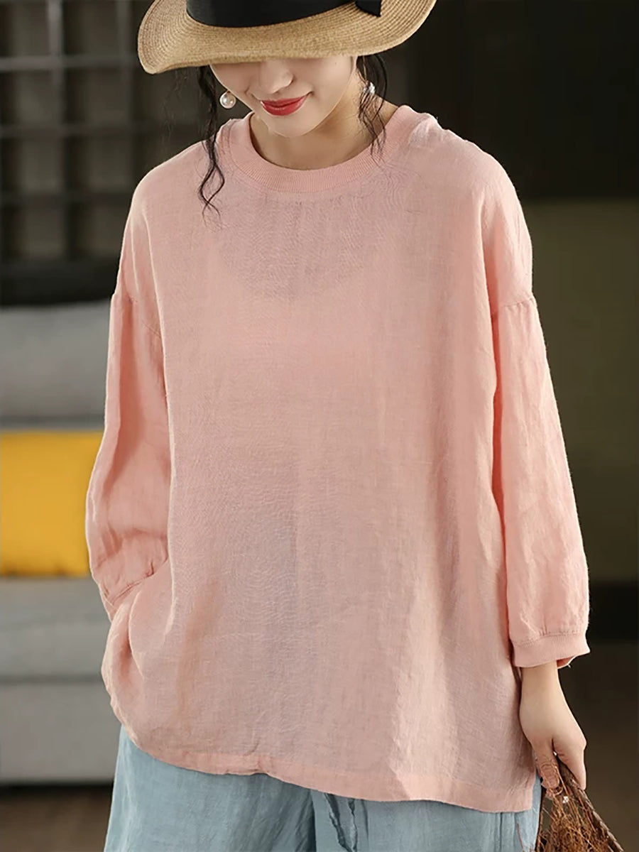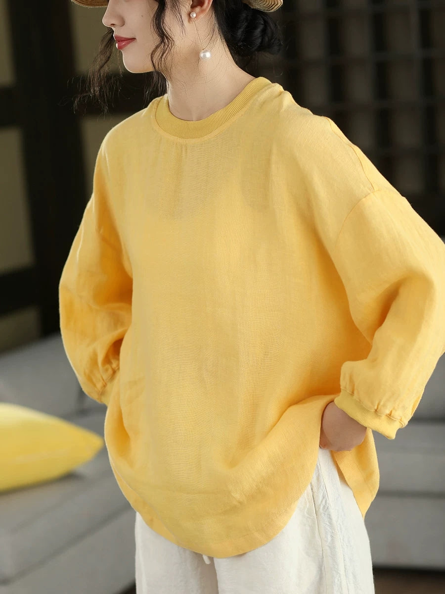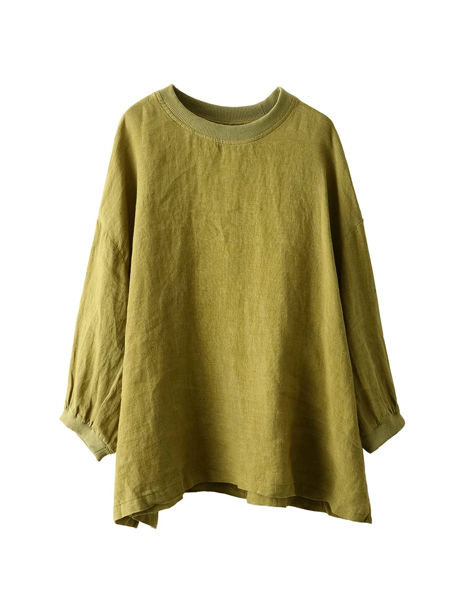 Women Summer Artsy Pure Color 100%Linen Blouse