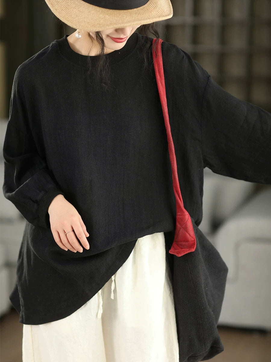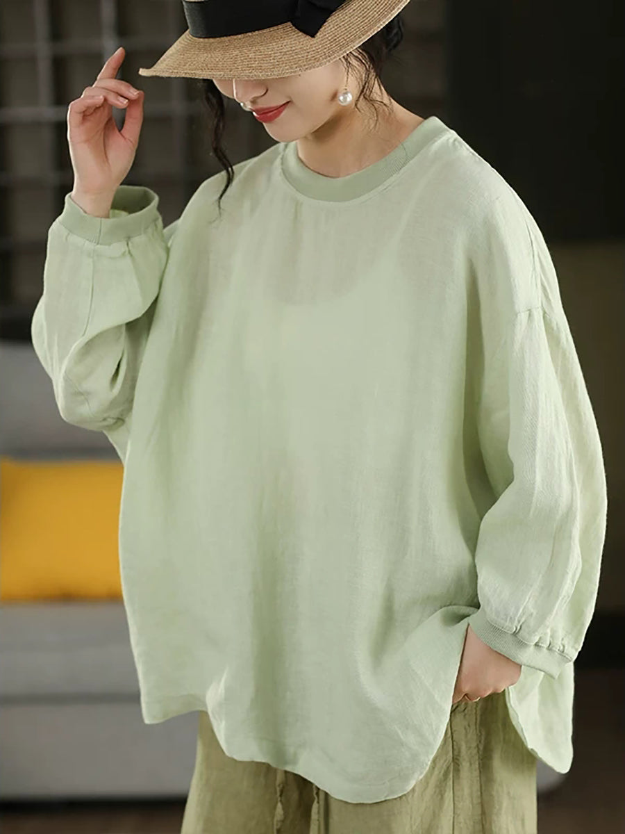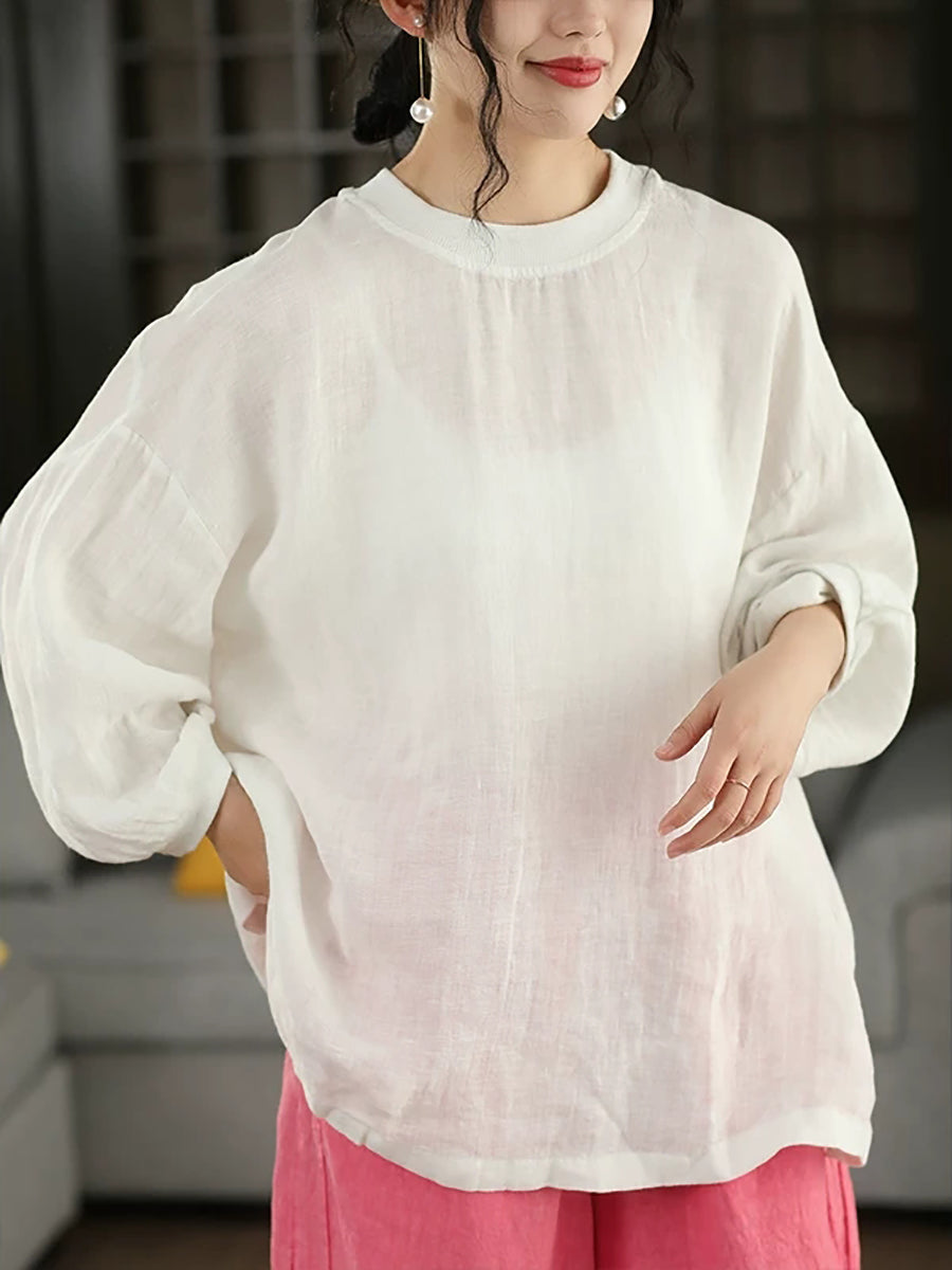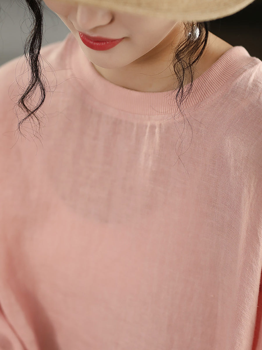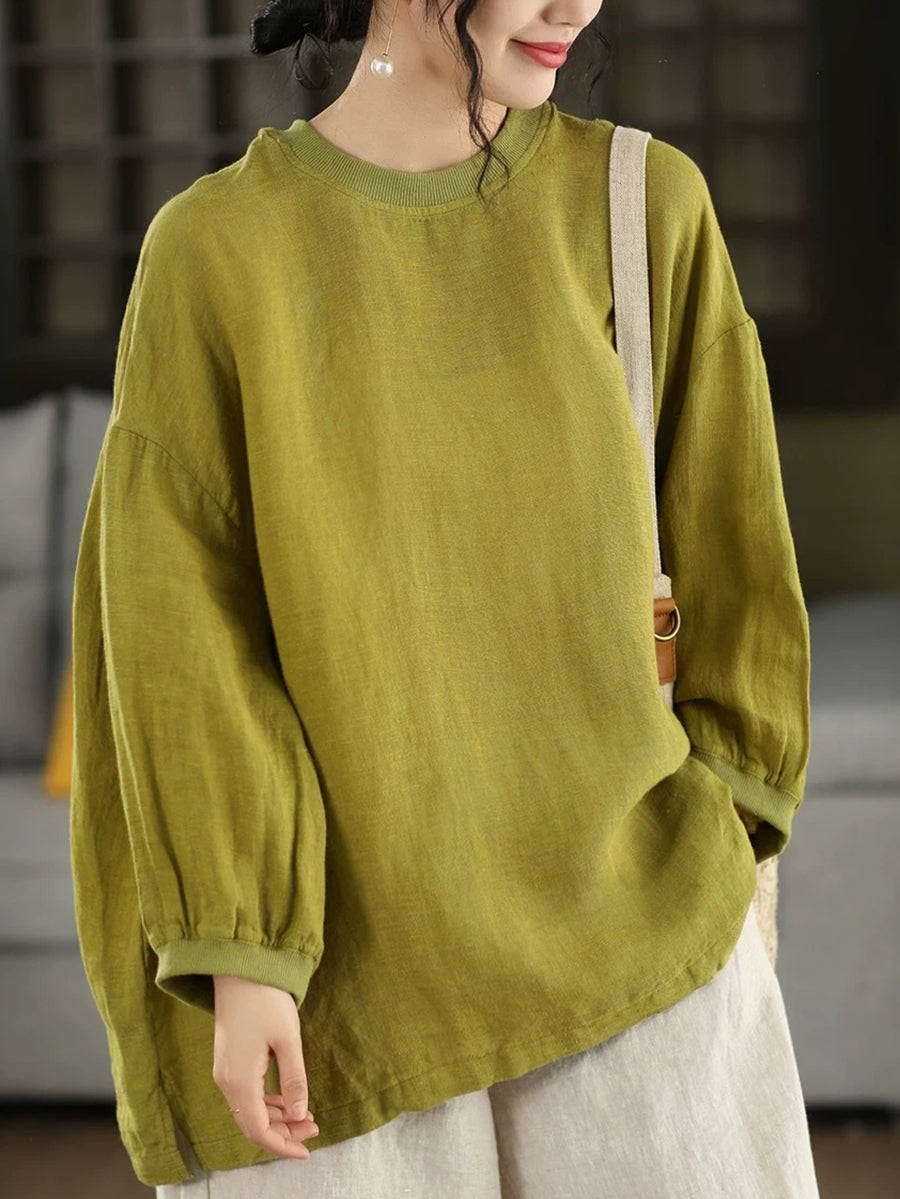 Women Summer Artsy Pure Color 100%Linen Blouse