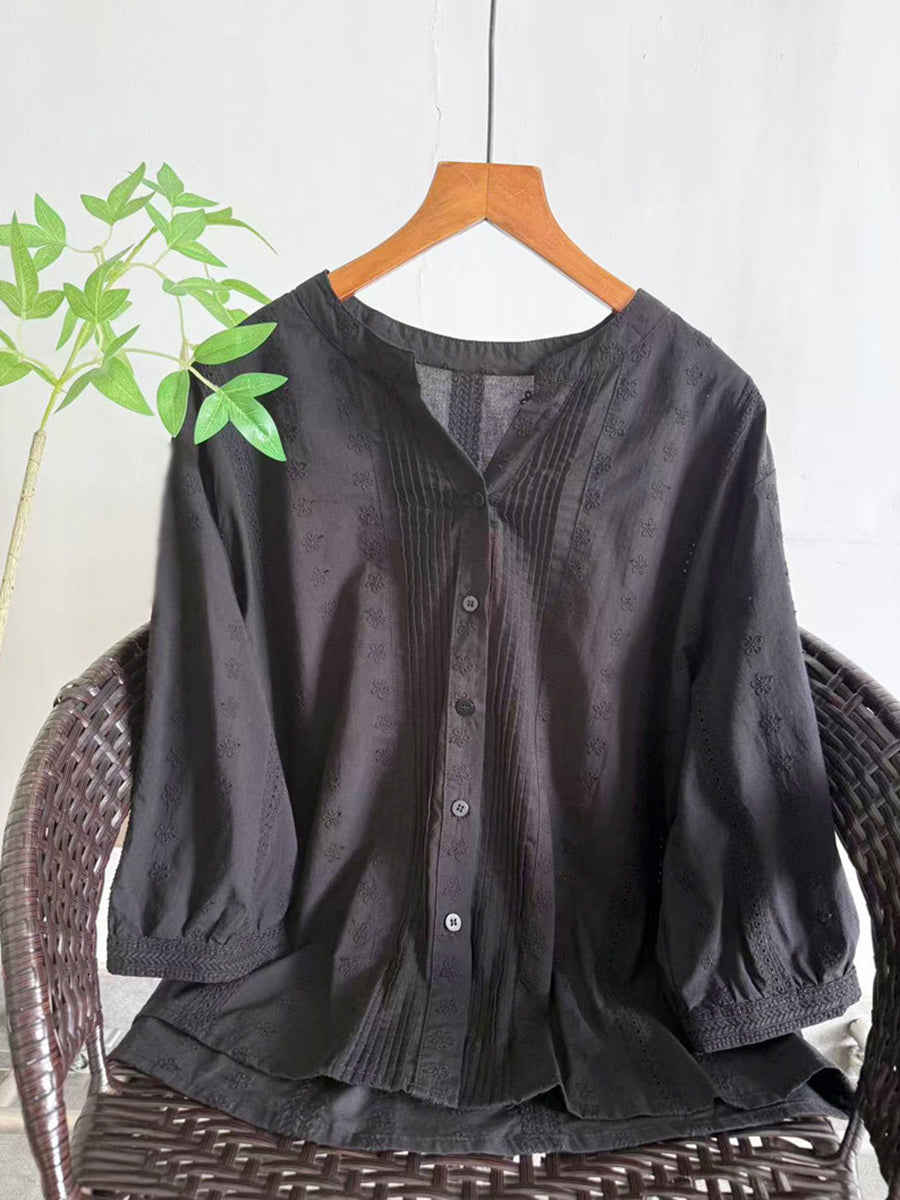 Women Summer Artsy Shirred Cotton Blouse